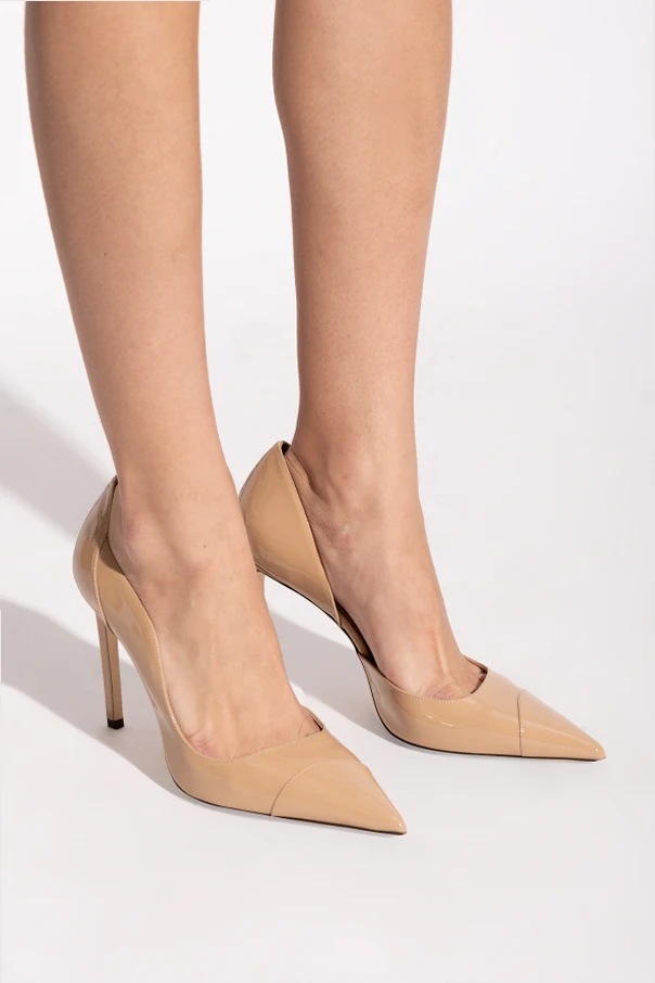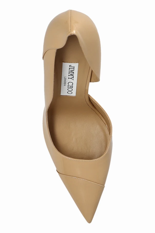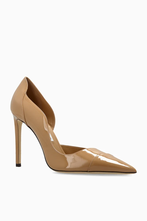 Absatzschuhe „Brigitte” , signiert vom renommierten Designer Jimmy Choo , sind ein Meisterwerk der Handwerkskunst, in dem zeitloser Stil auf raffinierte Modernität trifft. Gefertigt aus glattem, lackiertem Leder in einem beigen Farbton, begeistern sie mit einem markanten Glanz und einem perfekt ausgearbeiteten Profil.