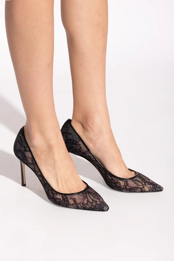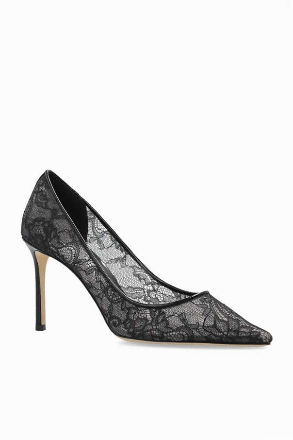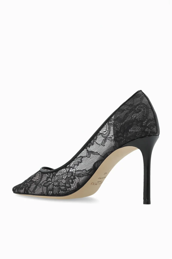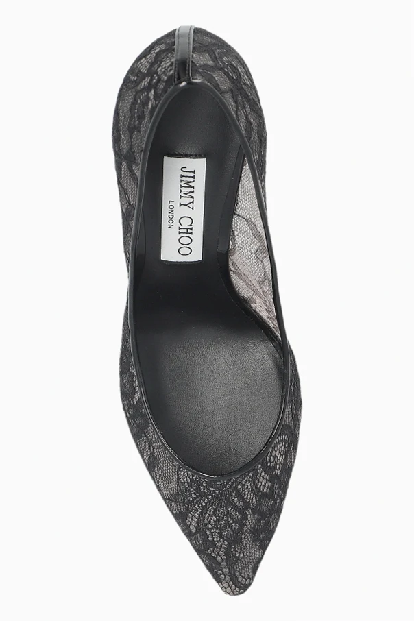 Das Modell begeistert mit einer Außenschicht aus eindrucksvoller, schwarzer Spitze mit floralen Mustern, sinnlich betont durch transparentes Mesh. Das sorgfältig schwarz ausgearbeitete Innere des Schuhs sorgt für Komfort und betont den luxuriösen Charakter des Produkts. Besonders ins Auge fällt das markante Logo „JIMMY CHOO LONDON“ auf der Innensohle, das die Authentizität dieses Meisterwerks eines renommierten Designers garantiert.