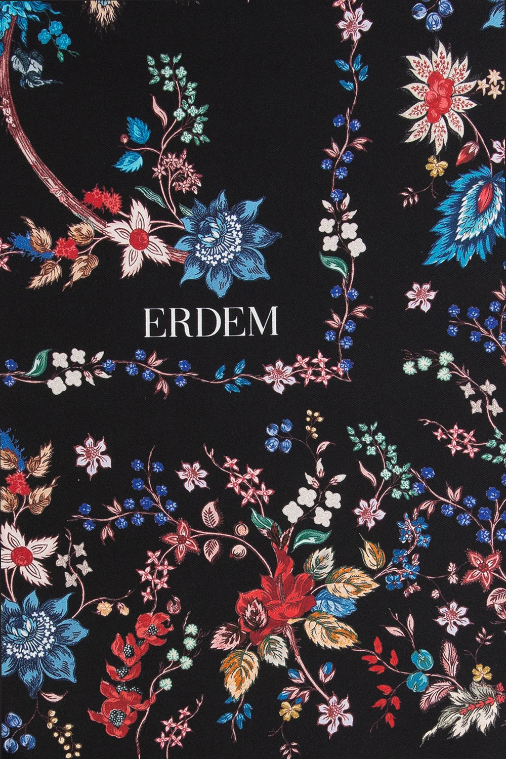 Black scarf from Erdem. Crafted from silk, this design is enriched by a multicolored floral motif and a white logo print.
