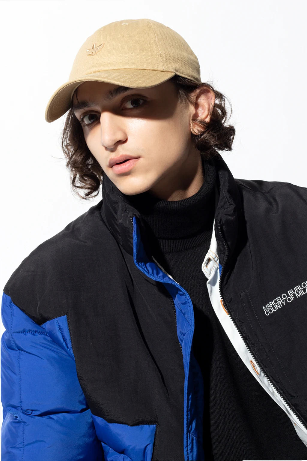 Beige baseball cap from ADIDAS Originals. Crafted from cotton, this item showcases a logo patch and an adjustable buckle strap at the back.