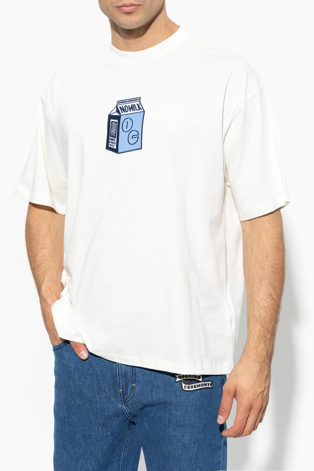 Cream crewneck T-shirt from Opening Ceremony. Made of cotton, this short sleeve design features a logo patch.
