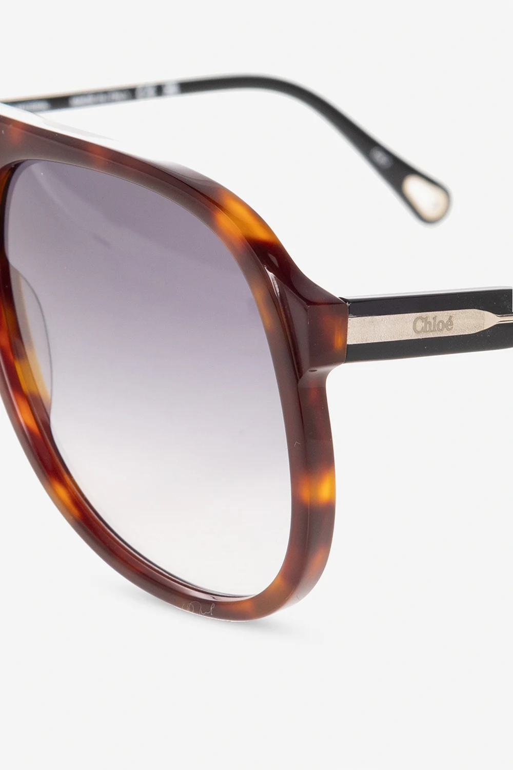 Brown and black ‘Dannie’ sunglasses from Chloé. This pair has acetate frames with a shiny bi-layer effect at the temple, temples with a metal plate with logo and drop-shaped opening as well as dark blue gradient lenses with 100% UV protection. Comes with a case.