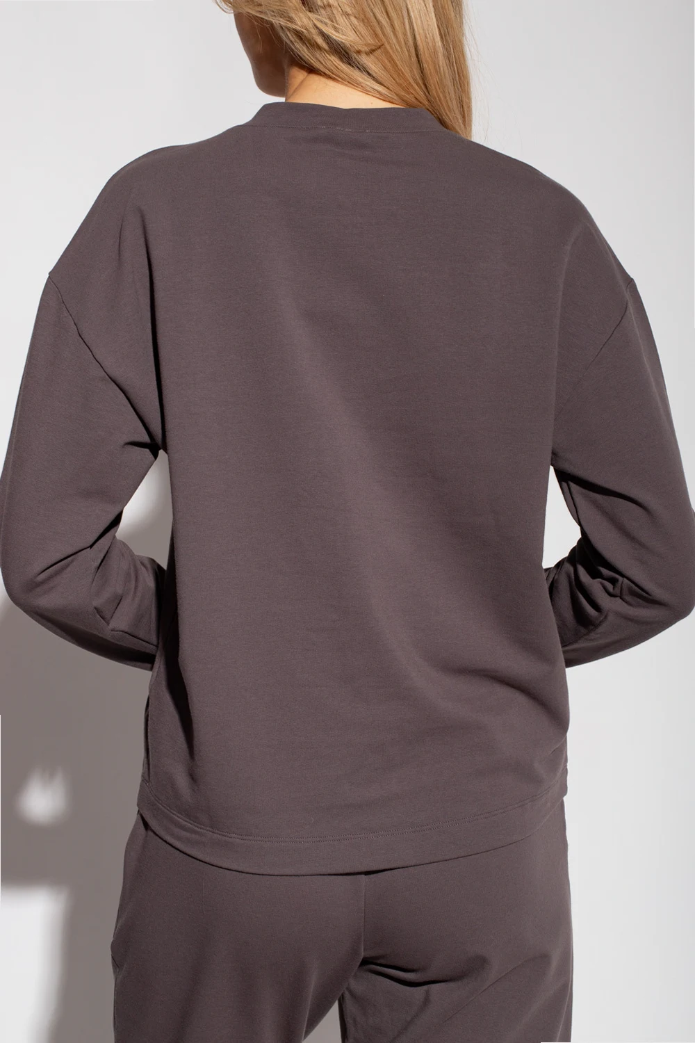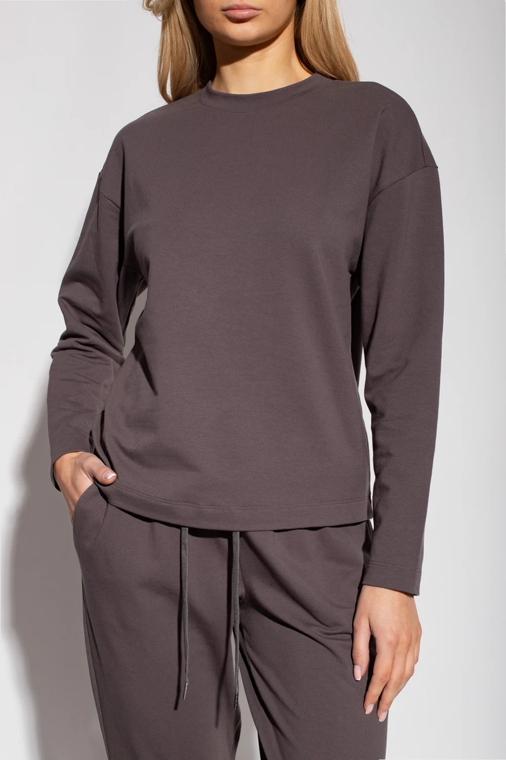 Dark grey T-shirt from Hanro. Made of cotton, this long sleeve design features a ribbed crew neck.