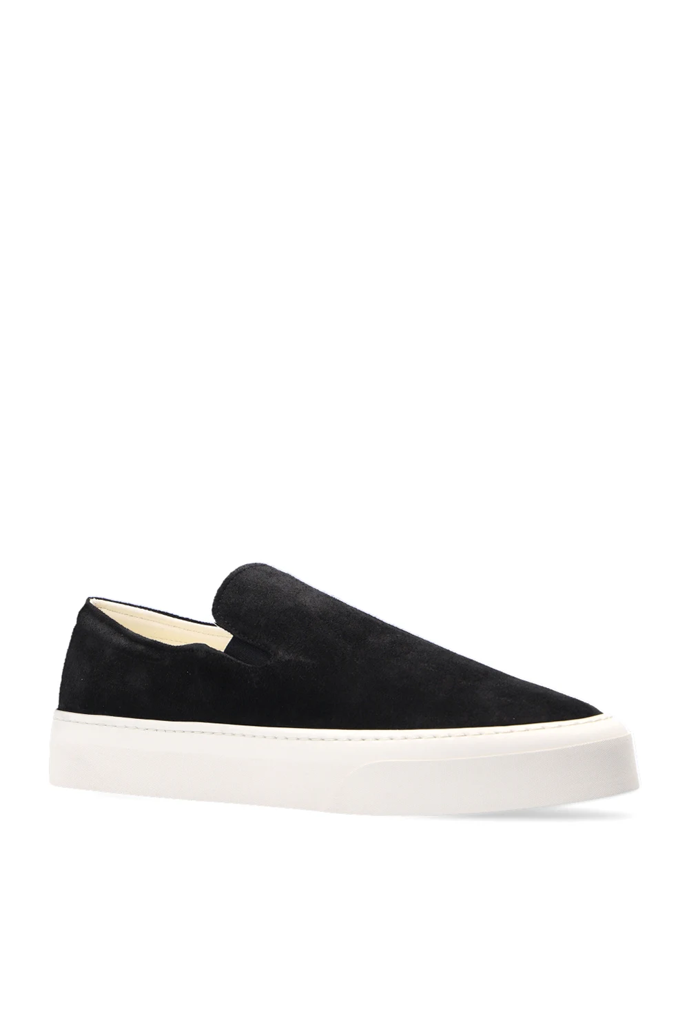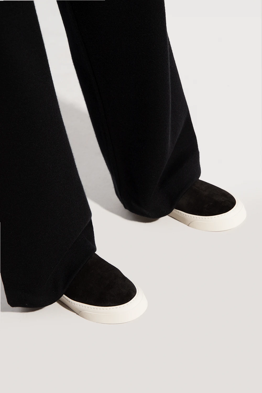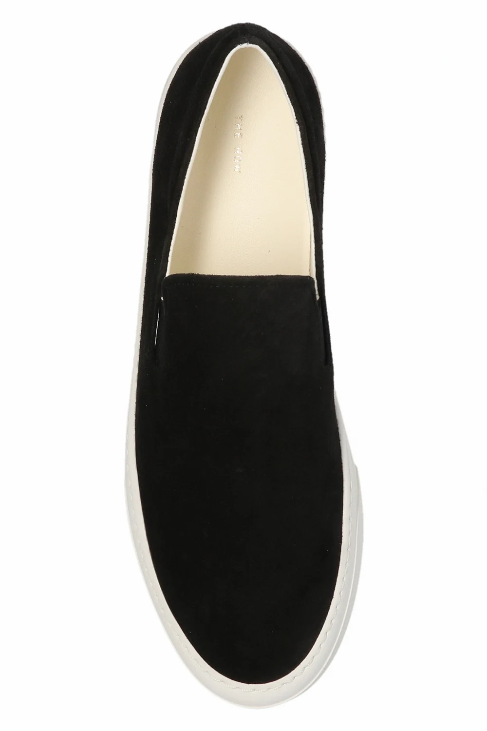 Black ‘Marie H’ sneakers from The Row. Crafted from suede, they boast a slip-on silhouette and a white rubber sole.