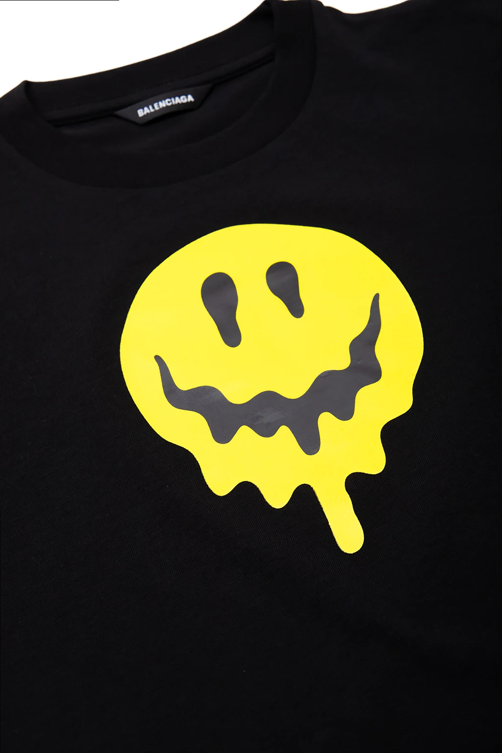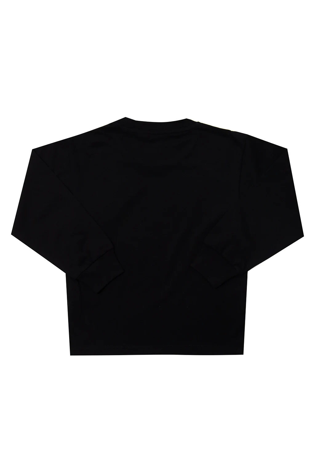 Black crewneck T-shirt from Balenciaga. Made of cotton, this long sleeve design is decorated with a yellow print.