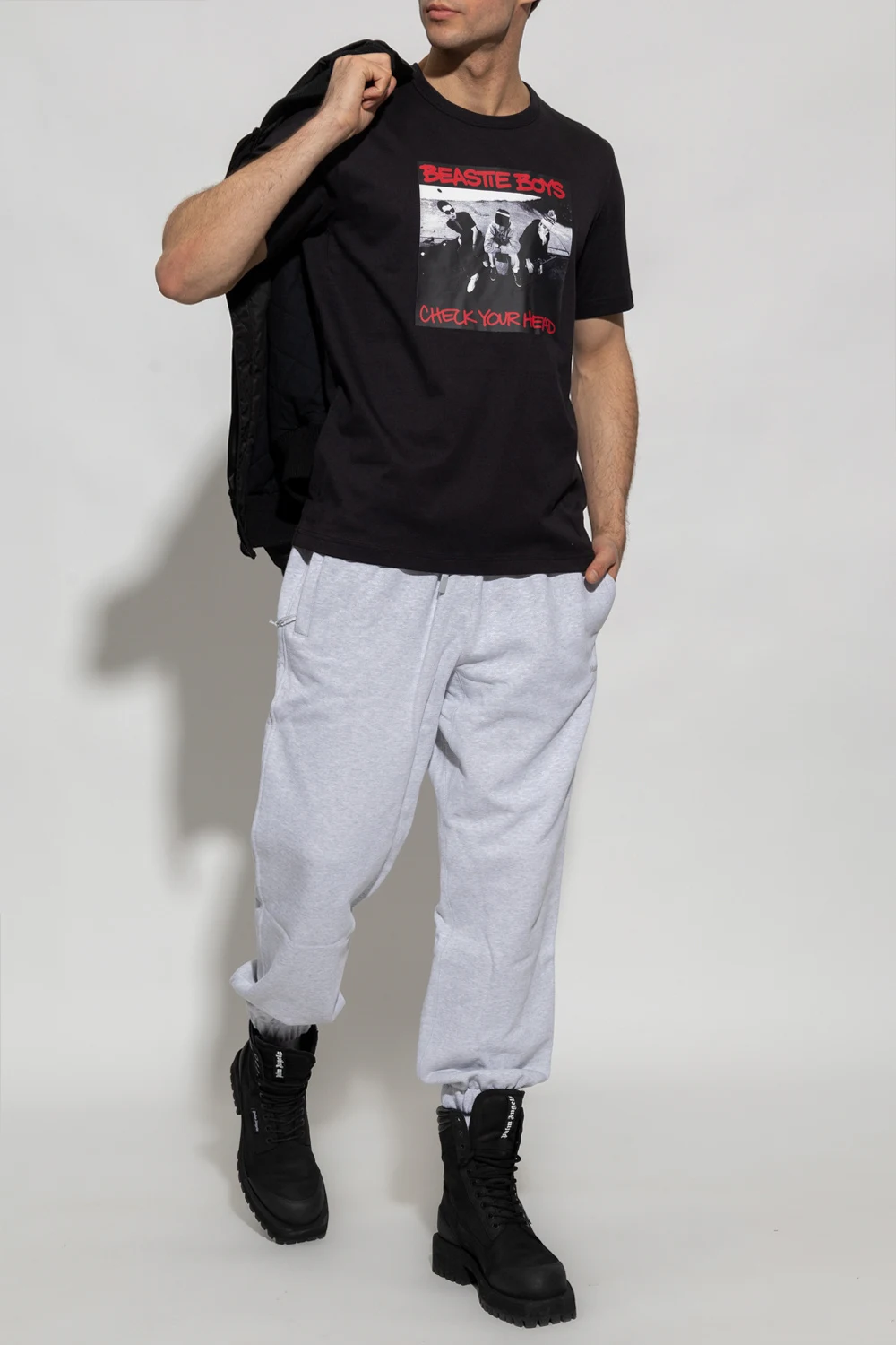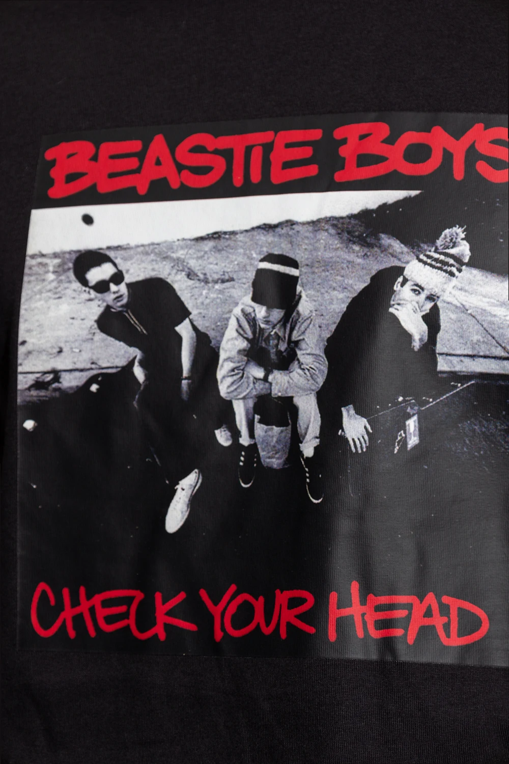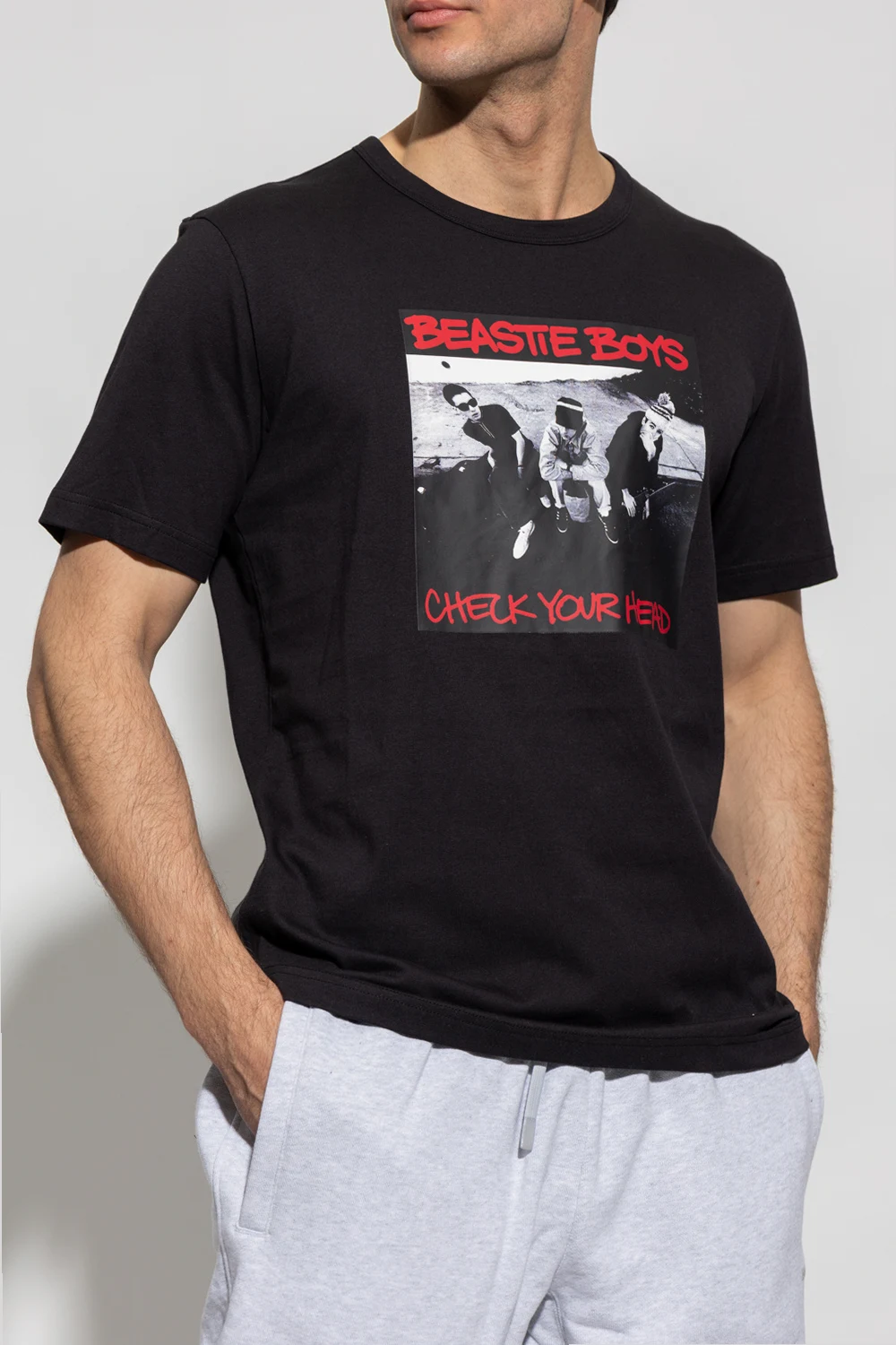 Black T-shirt from Champion x Beastie Boys. Made of cotton, this garment features a multicolored Beastie Boys print, ribbed crew neck and short sleeves with a logo patch.