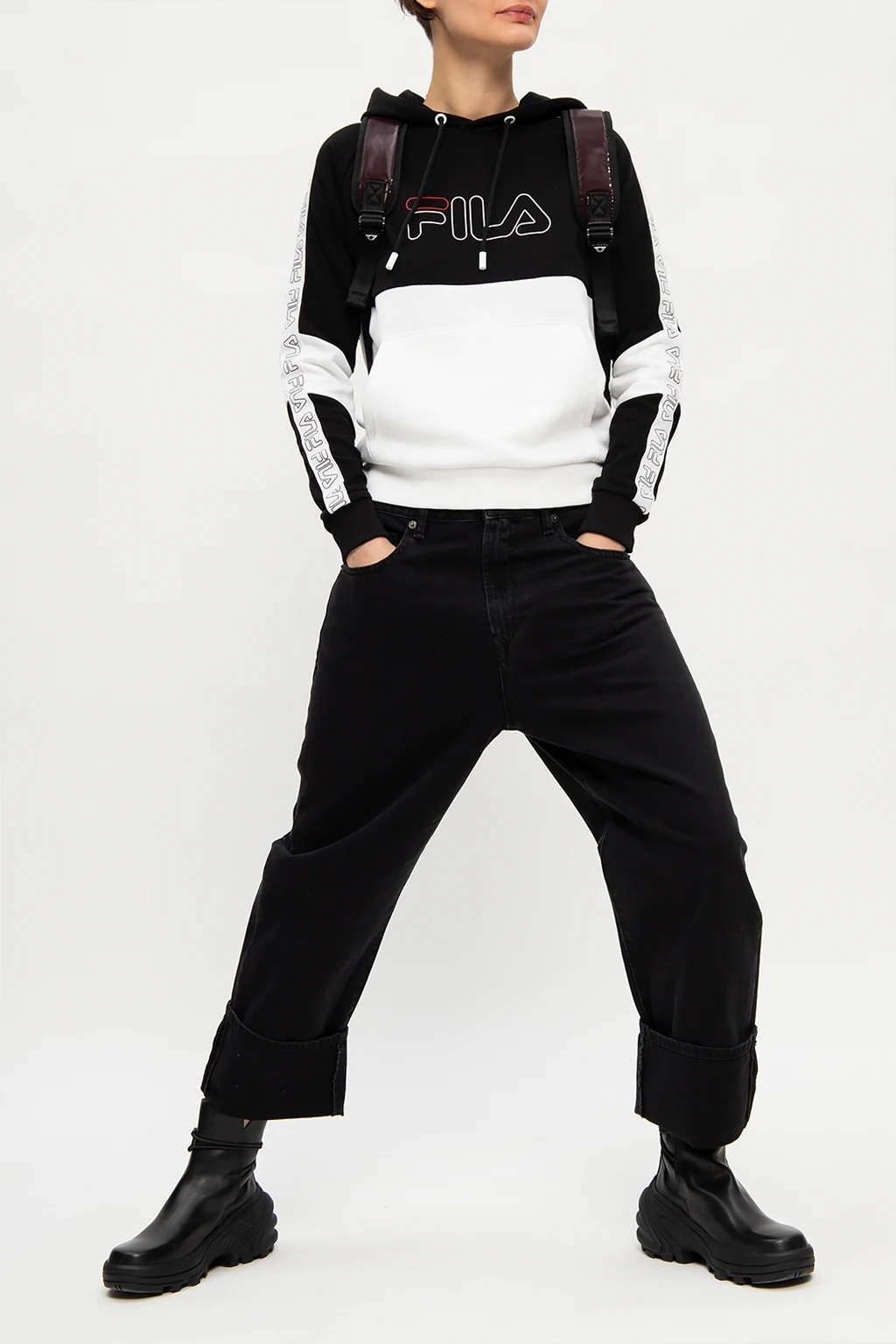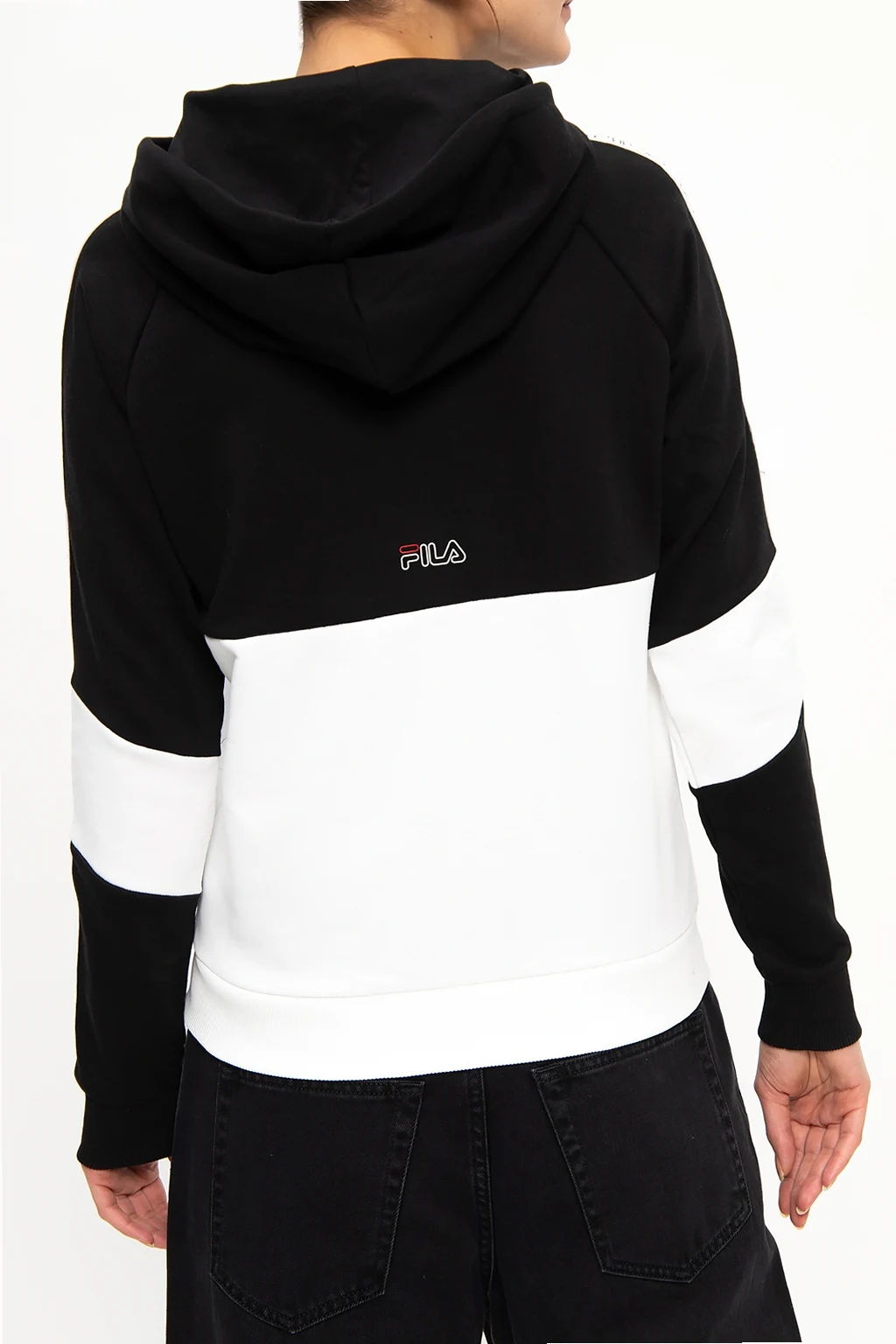 White and black hoodie from Fila. Crafted from cotton, this design features a drawstring hood, logo print, front slip pocket and ribbed trims at the hem and cuffs.