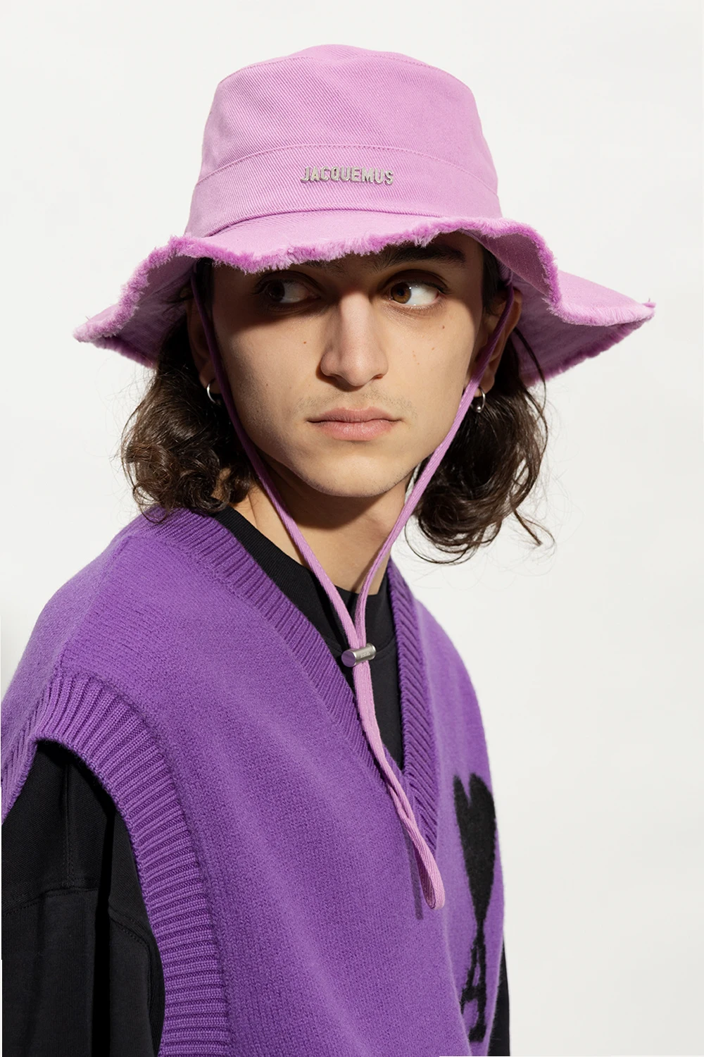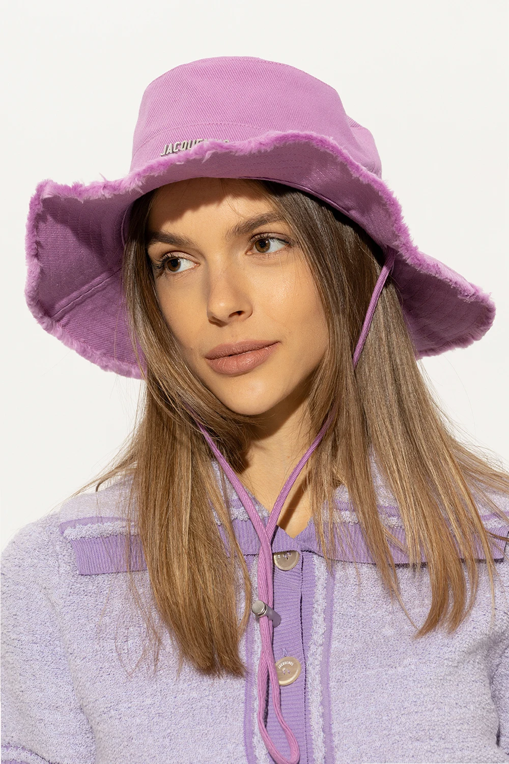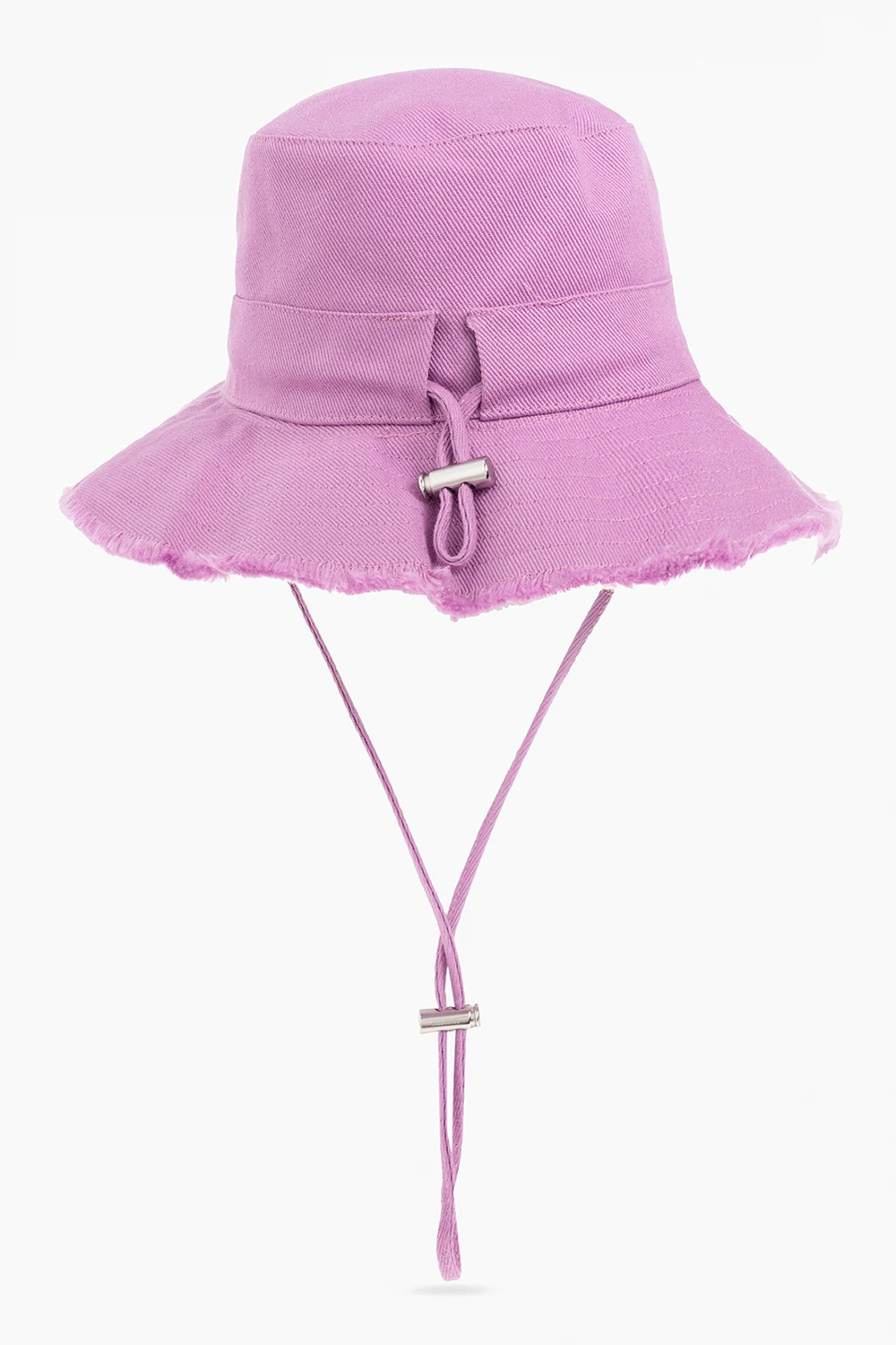 Light purple from Jacquemus. Made from cotton, this item features an adjustable chin drawstring closure, back drawstrings with a logo-engraved toggle, a silver-tone metal logo application on the front, and raw trims.