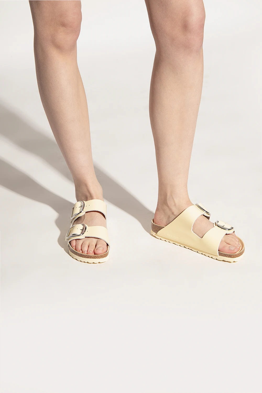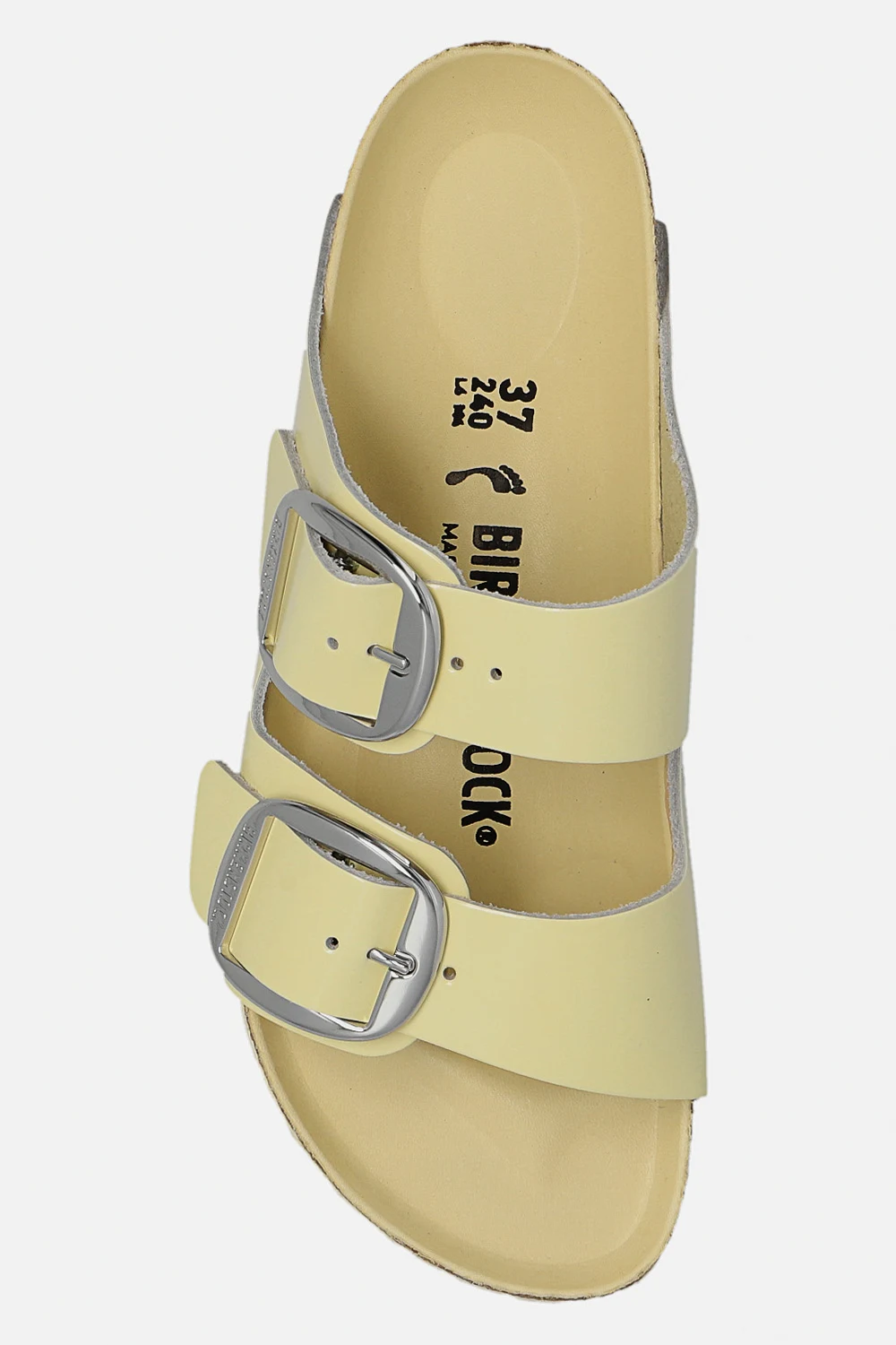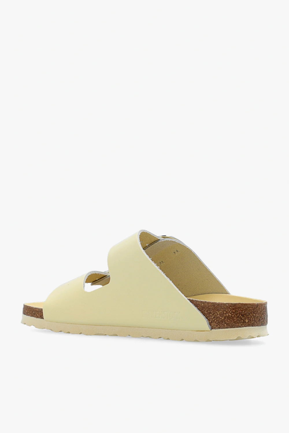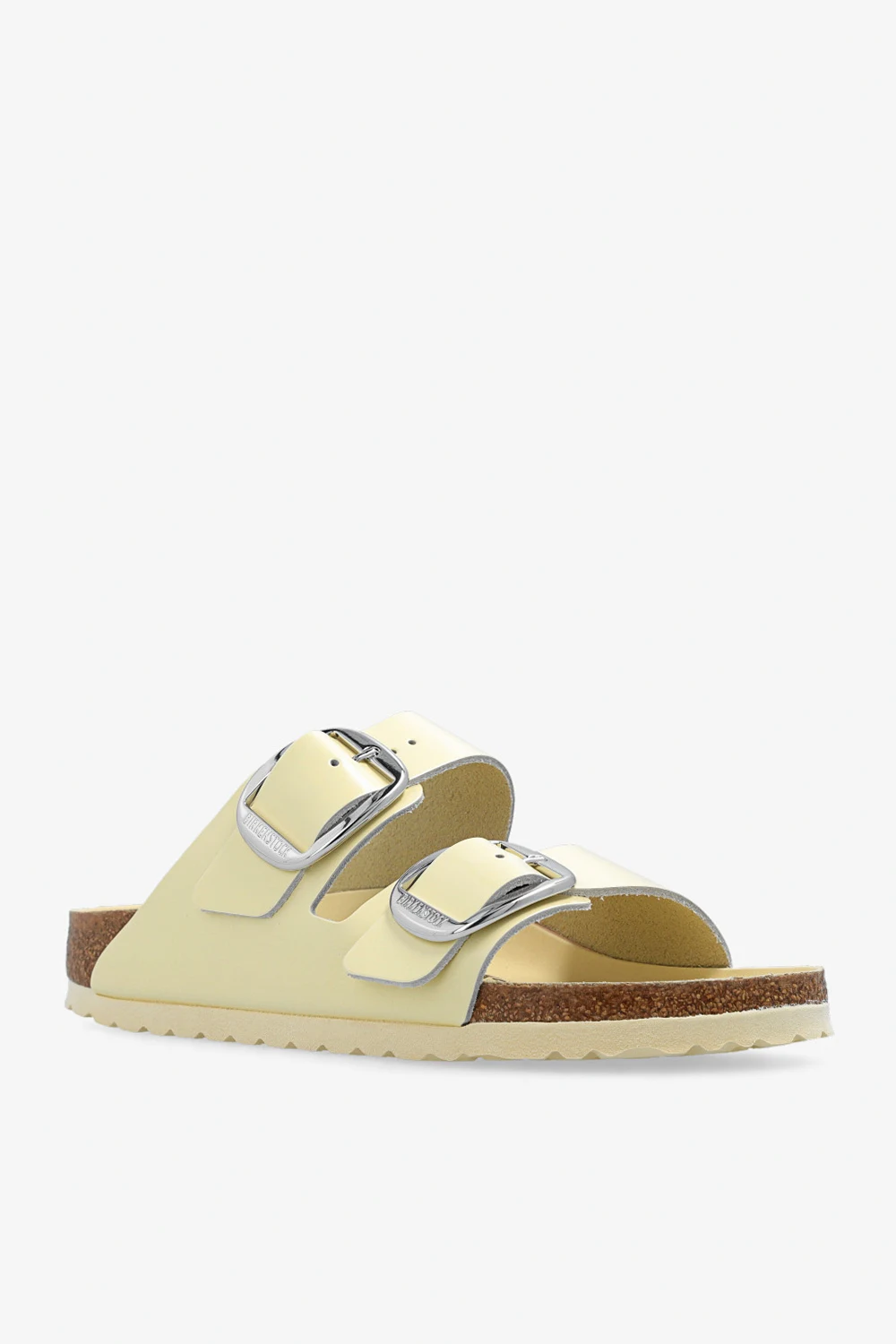 Yellow ‘Arizona Big Buckle’ slides from Birkenstock. Made of leather, this pair features adjustable buckle straps, an embossed logo on the side, anatomically shaped latex-cork footbed and yellow EVA foam sole.