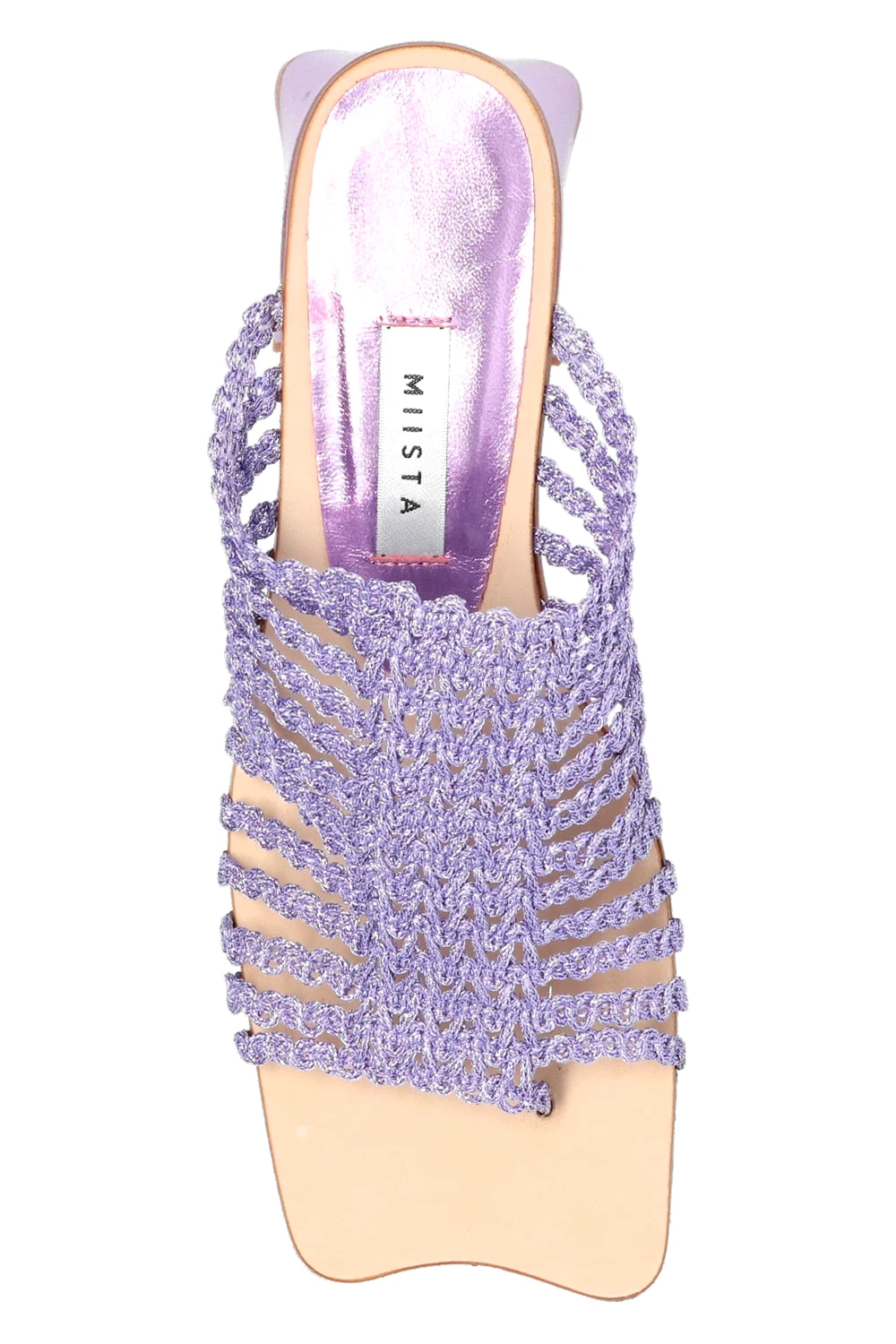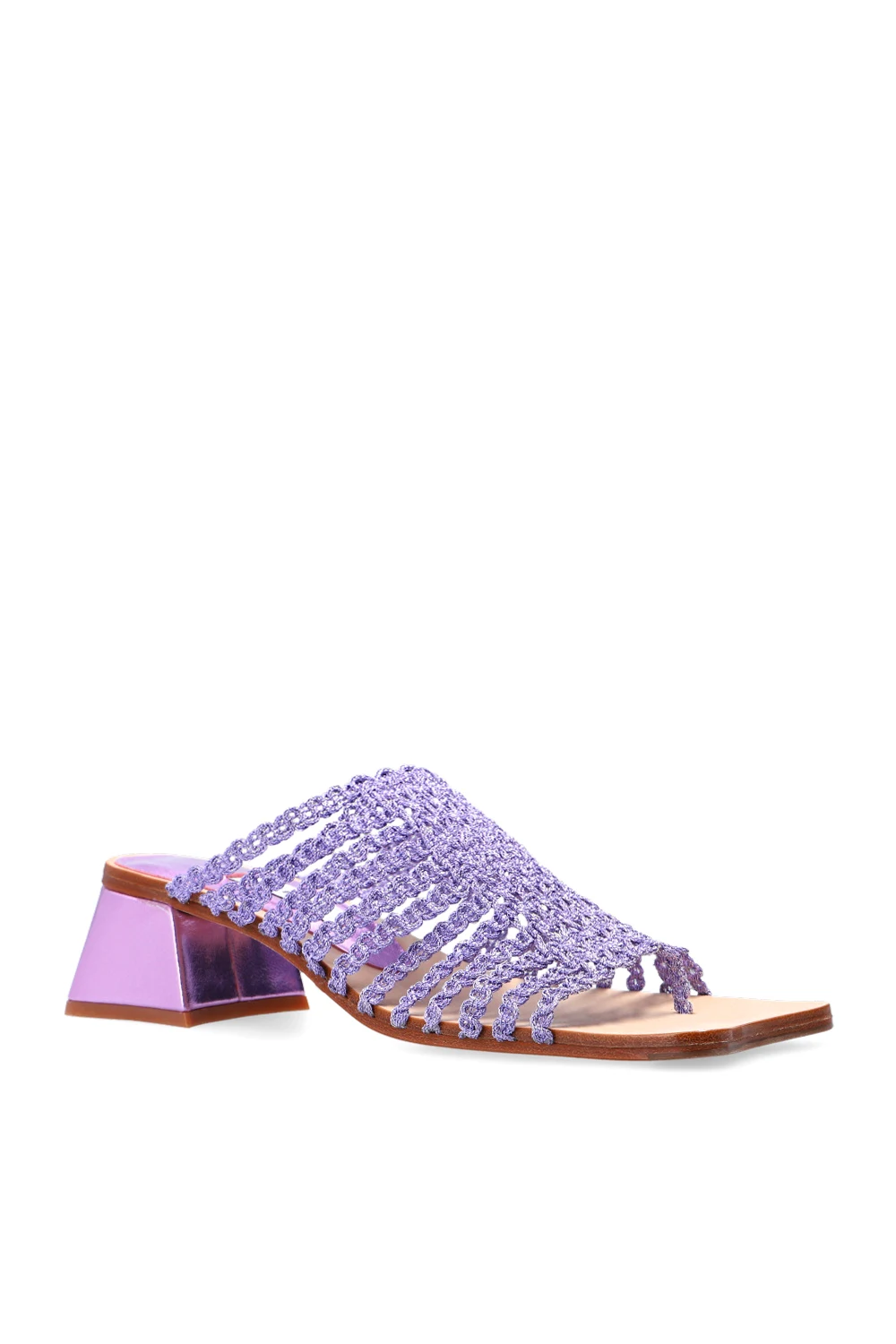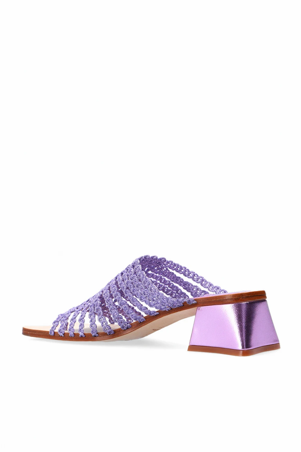 Purple ‘Haley’ heeled flip-flops from Miista. Finished with leather and lurex yarn, this pair sits on a beige leather sole.