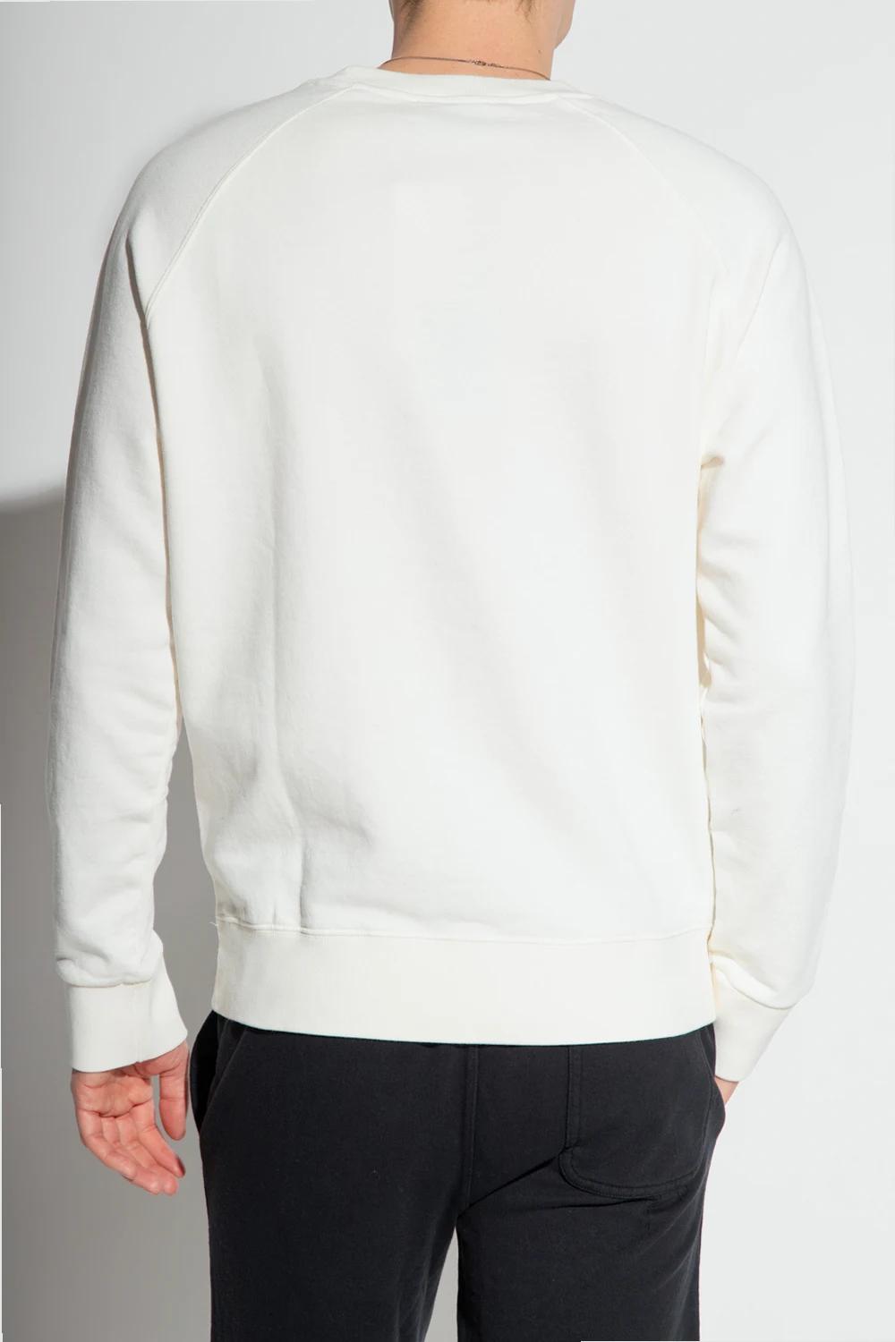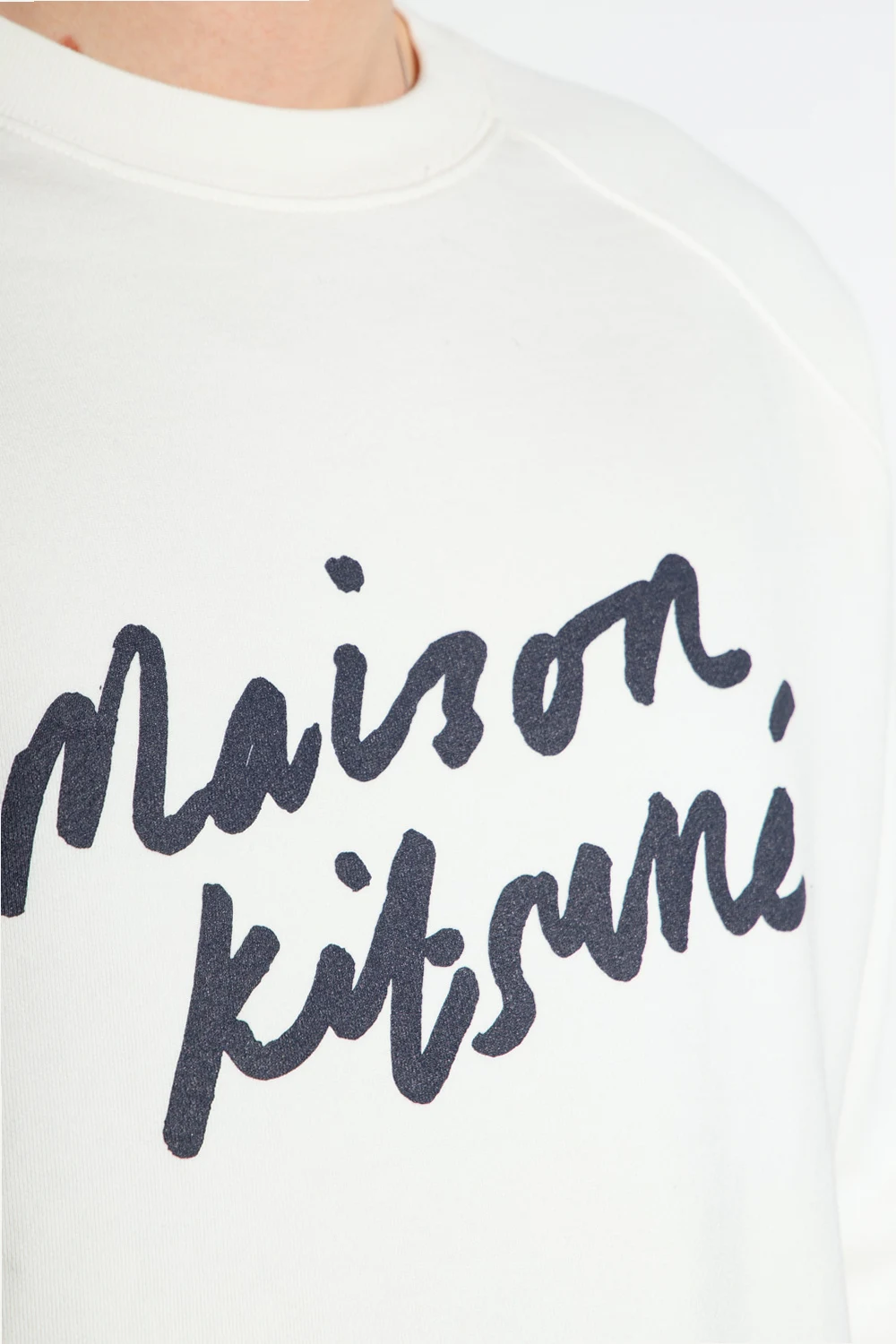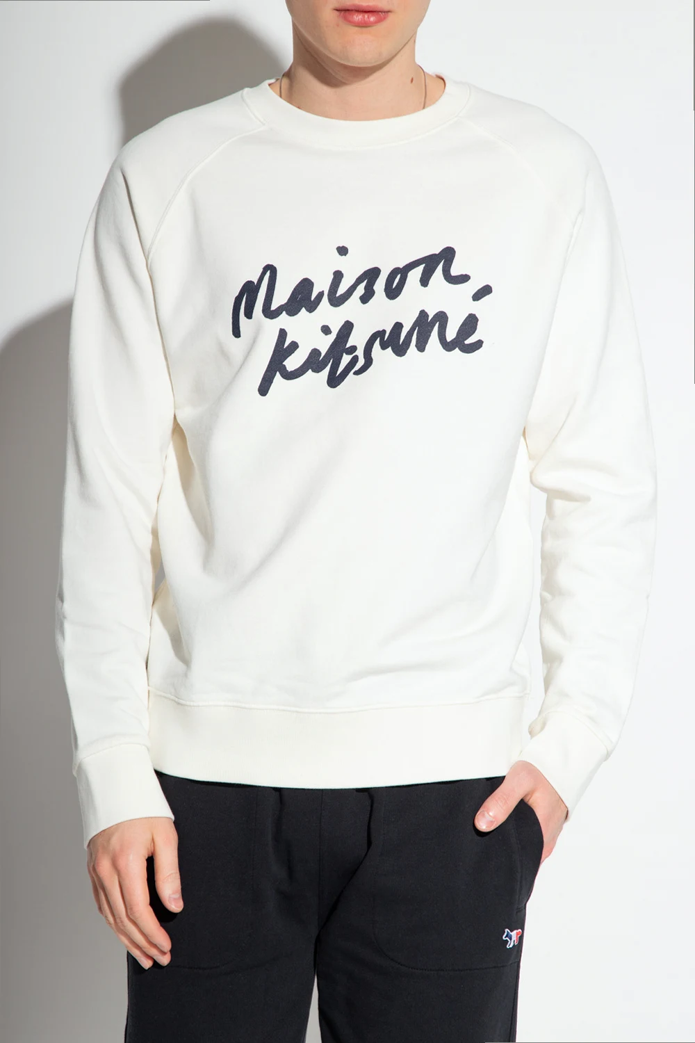 White crewneck sweatshirt from Maison Kitsune. Made of cotton, this style features a graphic print with the brand's logo, long sleeves and ribbed trims on the edges.