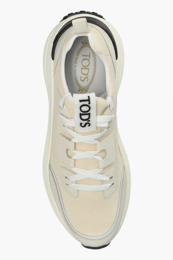 Sneaker mit Logo von Tod’s verkörpern urbane Raffinesse und Eleganz in einer subtilen Creme-Nuance. Die moderne Low-Top-Silhouette, die unterhalb des Knöchels endet, verbindet harmonisch sportlichen Komfort mit zeitloser Ästhetik.