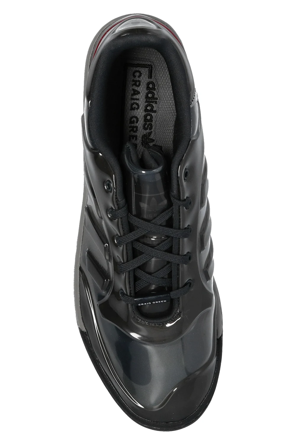 Black ‘Rivalry Polta AKH’ sneakers from ADIDAS Originals x Craig Green. With a molded TPU upper, this lace-up pair features the brand's iconic three stripes on the sides, a graphic logo print and a black and grey rubber sole at the base.