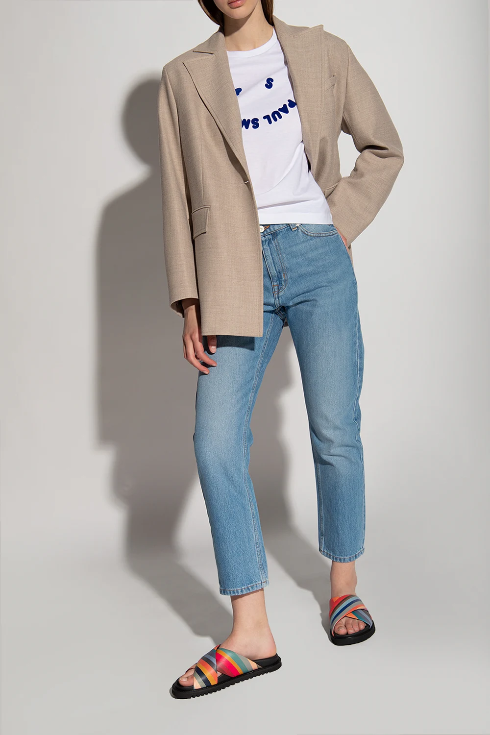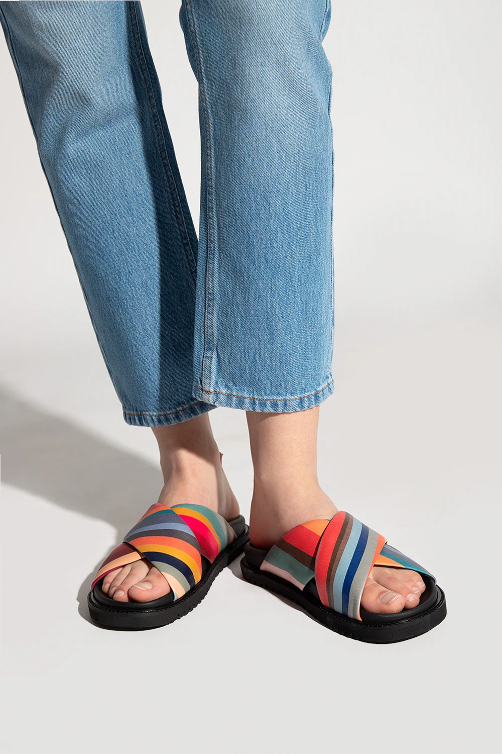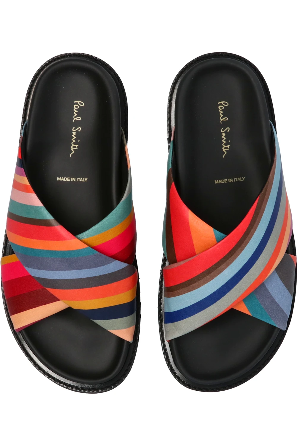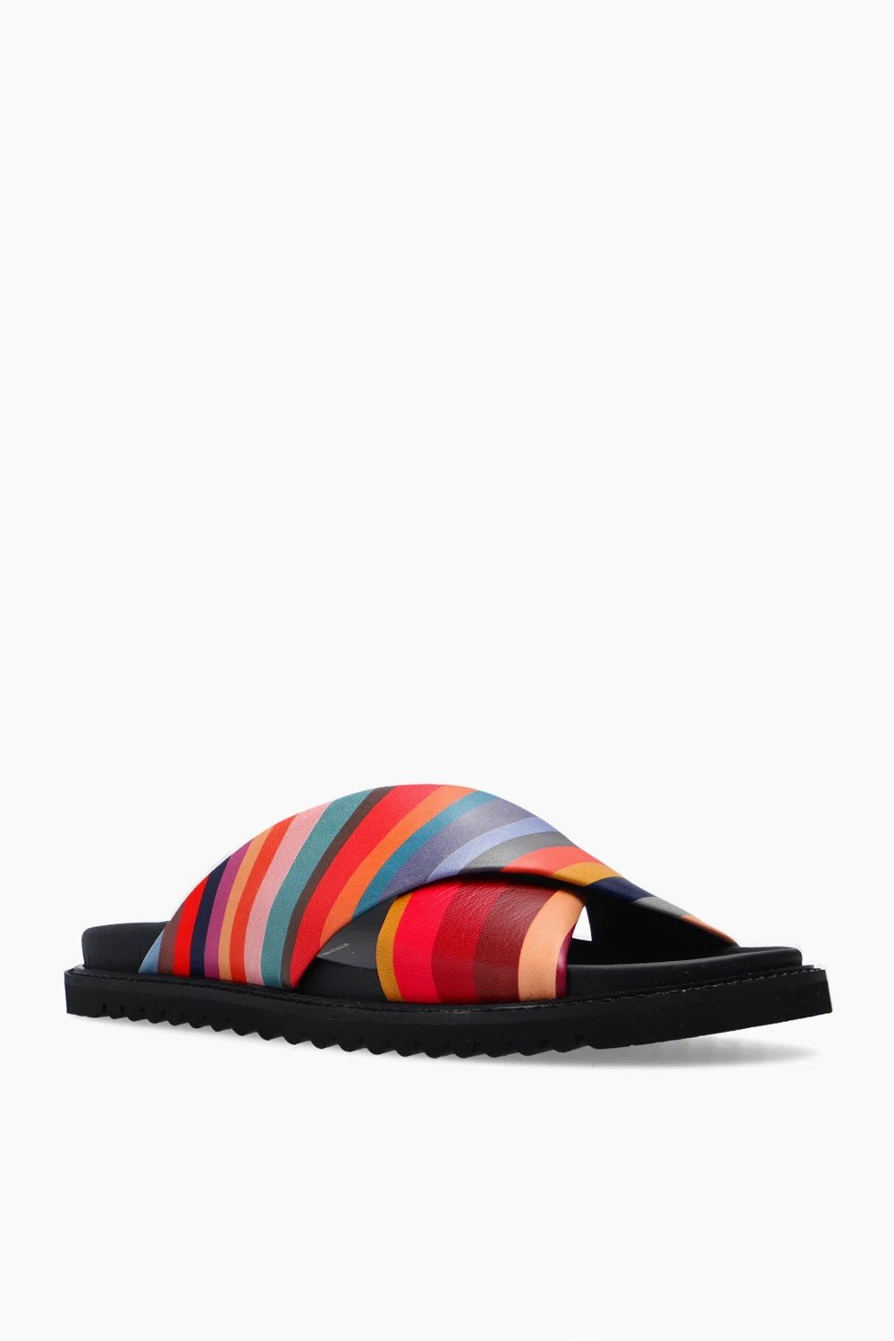 Multicoloured slides from PS Paul Smith. Crafted from leather, this pair sits on a black rubber sole with Vibram technology and showcases the brand's signature stripe print.