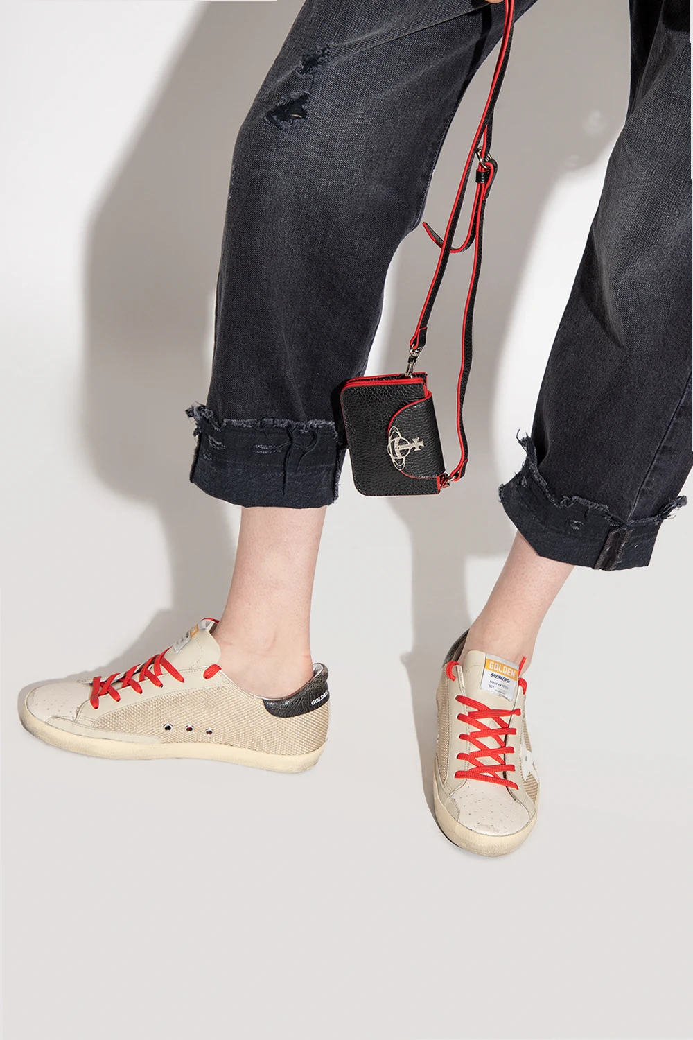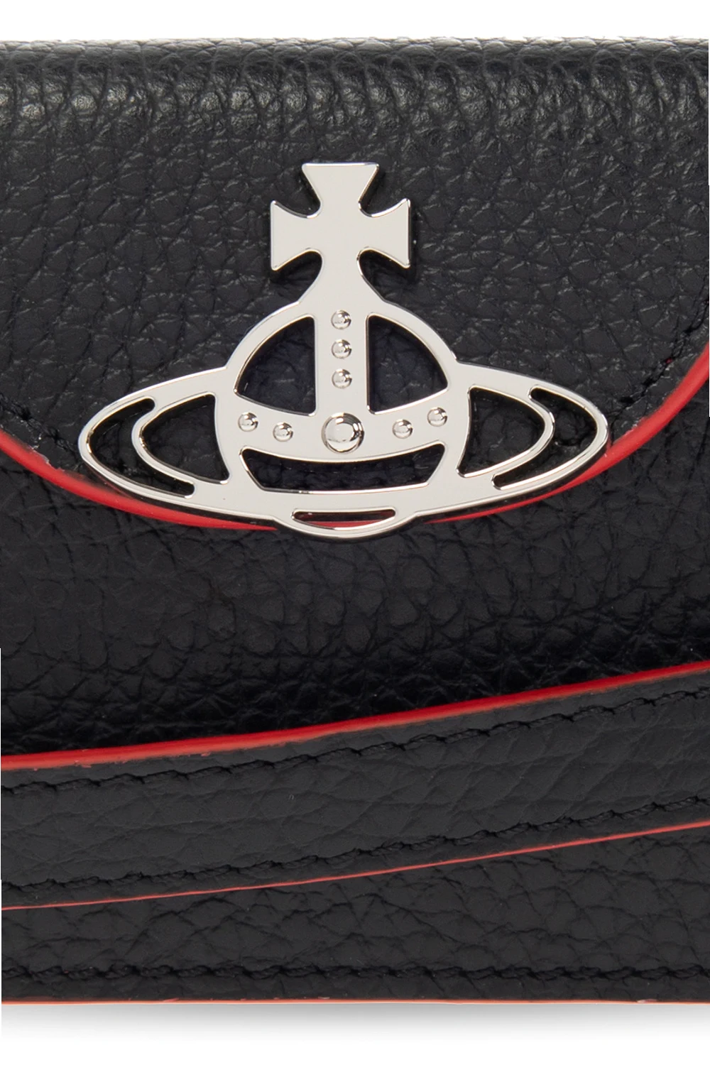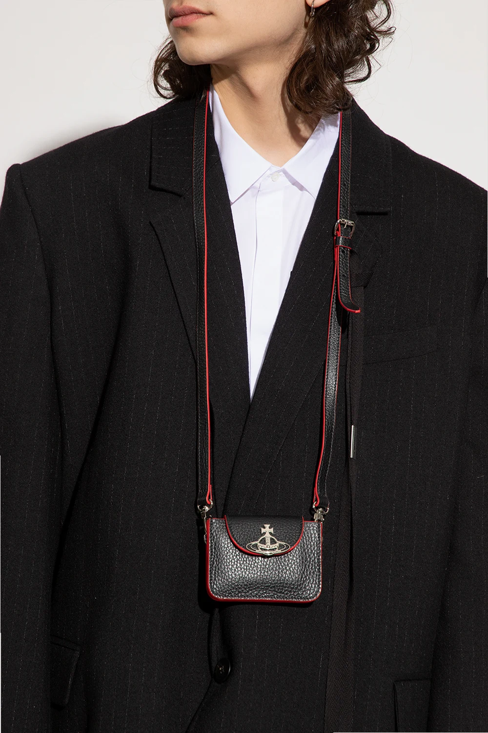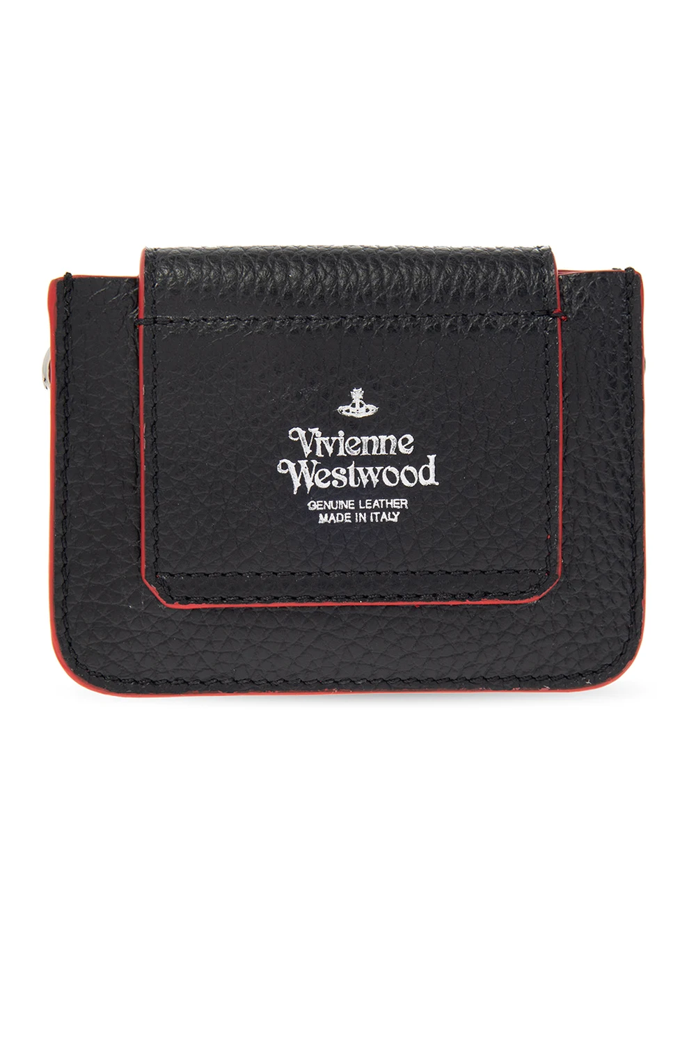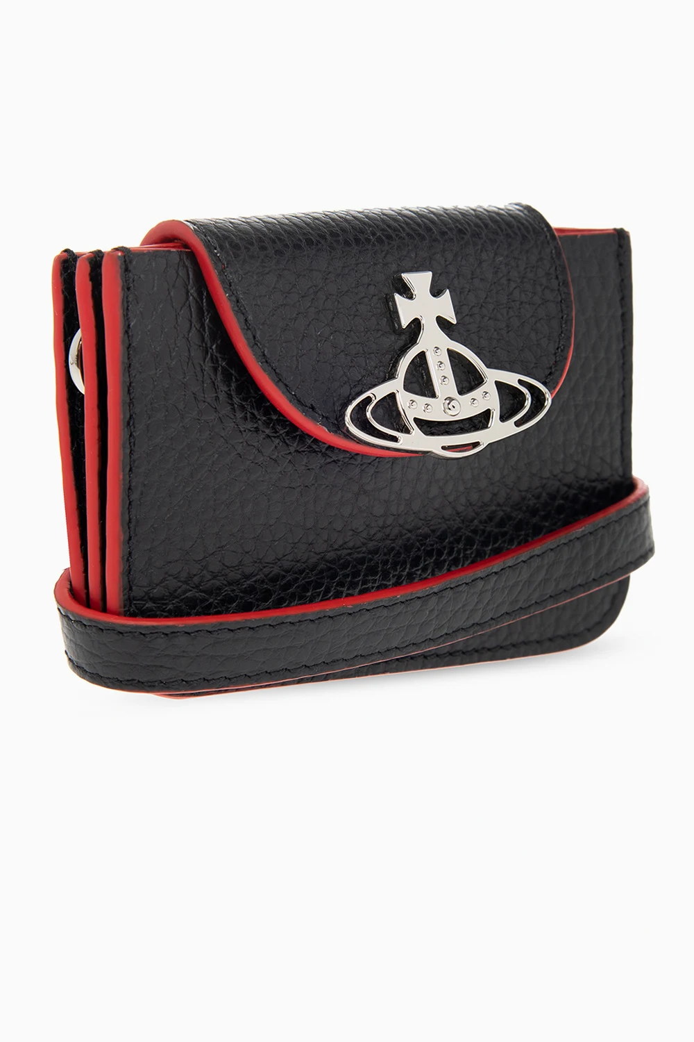 Black and red ‘Bary’ card case from Vivienne Westwood. Made of cow leather, this item features a snap fastening, a logo application, silver-tone metal hardware, one internal compartment and an included strap.