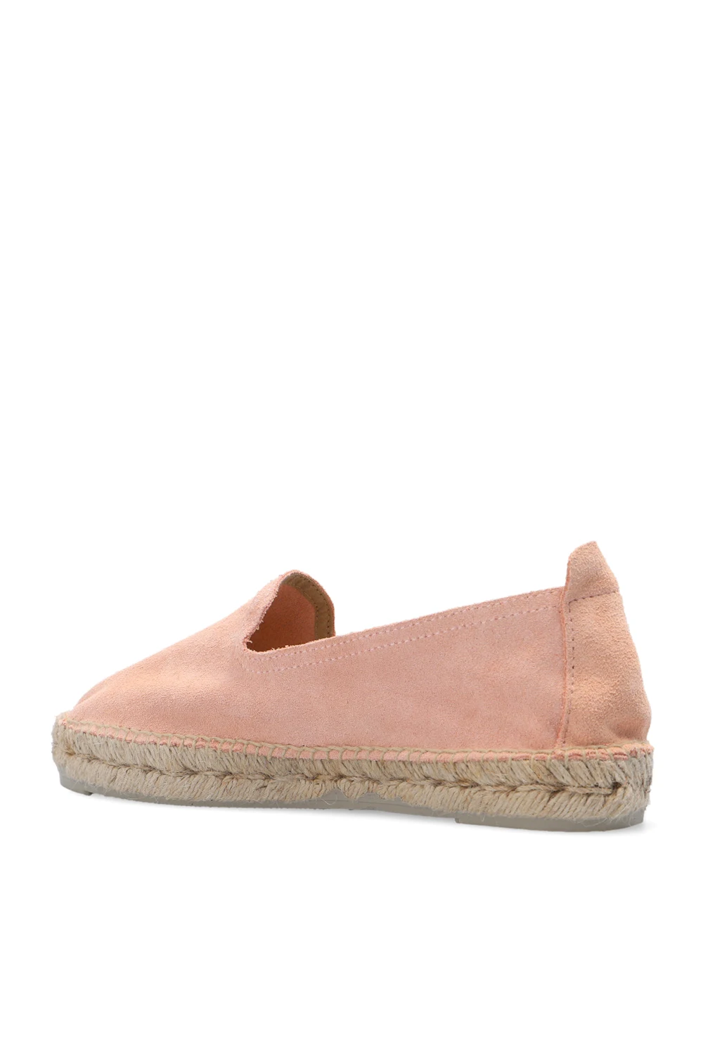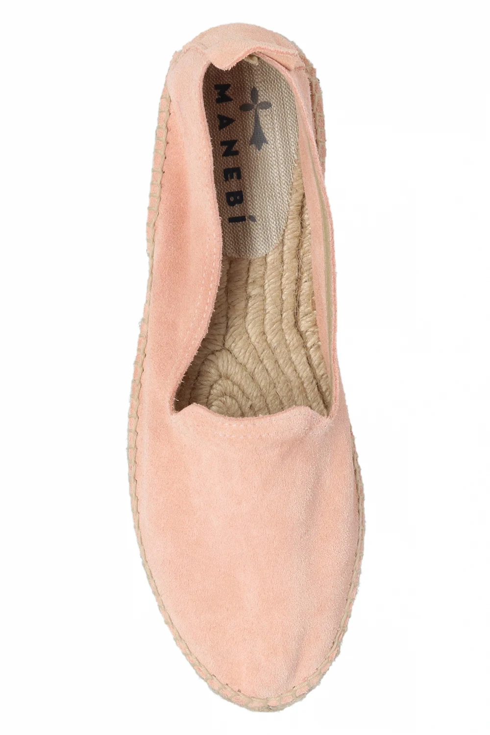 Light pink ‘Hamptons’ espadrilles from Manebi. Made of suede, this model features an embossed logo on the side and a natural jute sole with a thin rubber layer in grey.