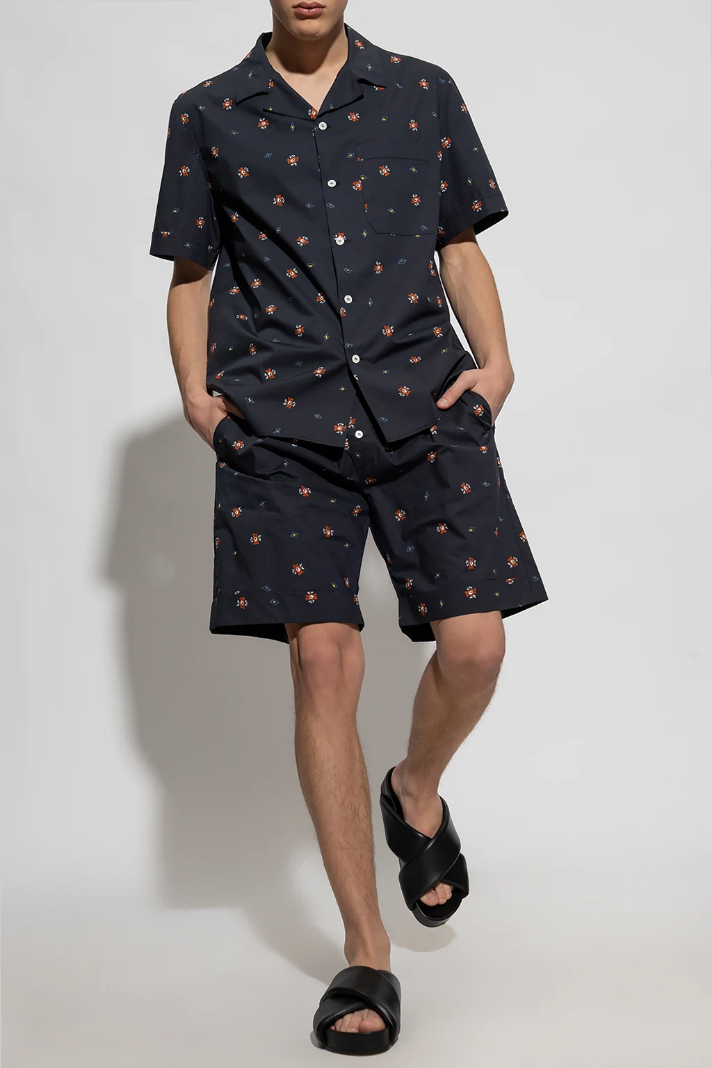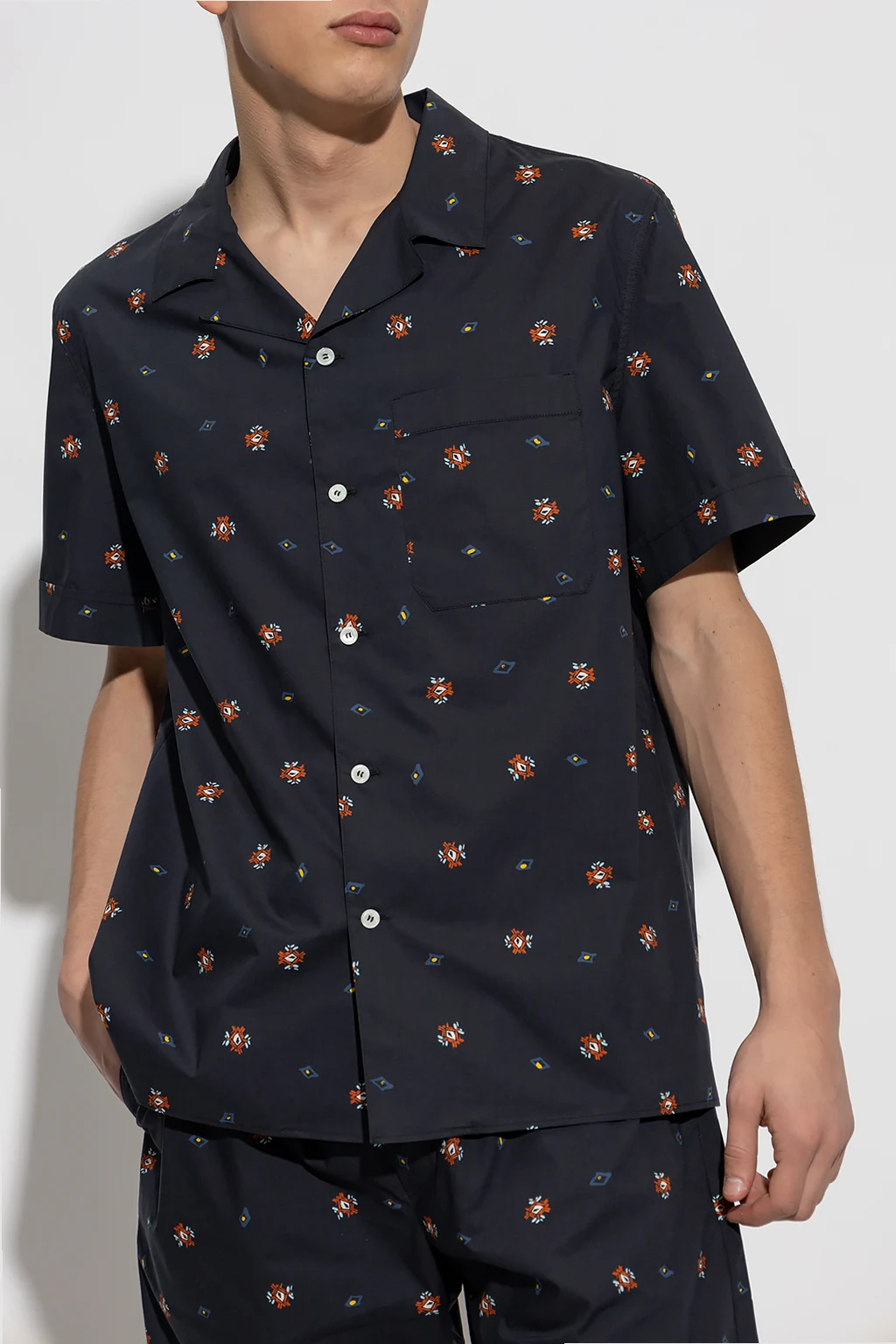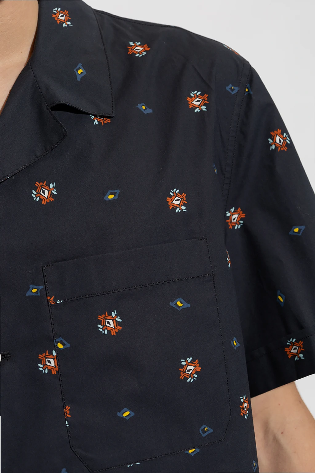 Navy shirt from Nick Fouquet. Made of cotton, this short sleeve design features button fastenings, multicolored print and front pocket.