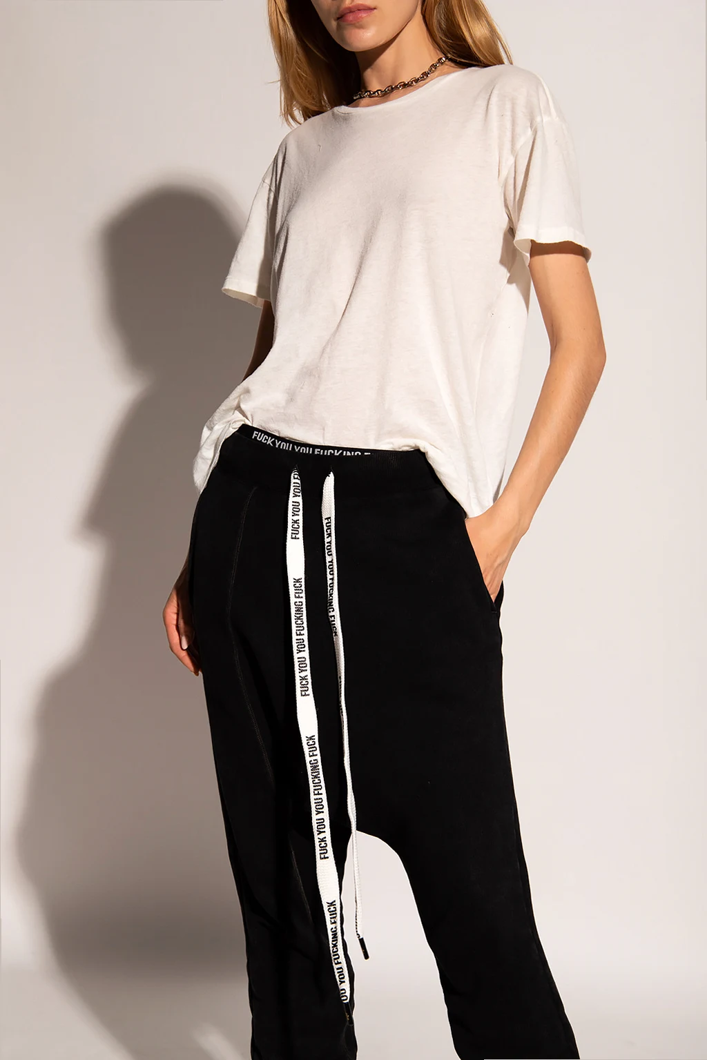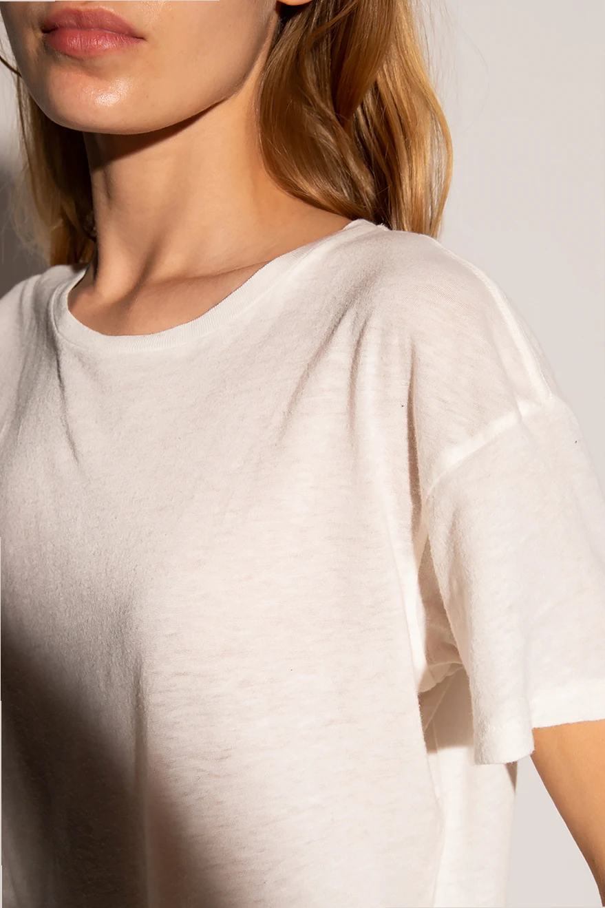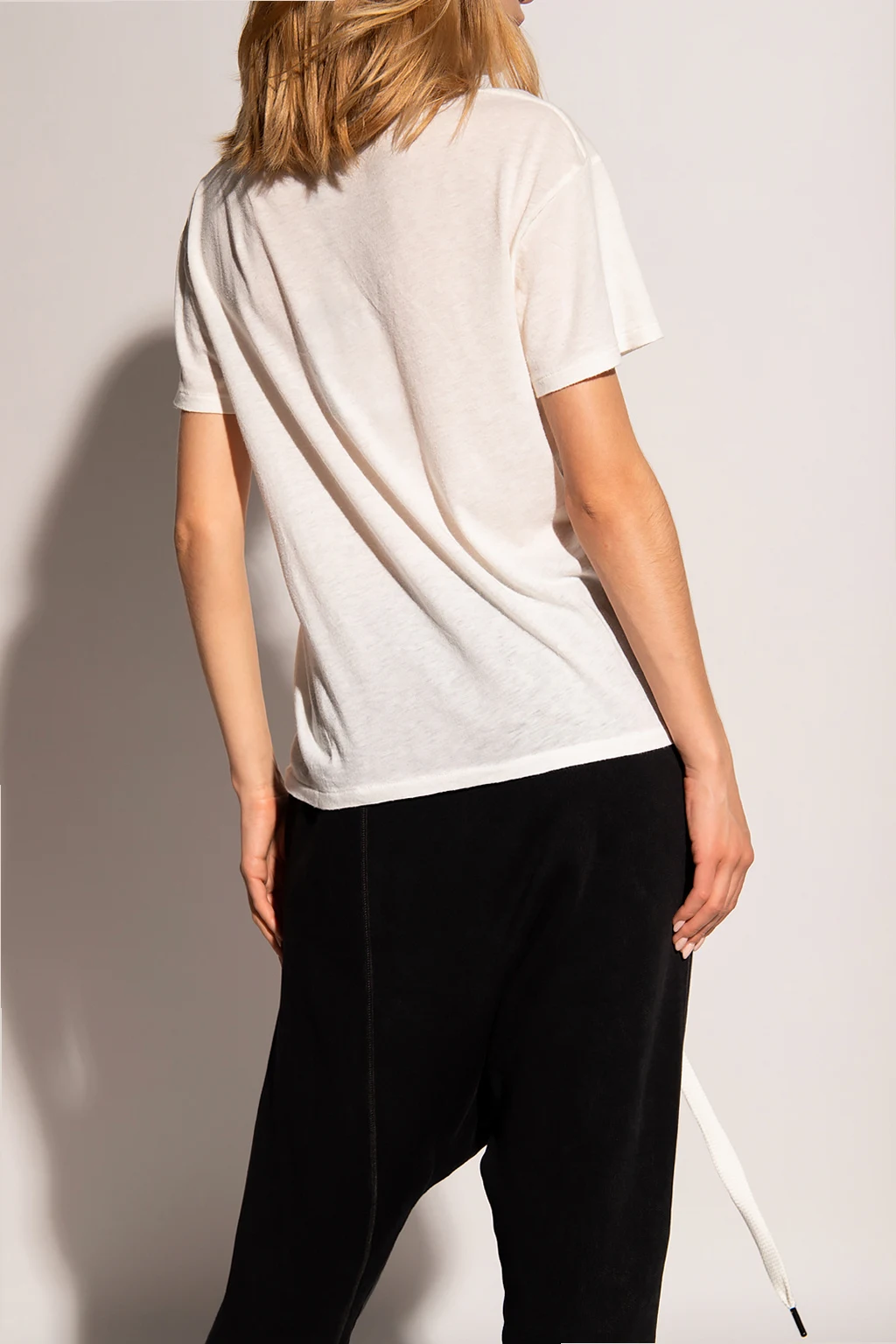 White crewneck T-shirt from R13. Crafted from a cotton and cashmere blend, this style features short sleeves and an elasticated collar.