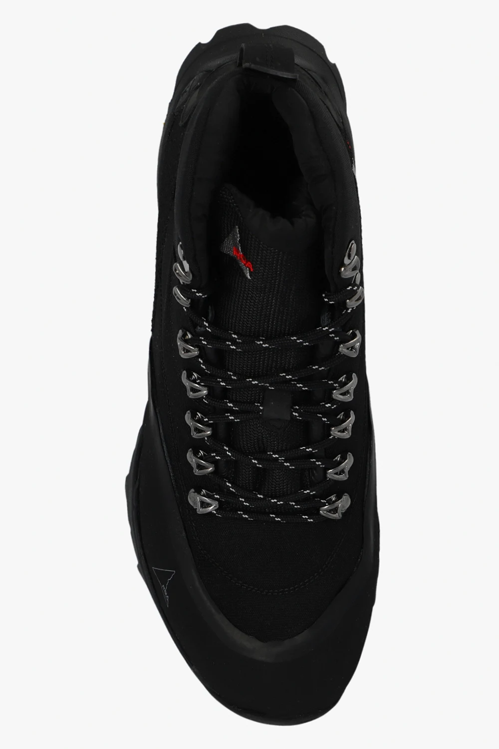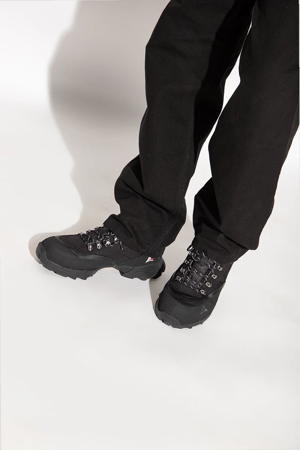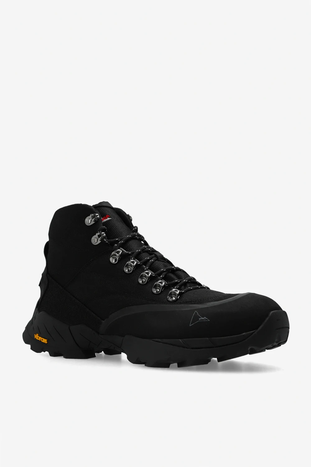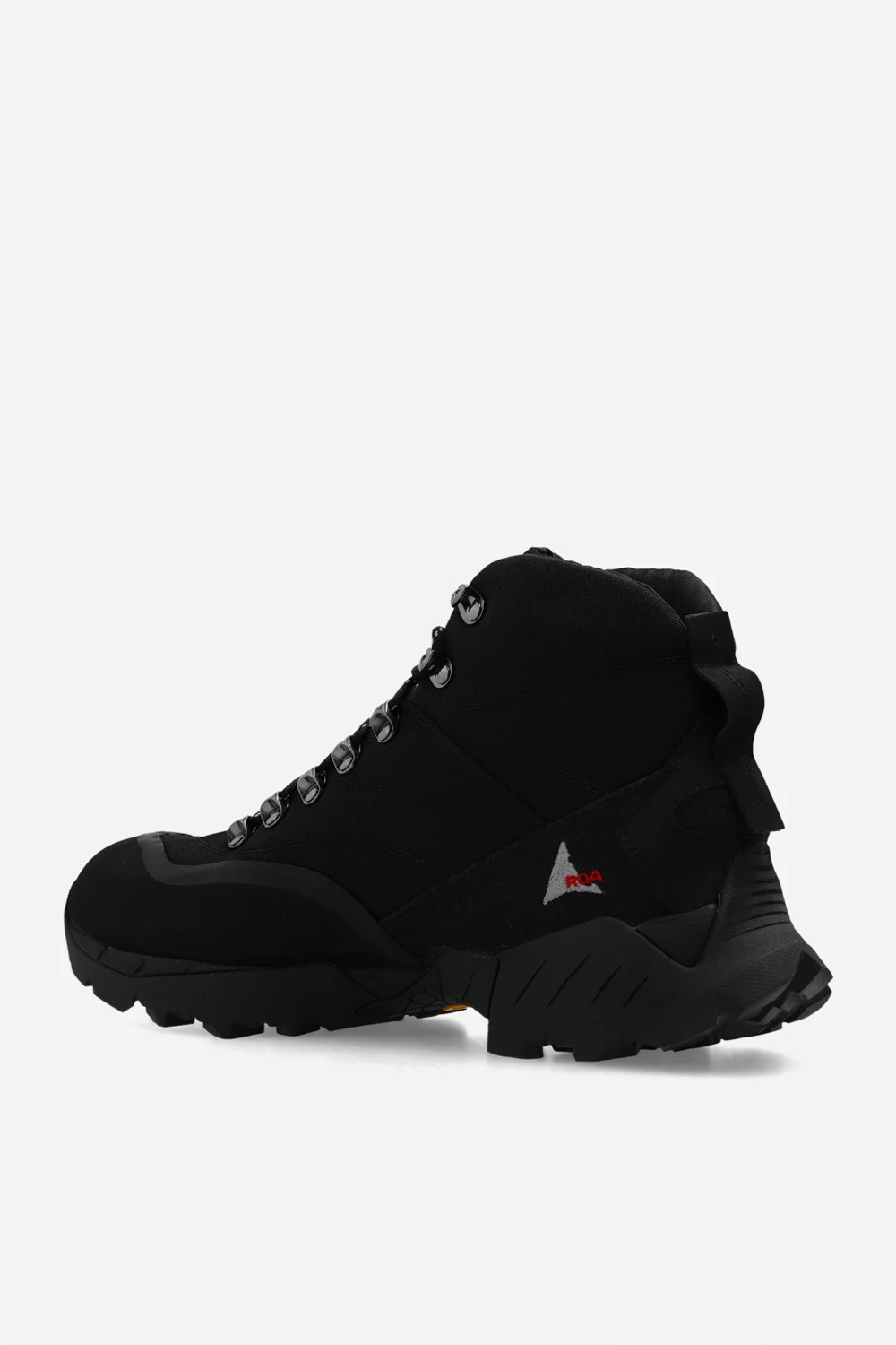 Black ‘Andreas’ hiking boots from ROA. Crafted from fabric, this lace-up model features the brand's logo, rubber trims and a black Vibram Megagrip toothed tread pattern sole designed for optimal traction and to ensure high resistance to use on roughest surfaces. Swappable cream laces included.