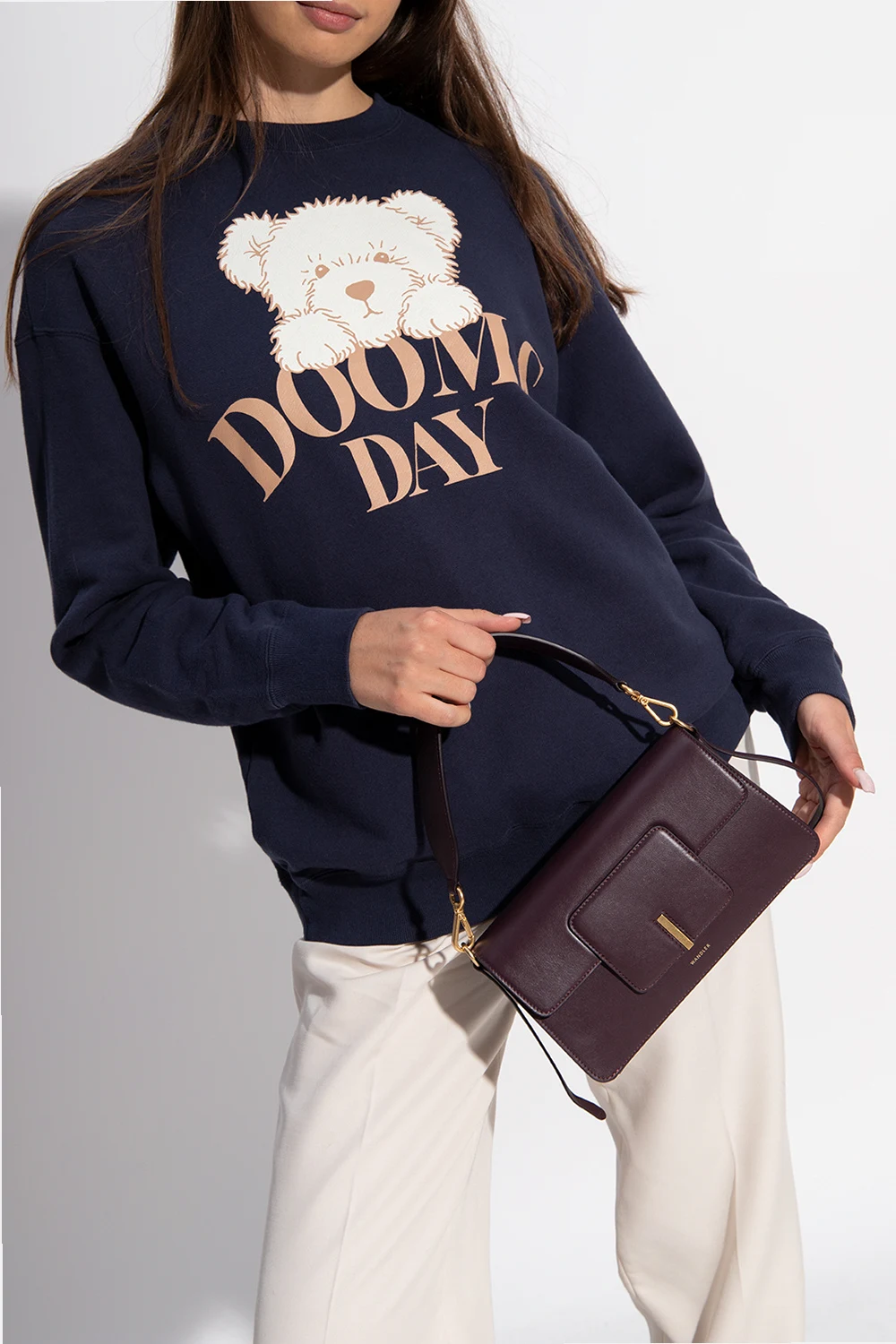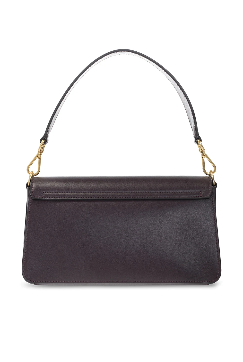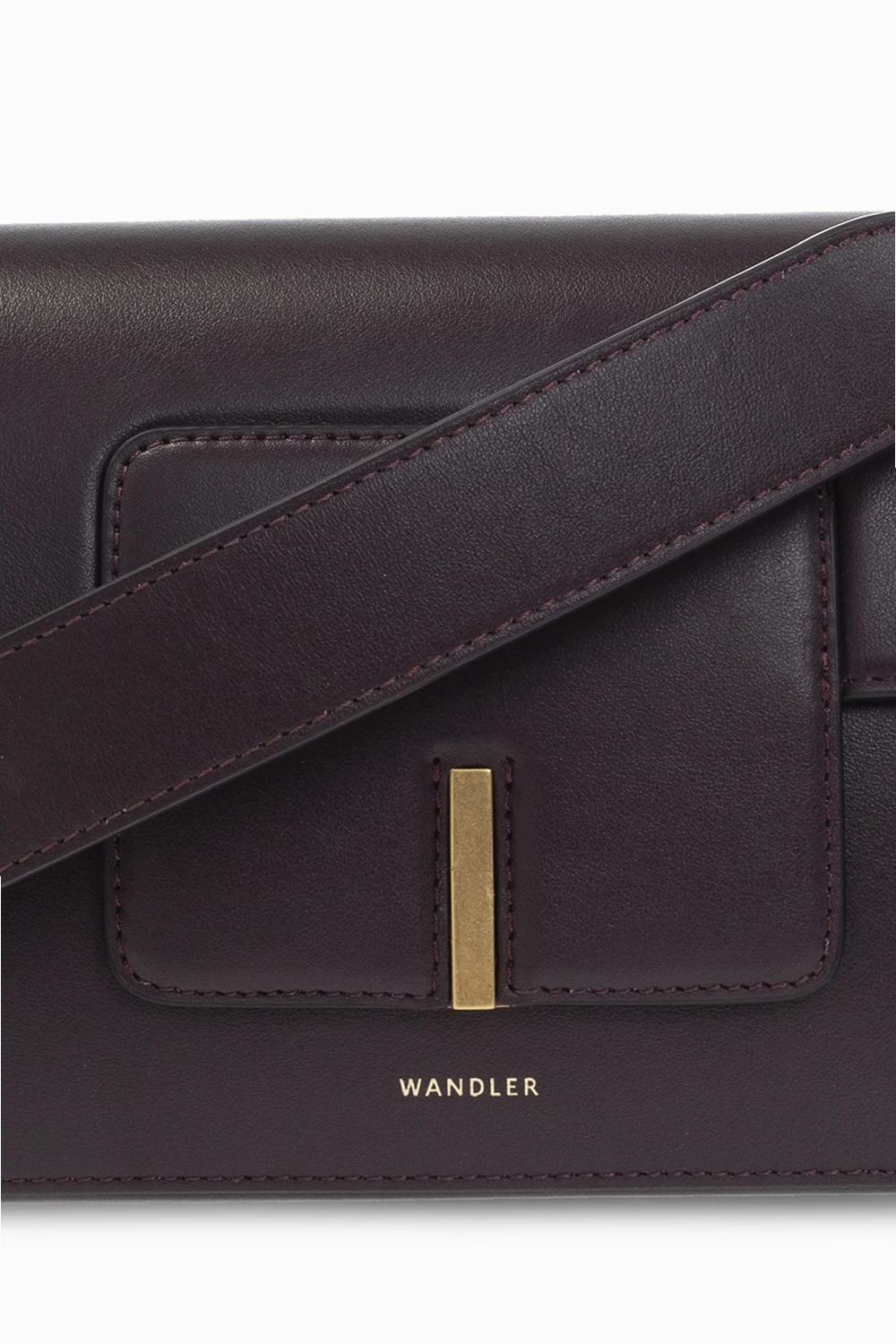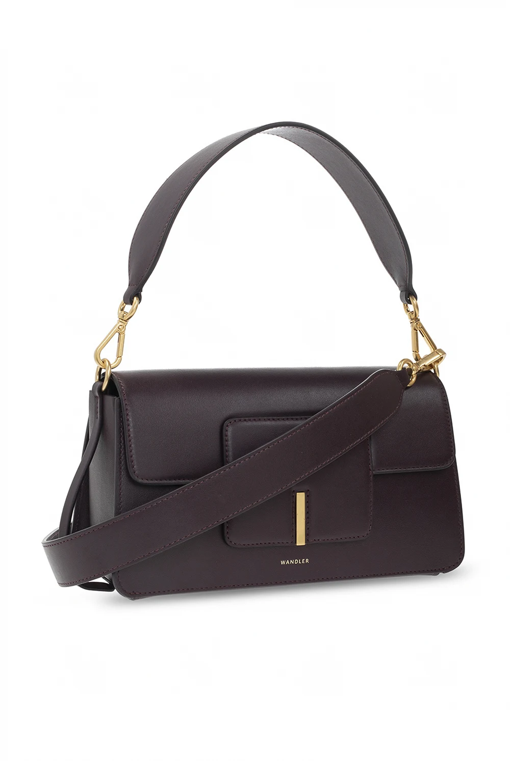 Dark purple ‘Georgia’ shoulder bag from Wandler. Crafted from leather, this model features a fold-over top with a magnetic snap, gold-tone logo print, adjustable half-round handle and shoulder strap, gold-tone metal hardware and one internal compartment with one slip pocket.