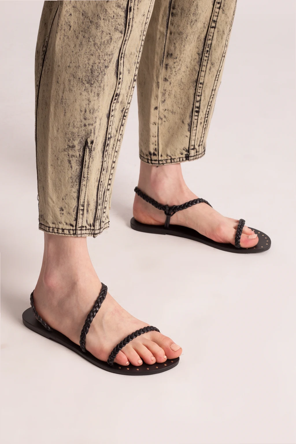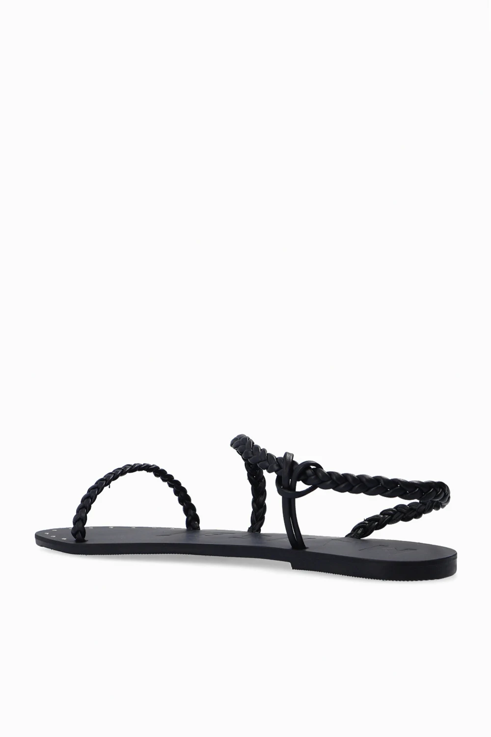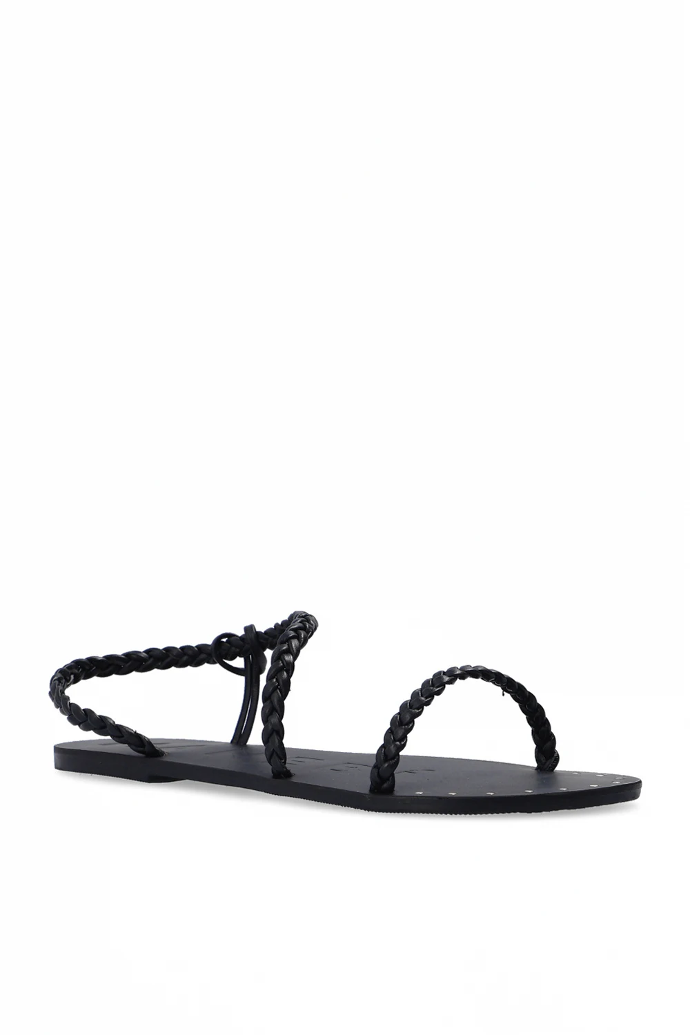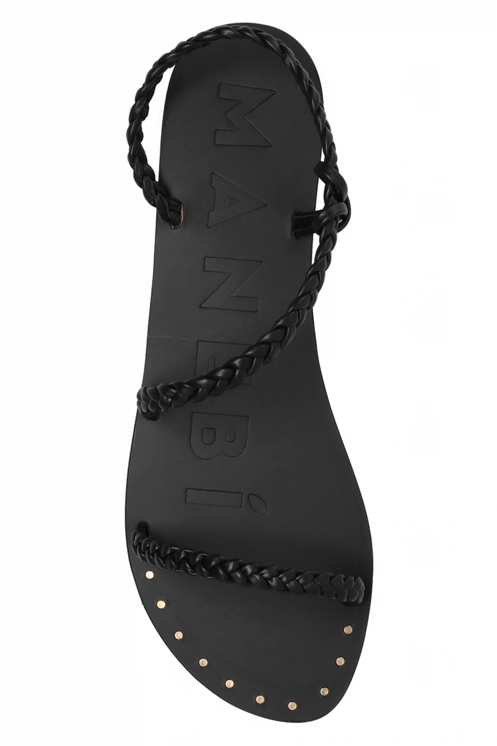 Black woven sandals from Manebi. Crafted from leather, this pair sits on a black rubber sole.