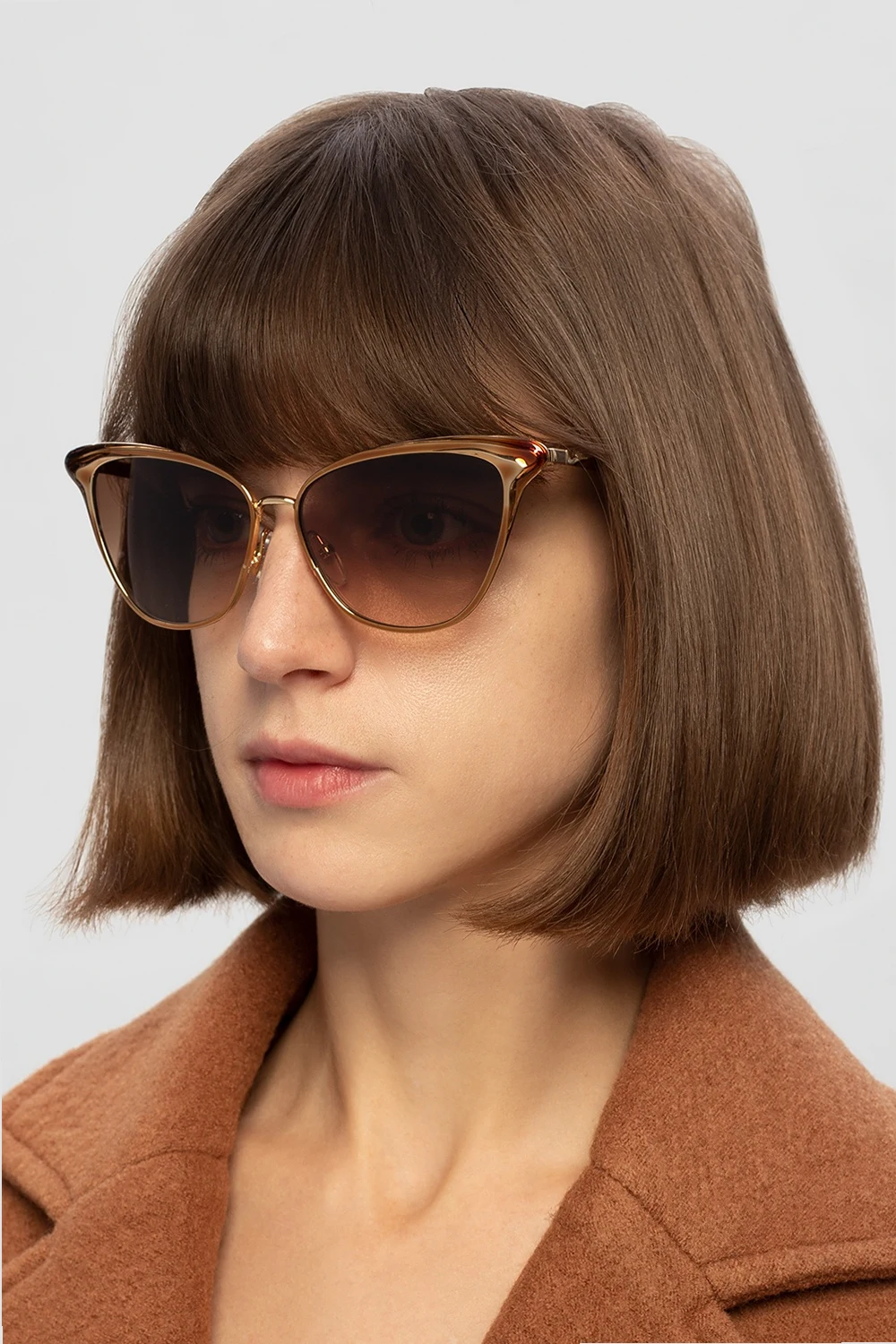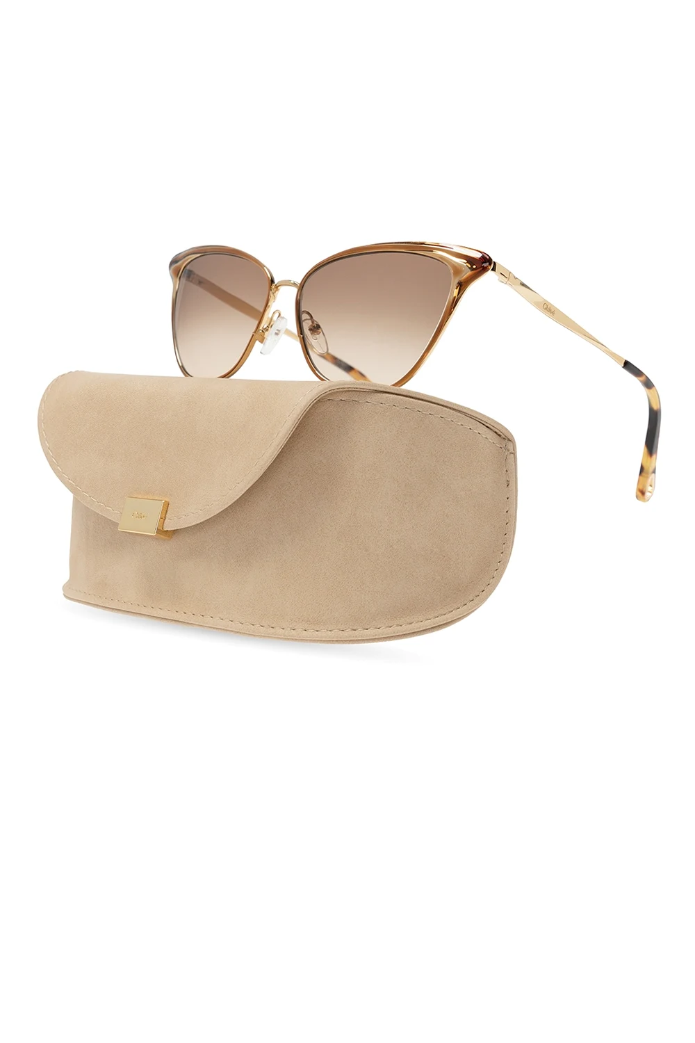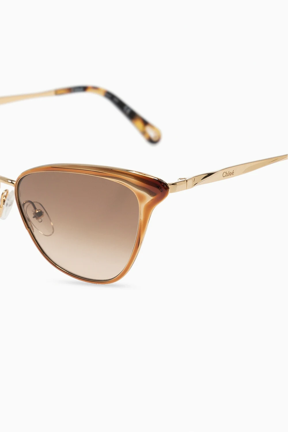 Brown and beige sunglasses from Chloé. Crafted from acetate and metal, this pair employs logo-embossed temples and certificated beige gradient lenses which ensure 100% UVA/UVB protection.