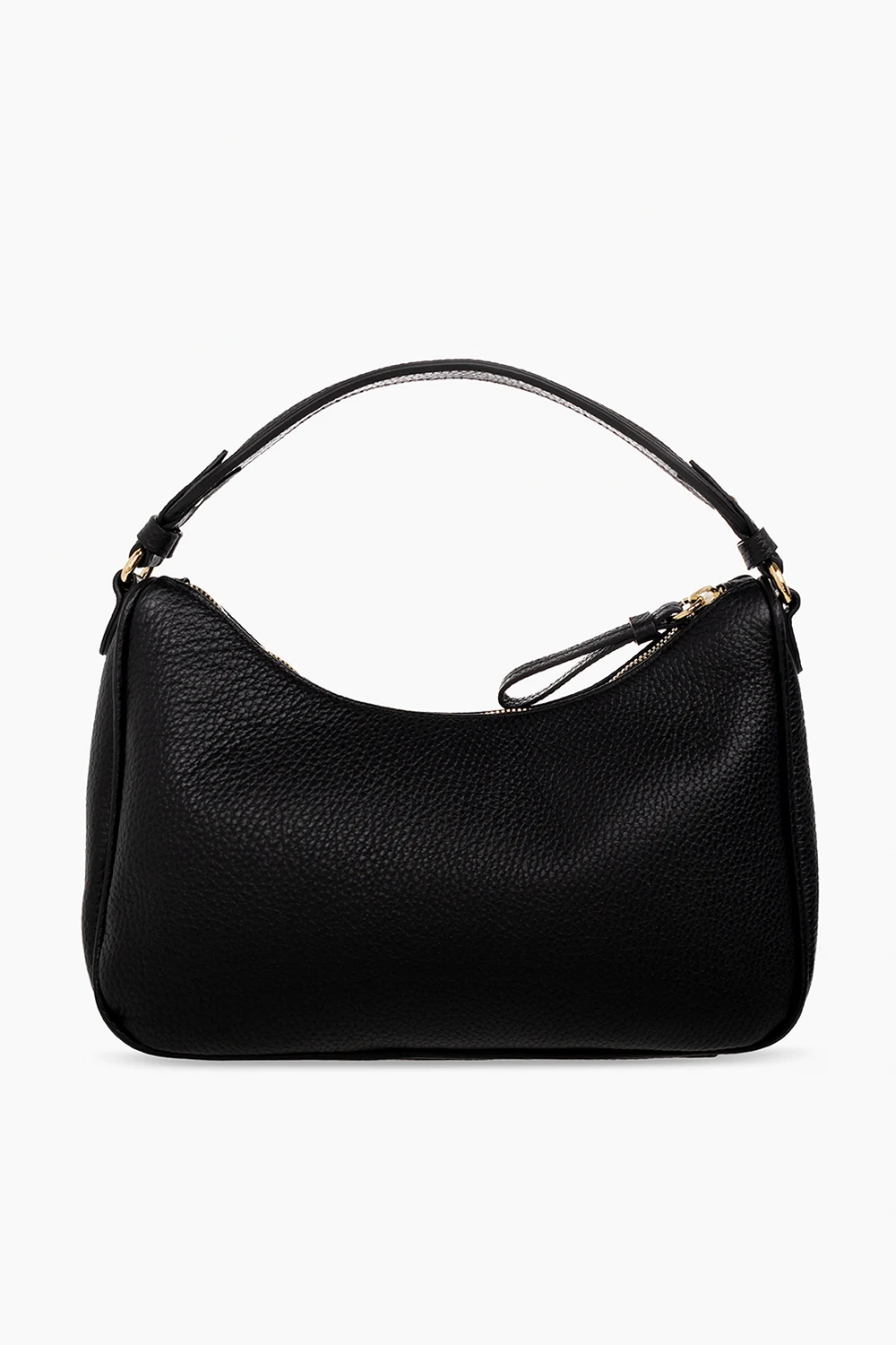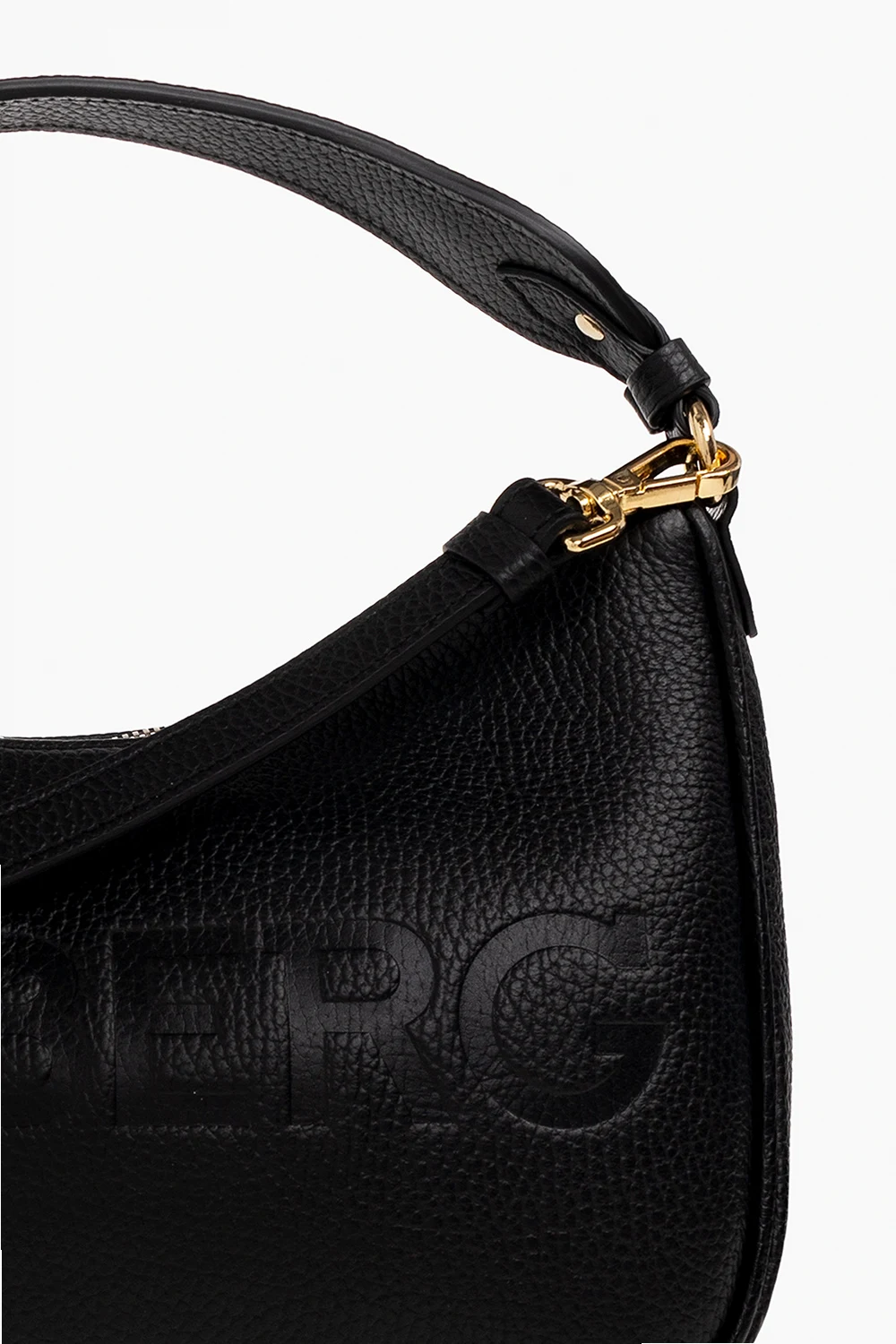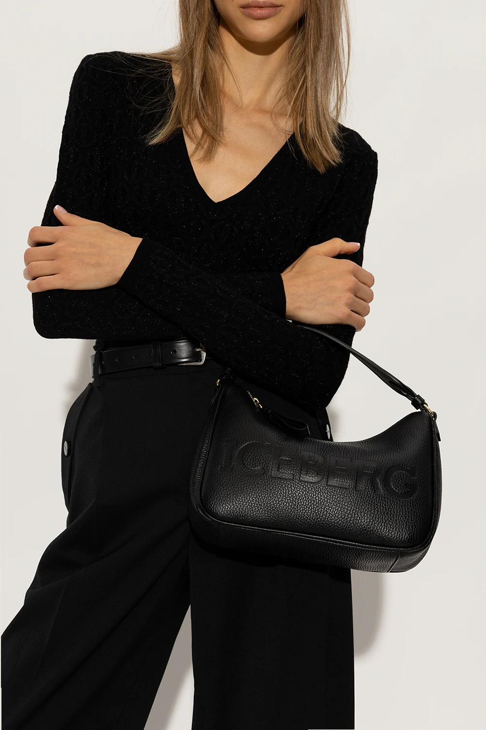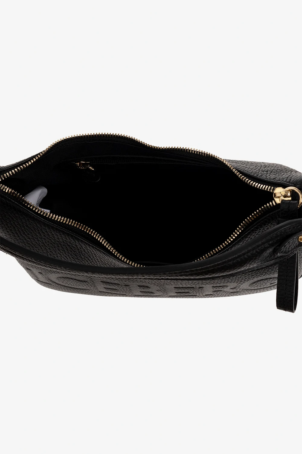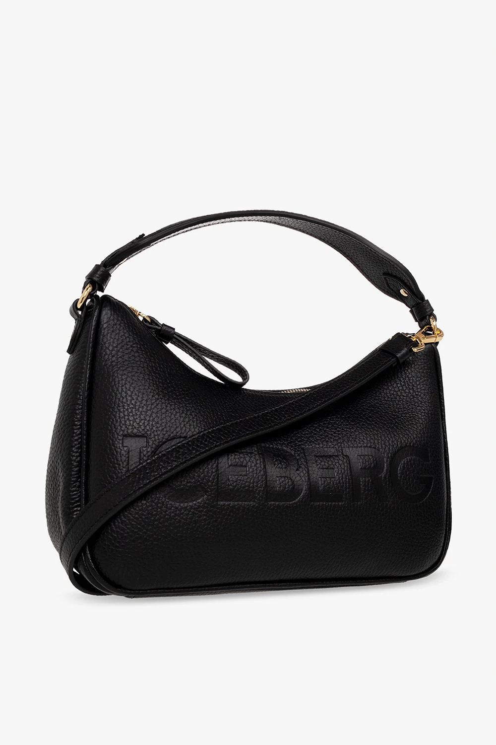 Black shoulder bag from Iceberg. Crafted from calf leather, this design features a zip fastening, an embossed logo, a detachable and adjustable shoulder strap, a half-round handle, gold-tone metal hardware and one internal compartment with a zip pocket.
