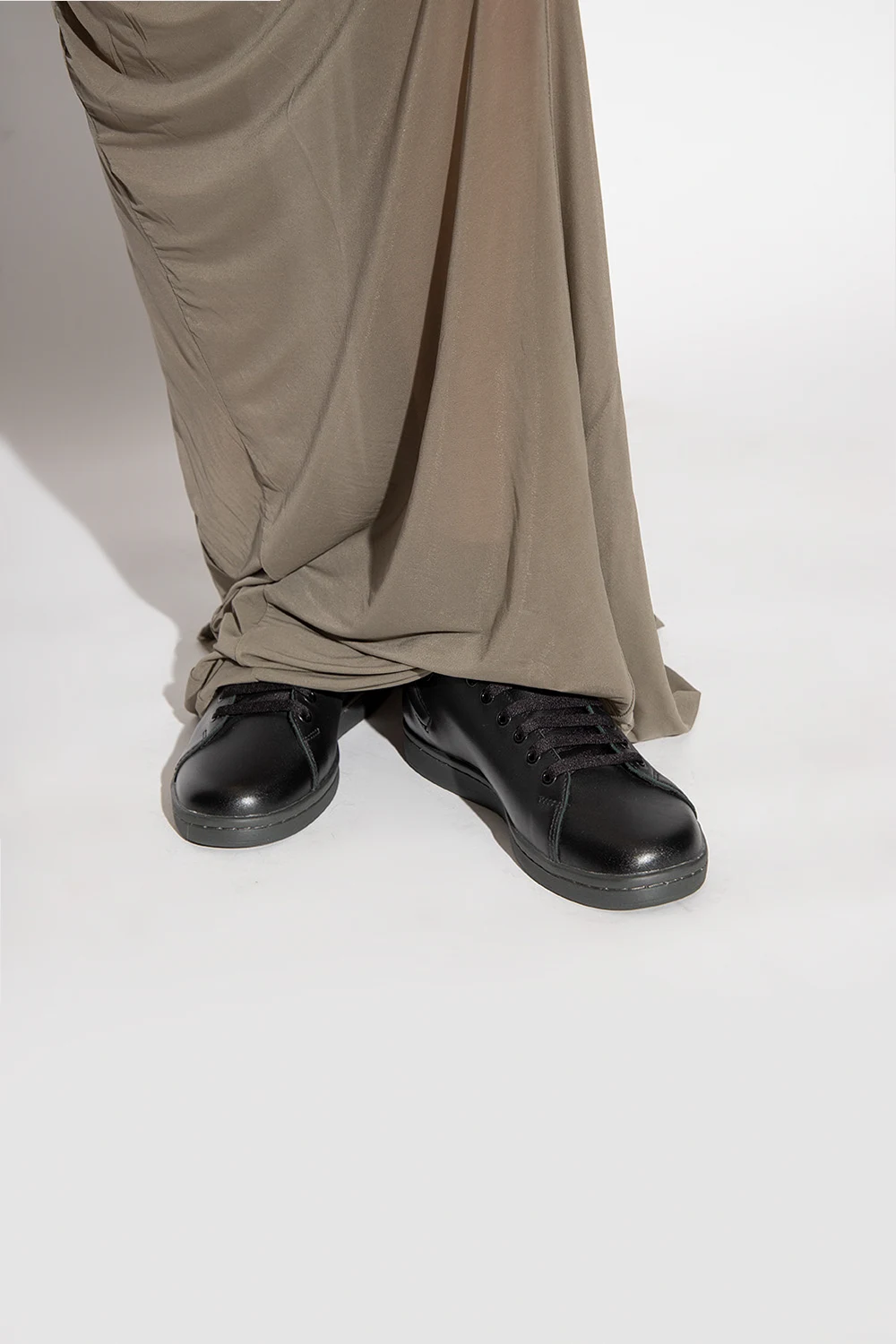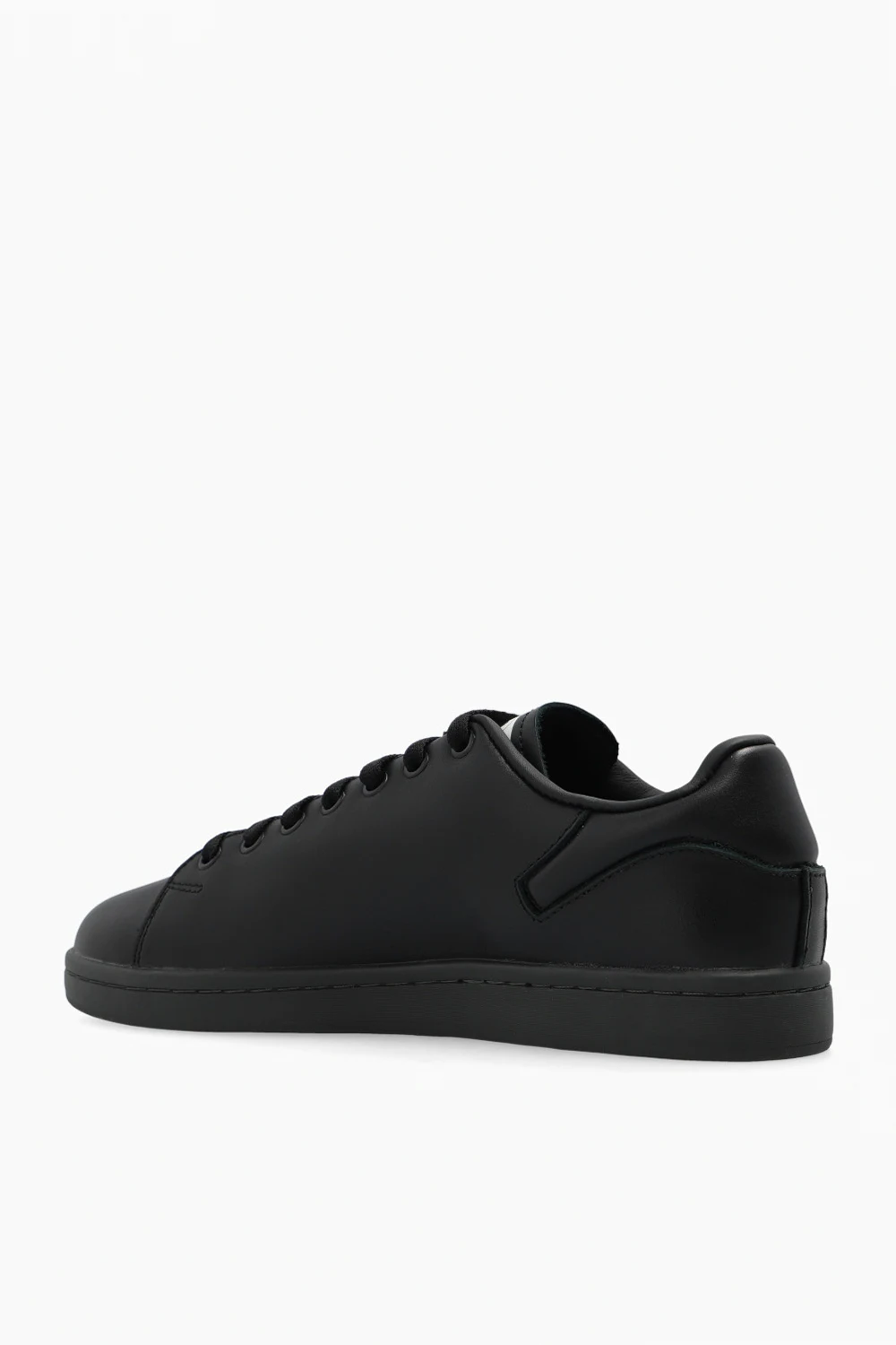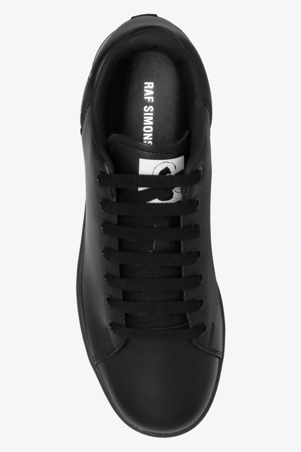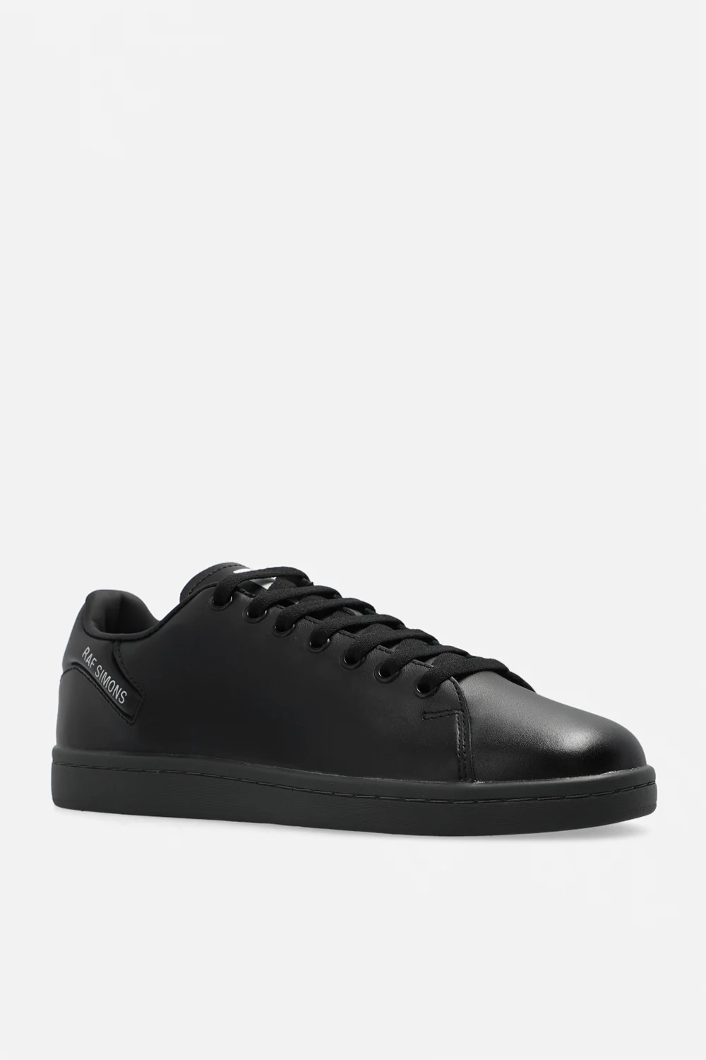 Black ‘Orion’ sneakers from Raf Simons. Crafted from leather, this lace-up model sits on a black rubber sole and features distressed detailing and an embossed silver-tone pattern.