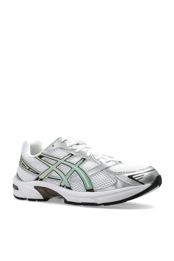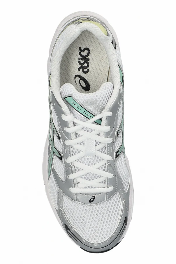 Das Obermaterial aus weißem Mesh garantiert außergewöhnliche Atmungsaktivität, während zahlreiche Overlays aus Kunststoff und dezent schimmerndem Material in silbernen und hellgrünen Tönen ein außergewöhnliches Muster erzeugen. Das seitliche Asics-Logo in harmonischen Grau-Grün-Nuancen sowie die Modellbezeichnung "GEL-1130" an der Ferse unterstreichen den anspruchsvollen Charakter des Produkts.