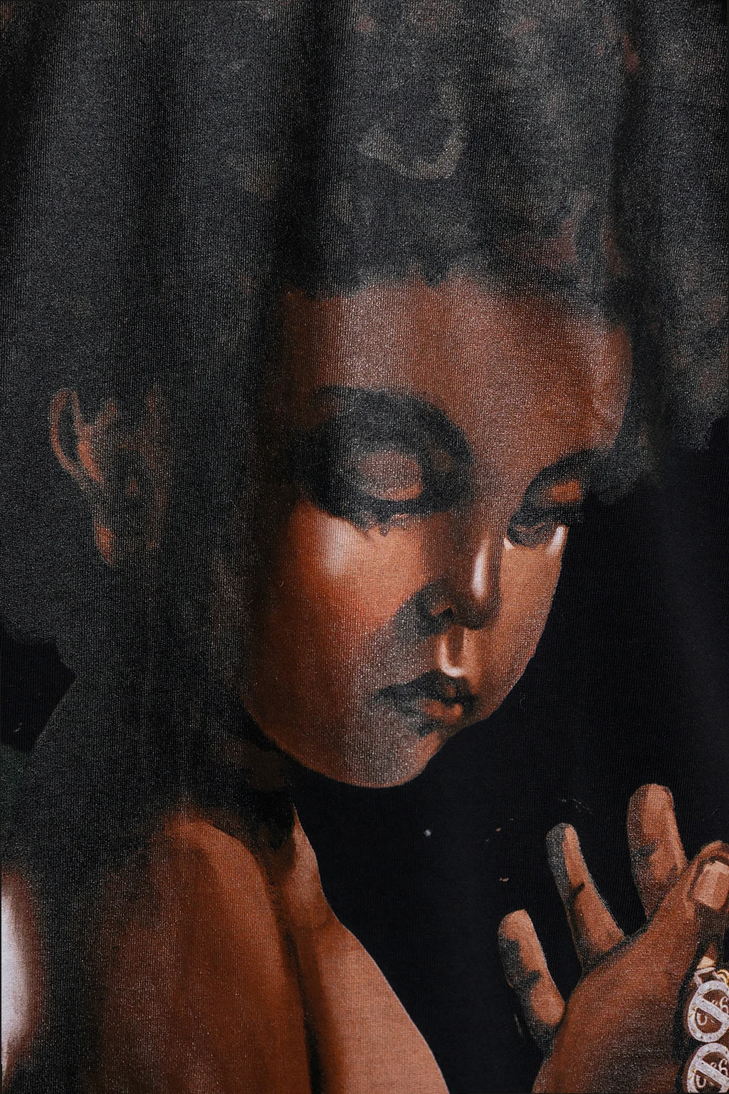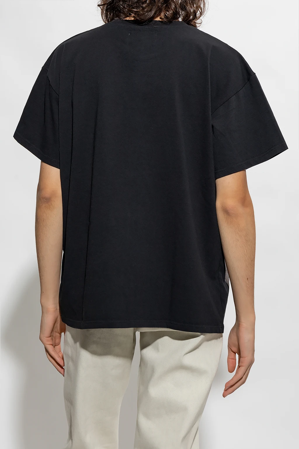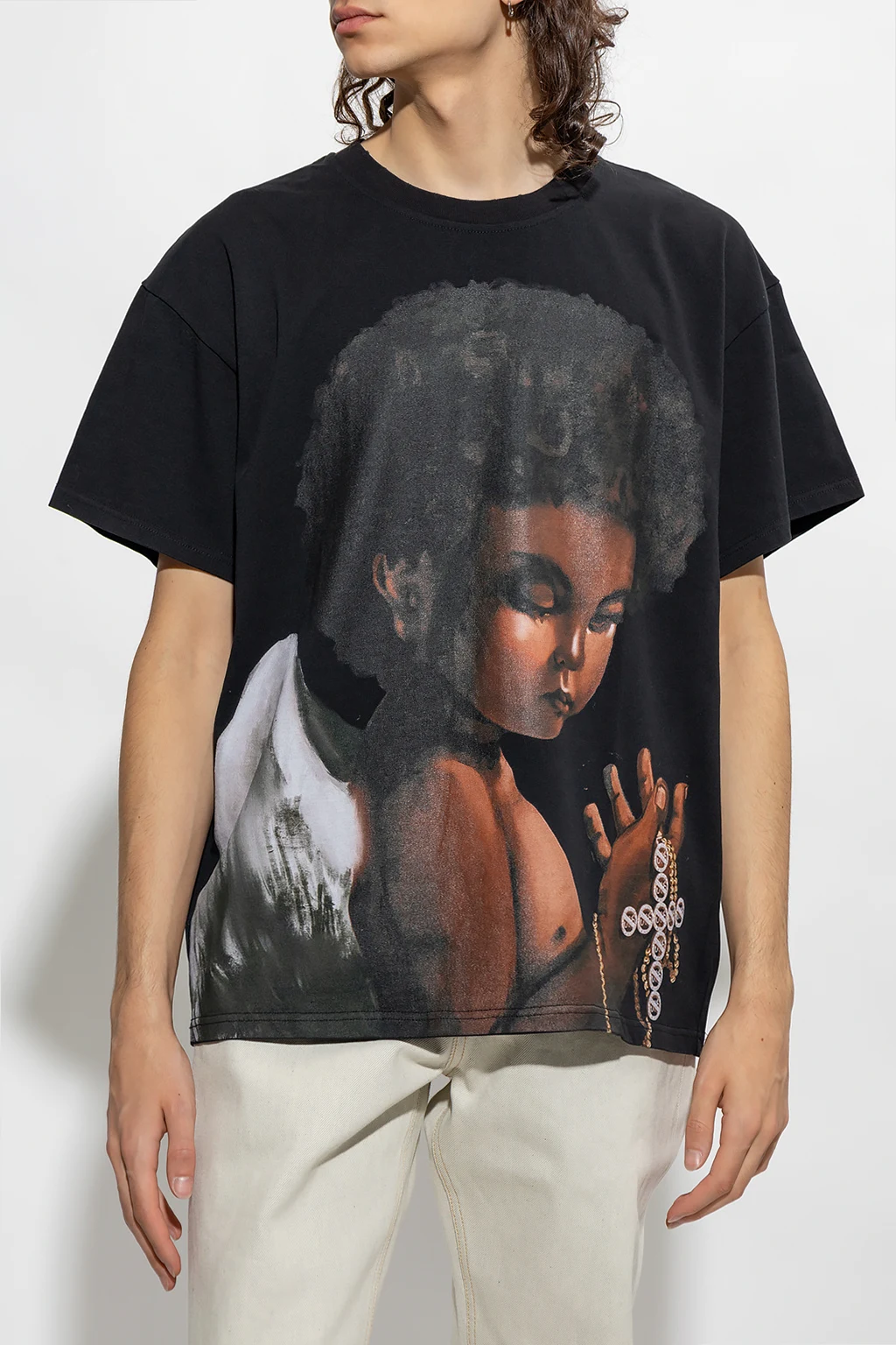 Black loose-fitting T-shirt from Who Decides War. Crafted from cotton, this short sleeve design features a multicolored cherub print and ribbed crew neck.