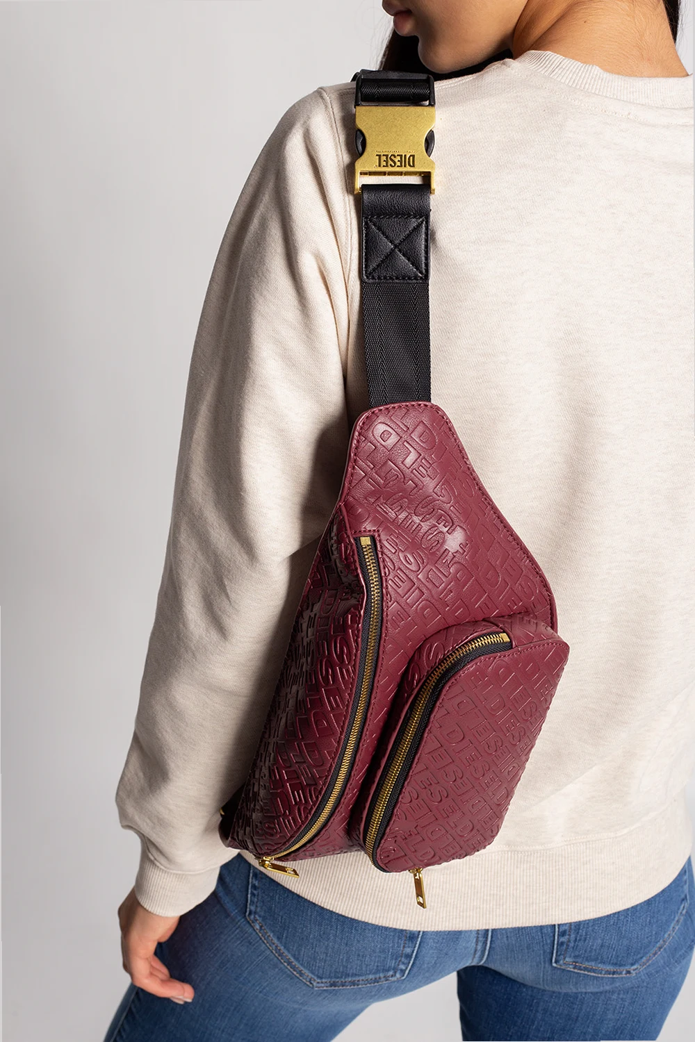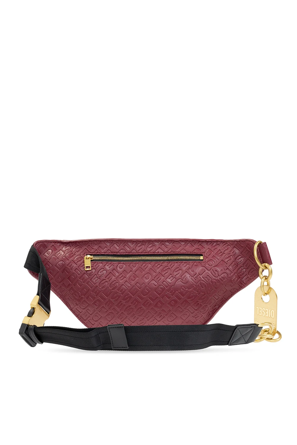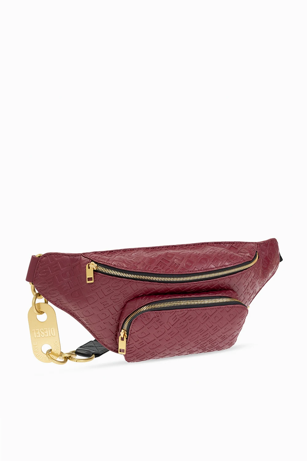 Maroon ‘Liberty’ belt bag from Diesel. Emblazoned with an embossed logo, this design secures with a zip and features two external zip pockets, an adjustable strap, gold-tone metal hardware and one internal compartment with a slip pocket.