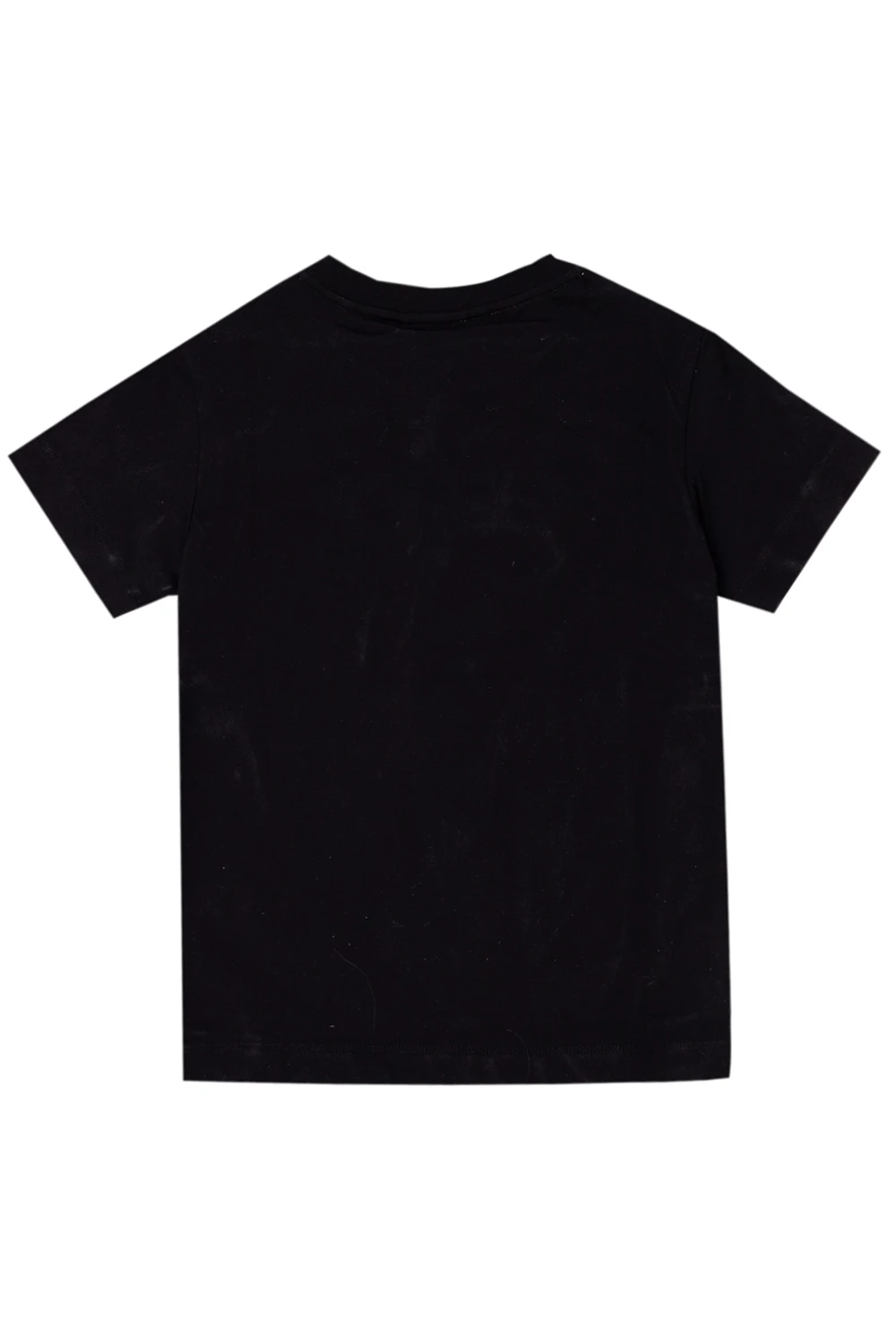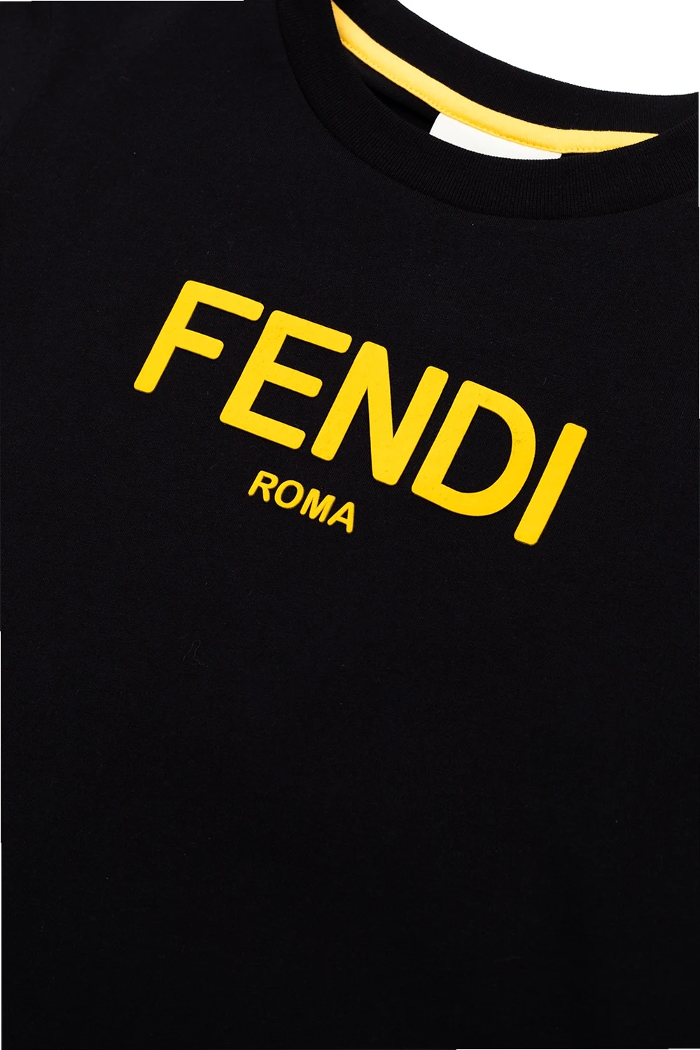 Black crewneck T-shirt from Fendi Kids. Crafted from cotton, this design is decorated with a yellow logo.