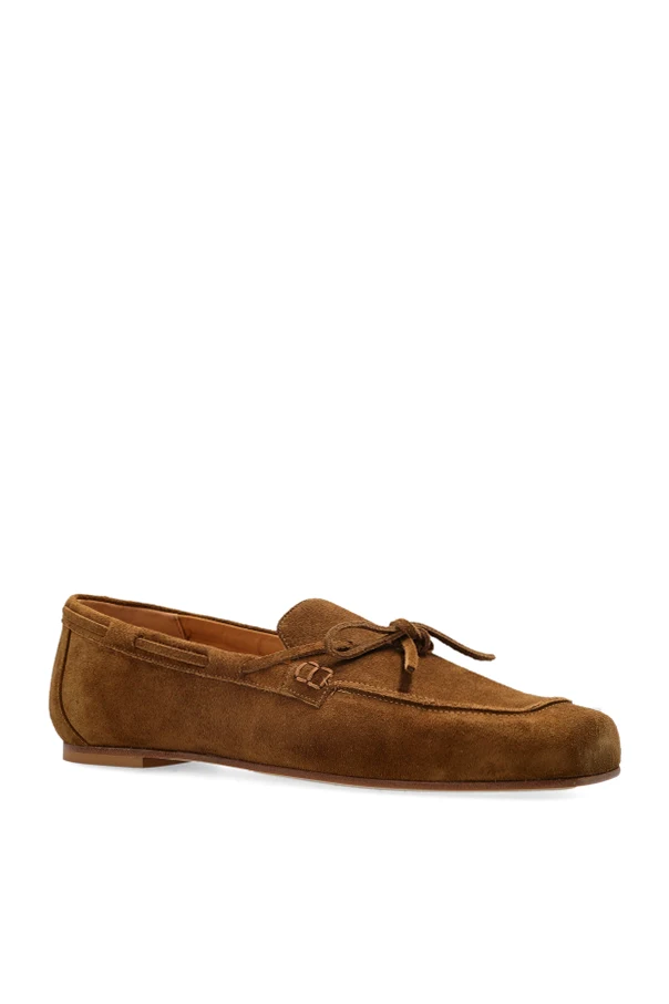 Eine zarte Schleife aus dem gleichen, weichen Veloursleder ziert die Schuhvorderseite und verleiht dem Modell Charme und Originalität. Die elegante Linienführung des Schafts wird durch eine subtile, dekorative Naht akzentuiert, während das gesamte Design auf einer niedrigen, flachen Sohle ruht, die höchsten Tragekomfort garantiert. Die schlanke Silhouette der Jasper-Schuhe macht sie zur perfekten Ergänzung für jede raffinierte Stilkomposition.