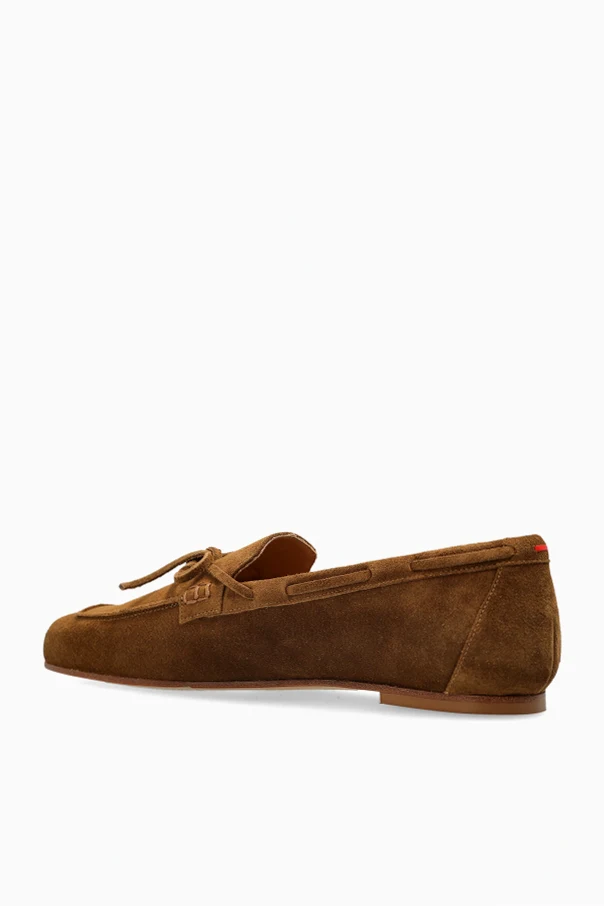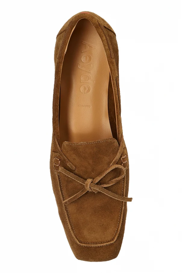 Lederschuhe „Jasper“ von Aeyde verkörpern die Quintessenz minimalistischer Eleganz. Die klassische Loaferform mit leicht verlängerten, eckigen Zehenpartien harmoniert perfekt mit dem niedrigen, dezenten Schaft. Der monochrome, braune Farbton des Veloursleders betont das luxuriöse Finish und die edle Qualität des verwendeten Materials.