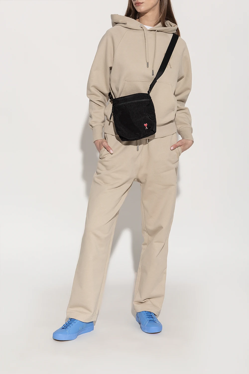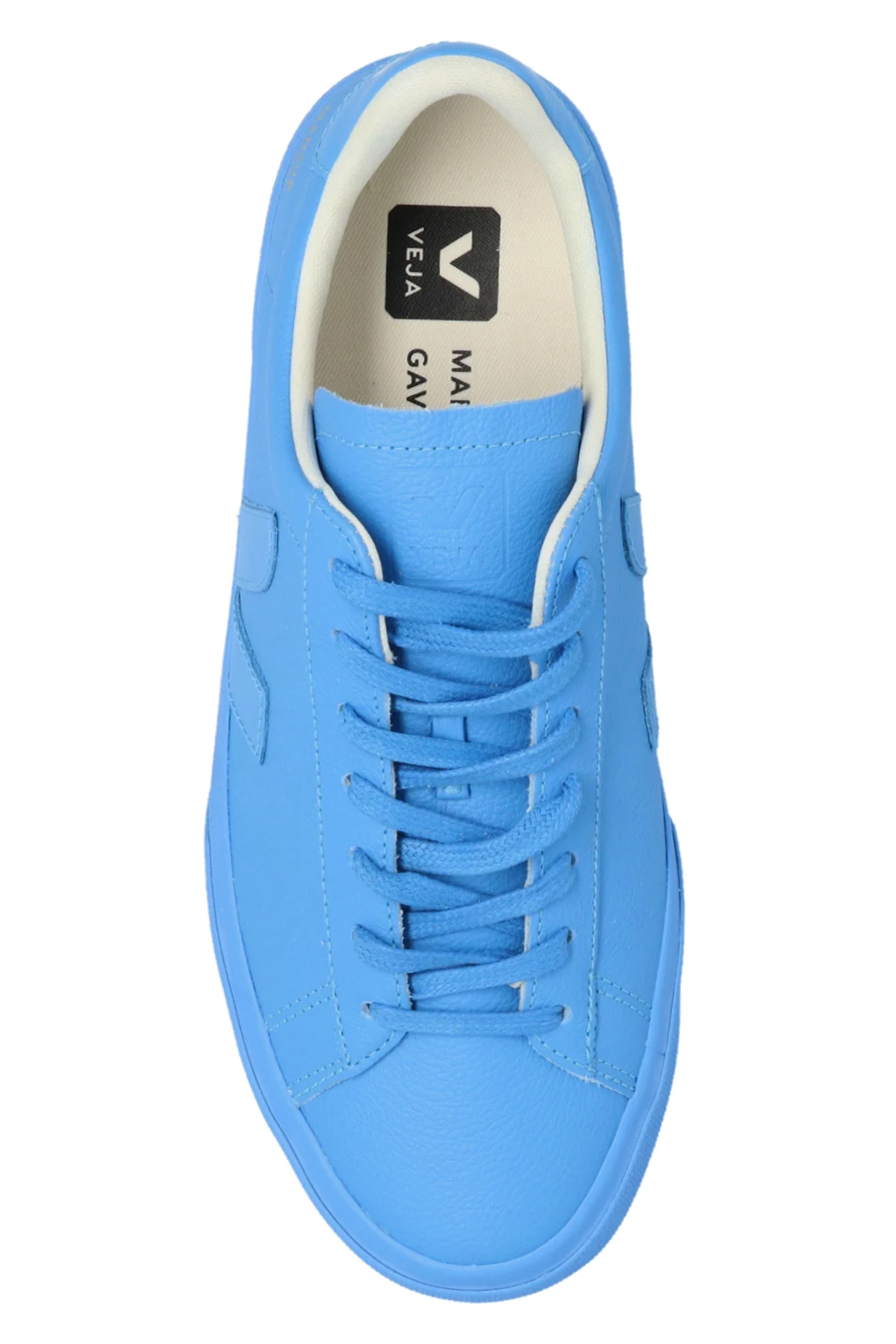 Blue ‘Campo’ sneakers from Veja x Mansur Gavriel. Crafted from leather, this lace-up model features an embossed logo on the tongue, the brand's signature patch on the side and organic cotton shoelaces. The mesh inner lining made from recycled materials was developed to acquire a better resistance to friction. The organic-sourced and recycled insole consists of sugar cane, Amazon rubber, organic cotton and recycled EVA. It is set on a beige and blue rubber sole made from organic and recycled materials