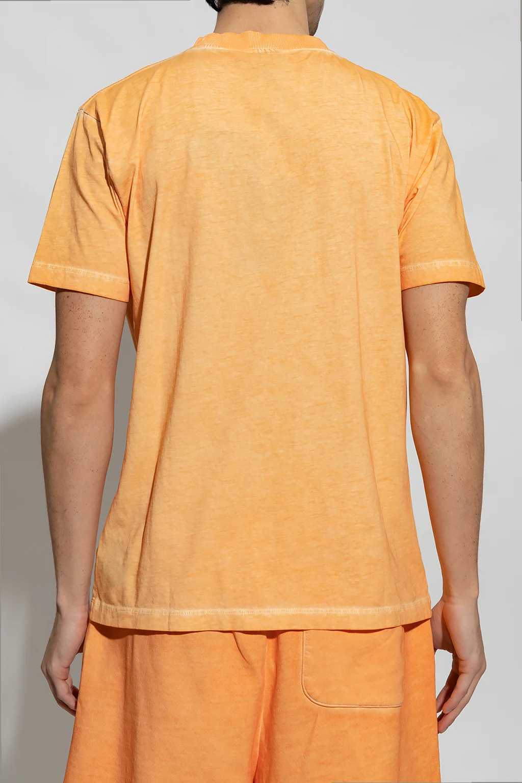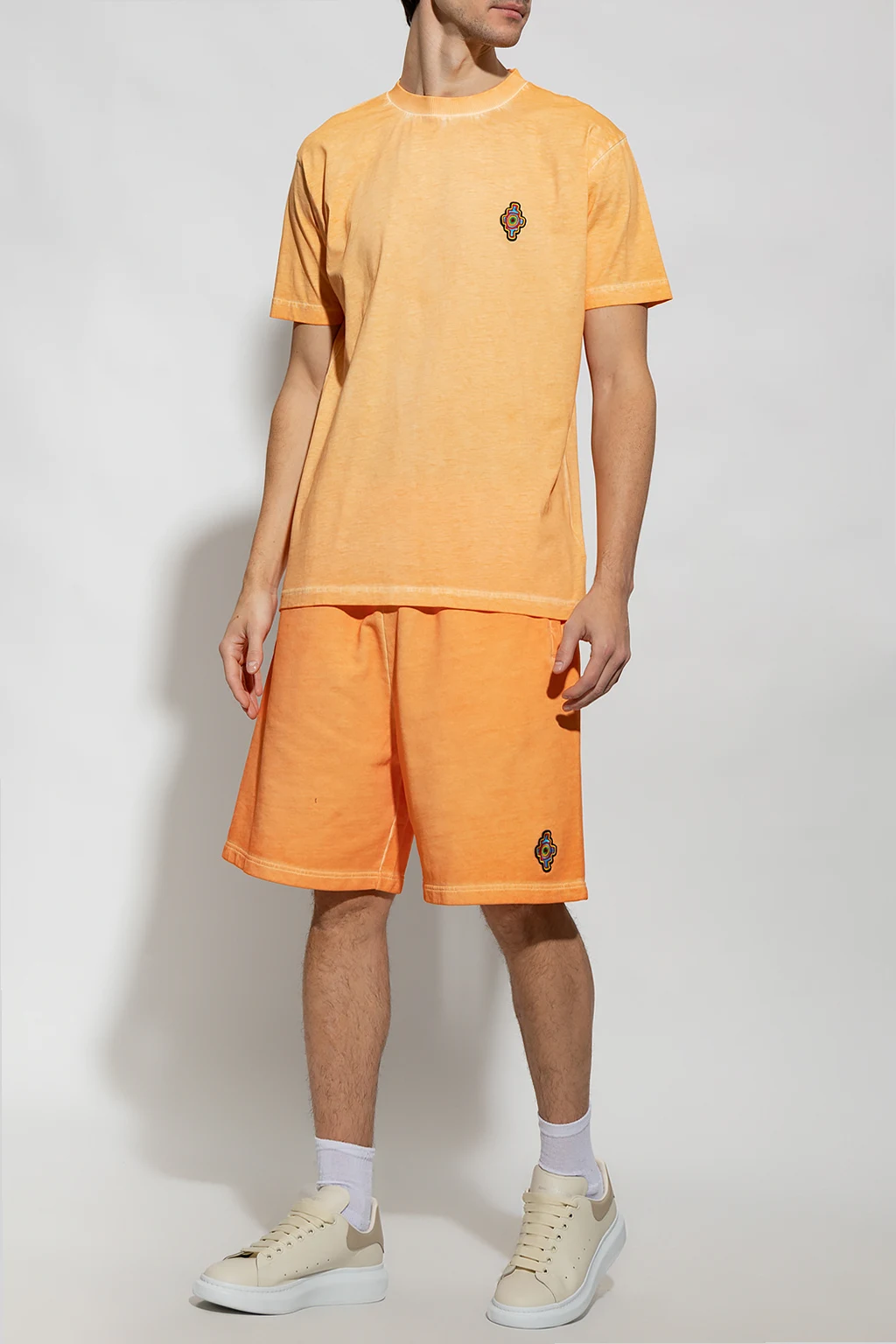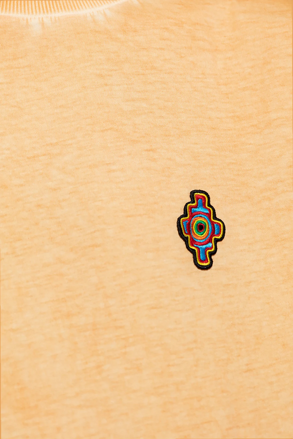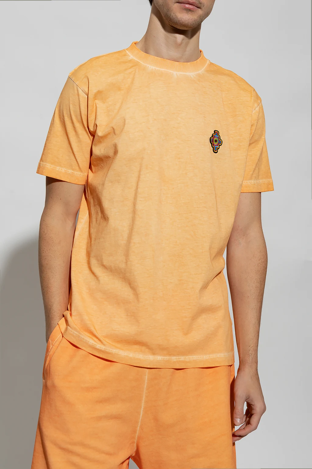 Orange T-shirt from Marcelo Burlon. Crafted from cotton, this short sleeve design features a multicolored logo patch and ribbed crew neck.