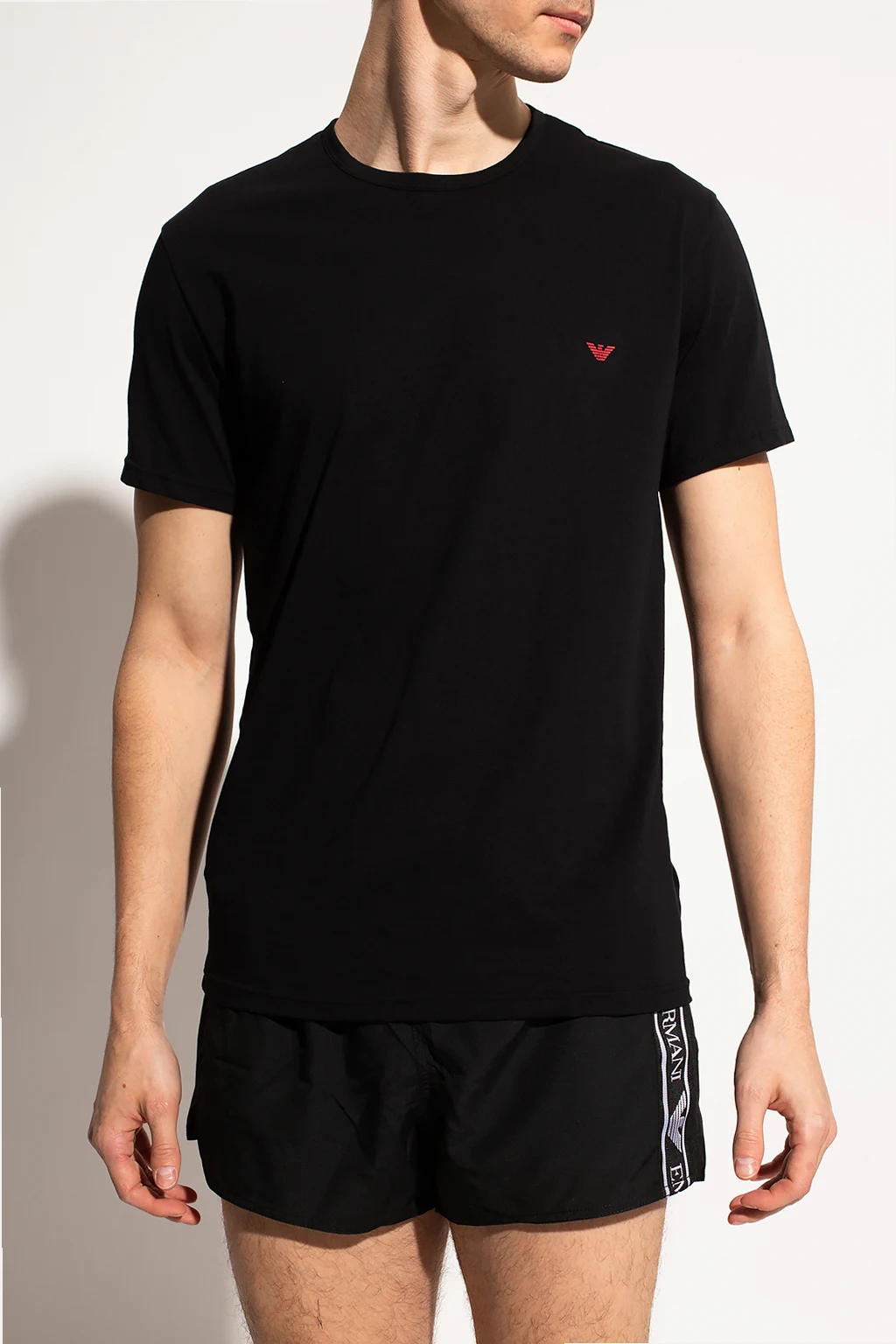 Red and black crewneck T-shirt two-pack from Emporio Armani. Made of cotton, they feature a graphic print with the brand's logo.