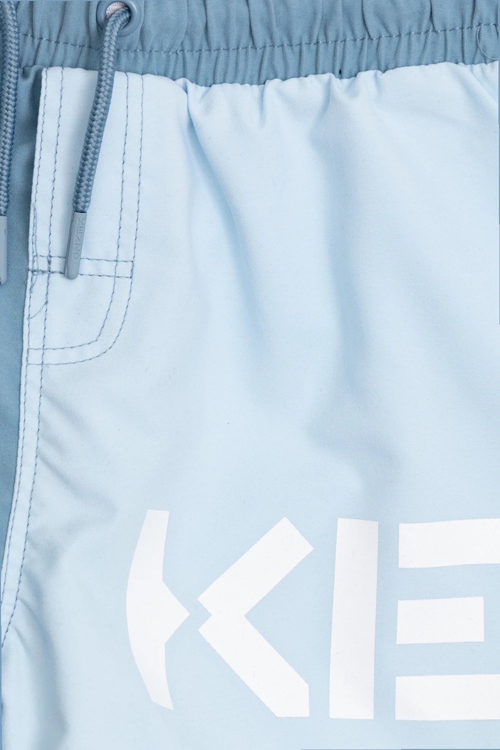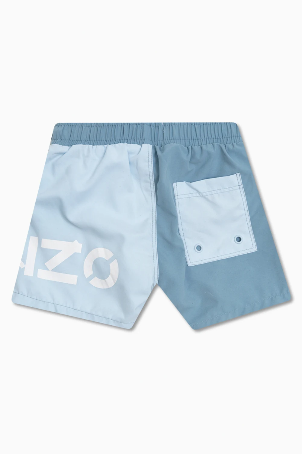 Blue swimming shorts from Kenzo Kids. Enriched by a white logo print, this pair features a drawstring waistband and a back slip pocket.