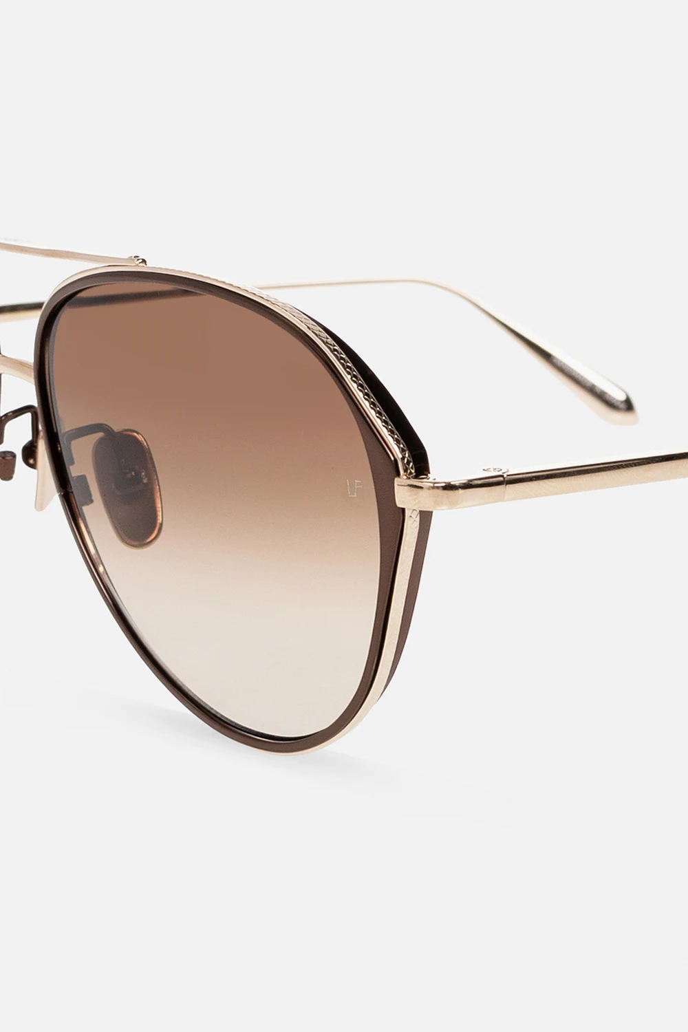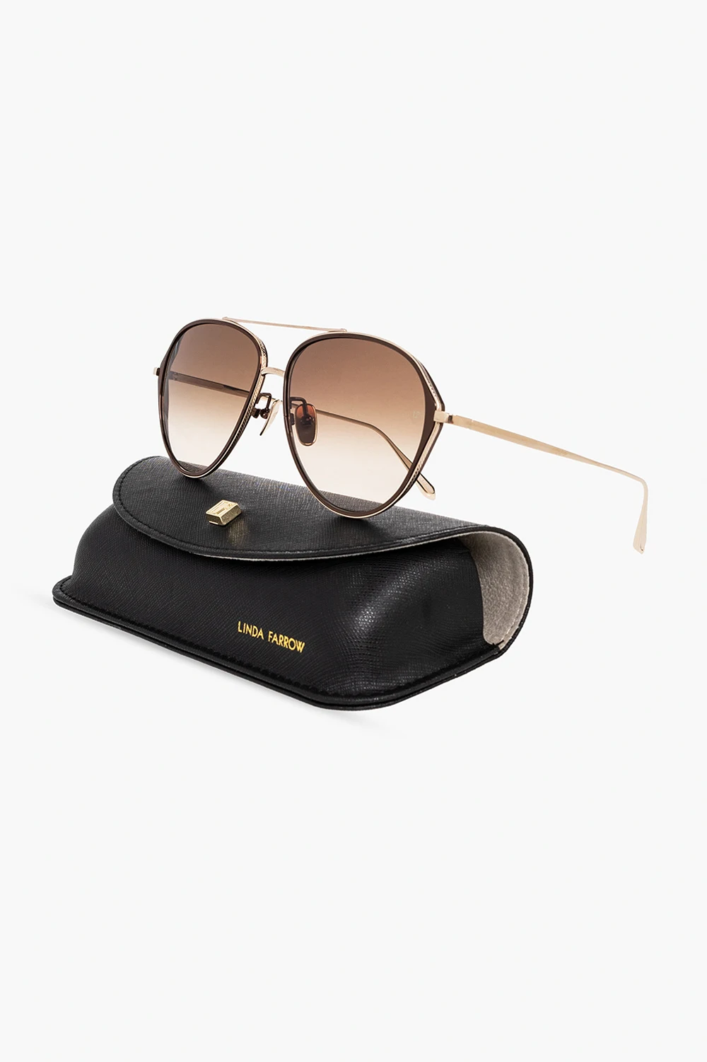 Gold-tone ‘Noa’ aviator sunglasses from Linda Farrow. With distinctively sculpted acetate frames plated with 22 carat gold, this model features a logo-engraved double bridge and adjustable nose pads for a tailored fit, thin temples and brown gradient lenses with ZEISS technology to ensure anti-glare and 100% UV protection. Handcrafted in Japan. Branded case included.