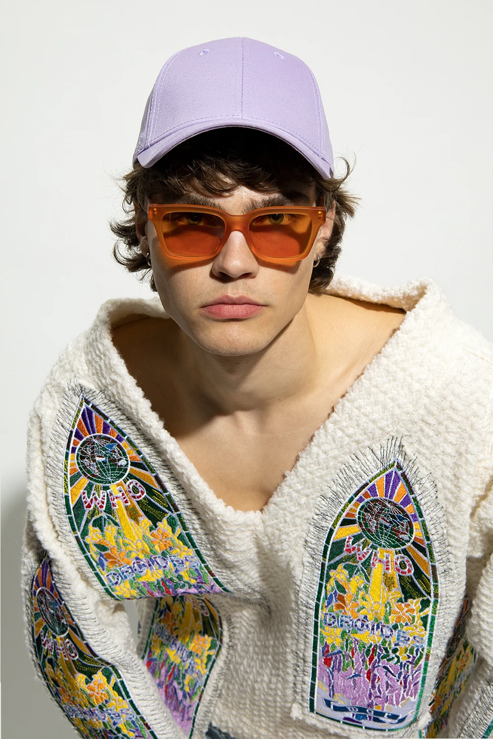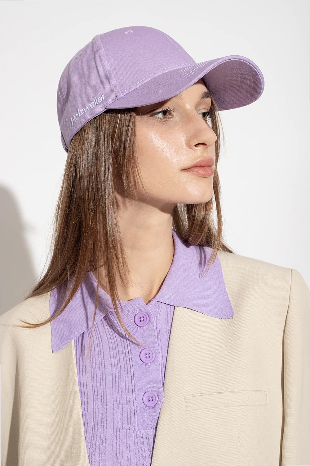 Purple baseball cap from Holzweiler. Embroidered with the brand's logo in white, this item features a buckle adjuster at the back.