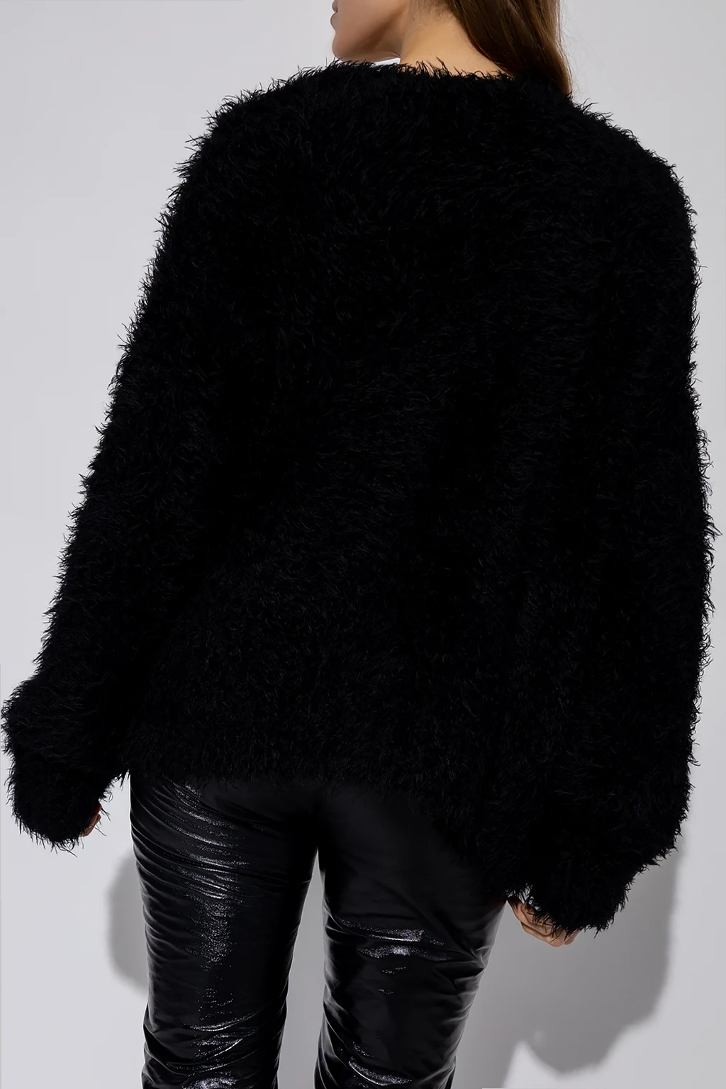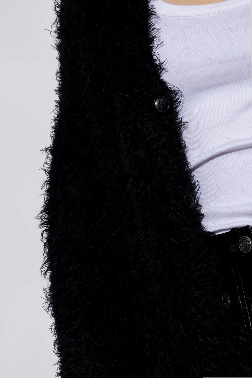 Black fluffy cardigan from Amiri. Crafted from mohair, this V-neck design features button fastenings, two slip pockets and long sleeves.
