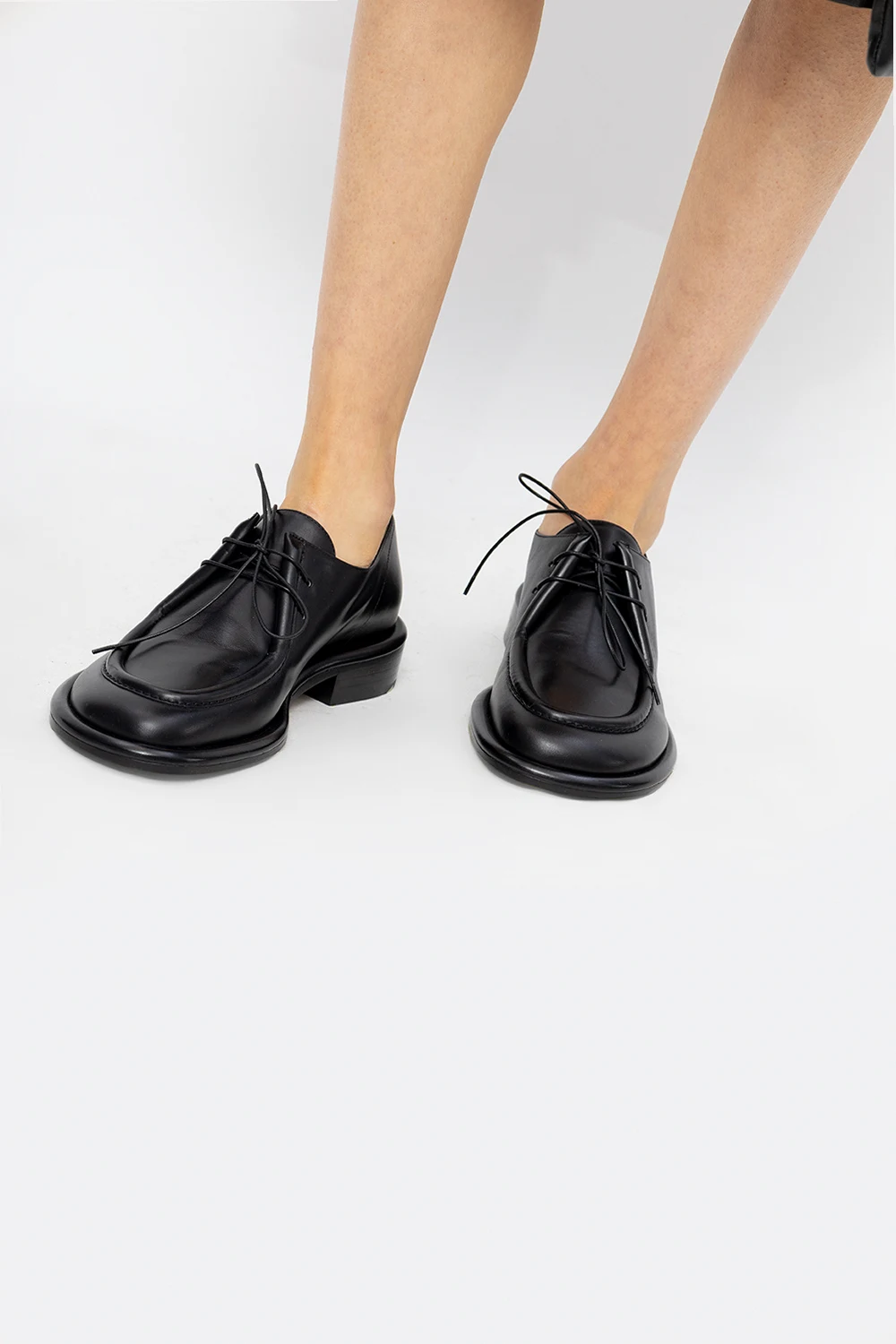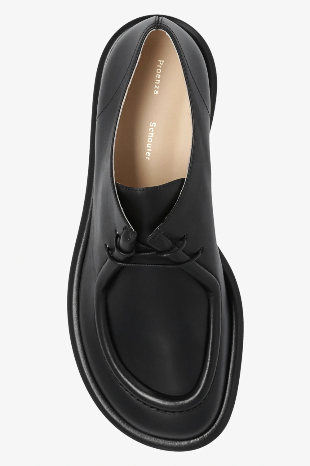 Black lace-up Derby shoes with a brown leather sole from Proenza Schouler. Made of leather.