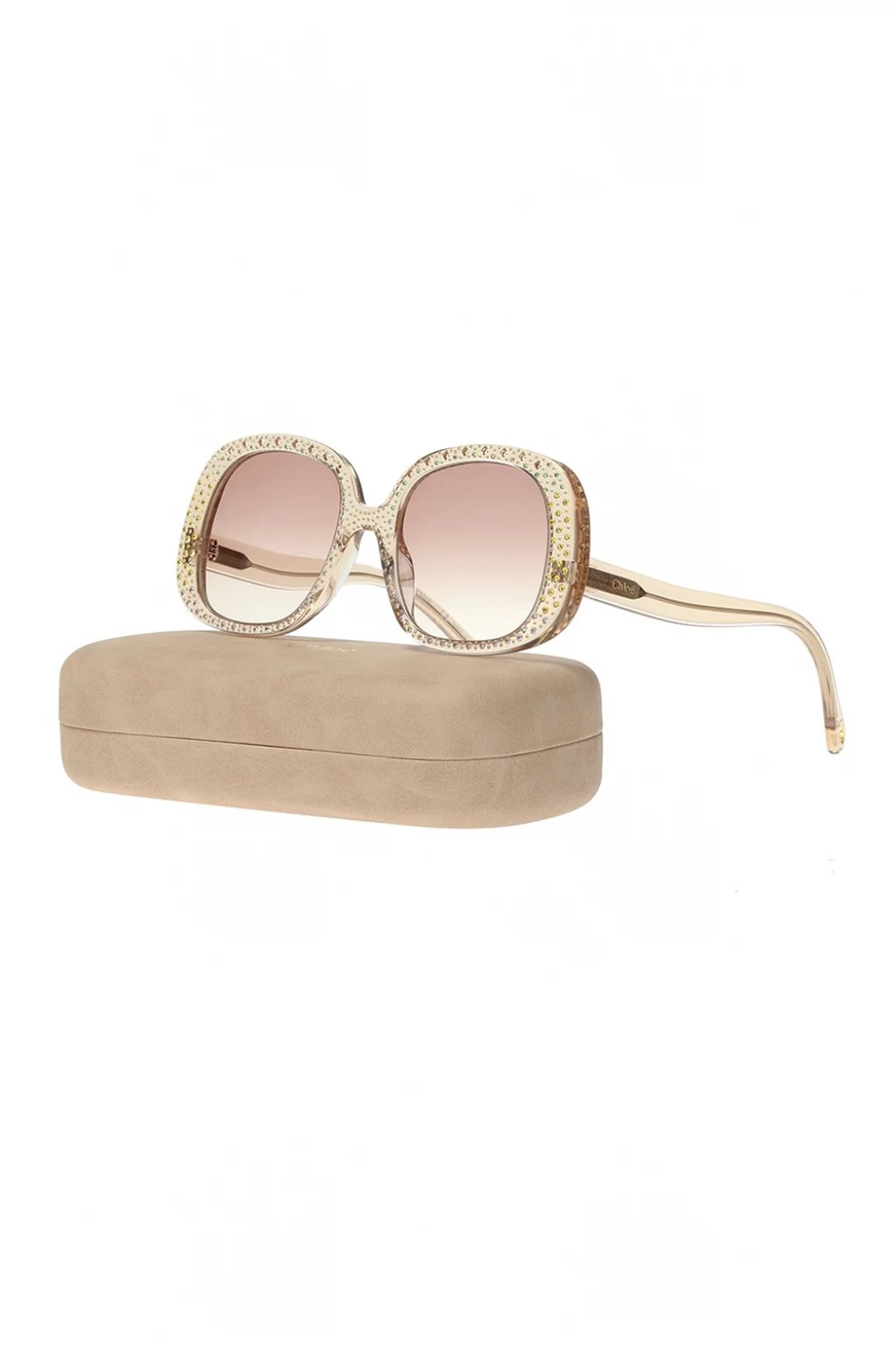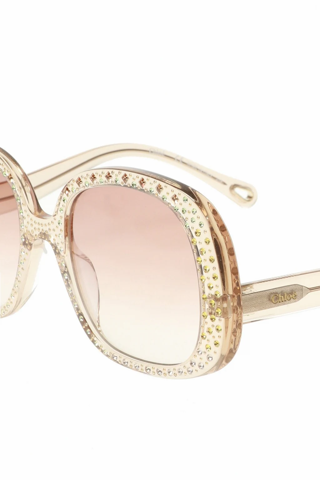 Translucent sunglasses from Chloé featuring branded temples, gold-tone and green embellishments and certificated brown lenses to ensure 100% UVA/UVB protection.