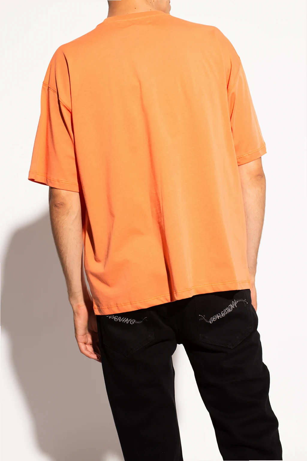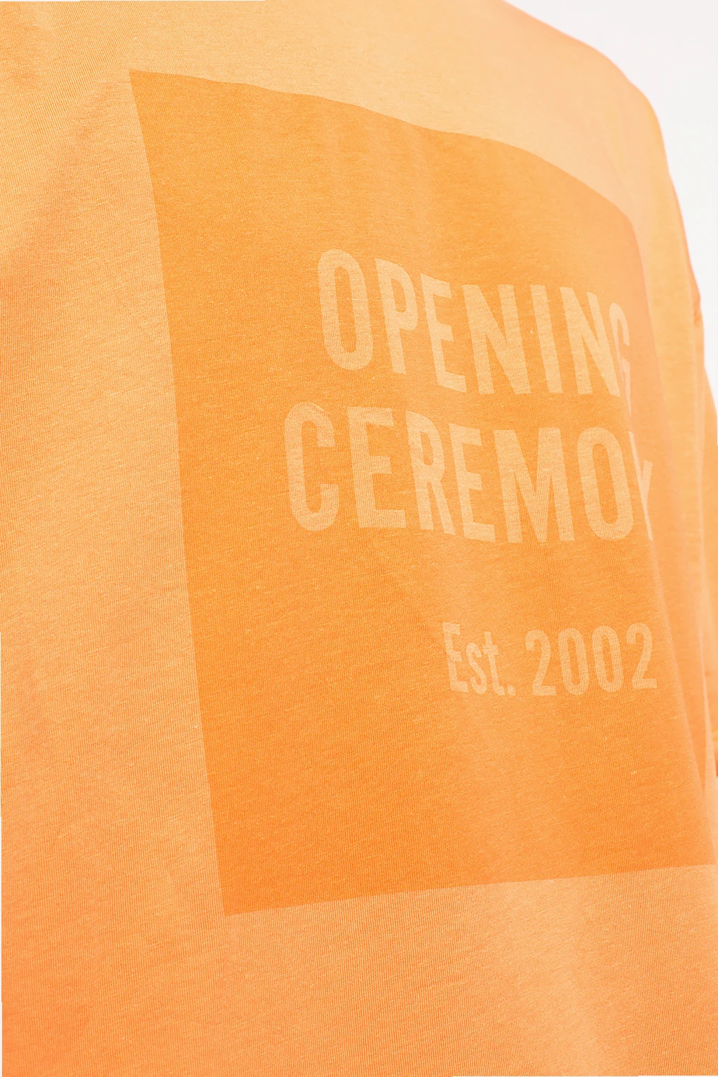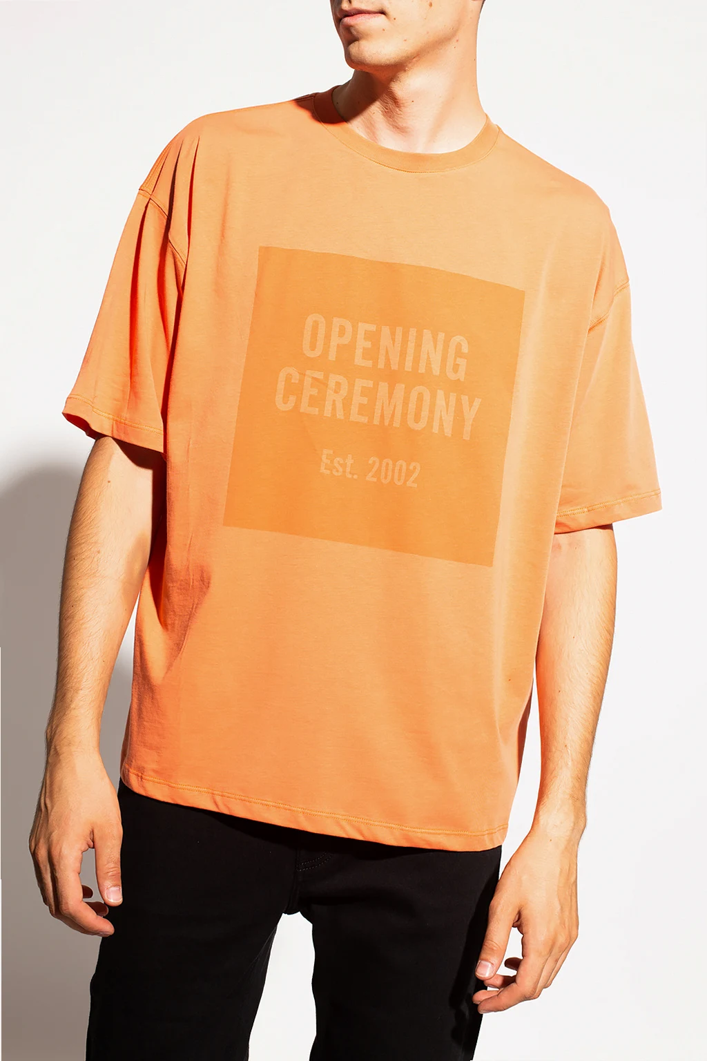 Orange crewneck T-shirt from Opening Ceremony. Crafted from cotton, this garment features a logo print and ribbed trims at the neck, hem and cuffs.