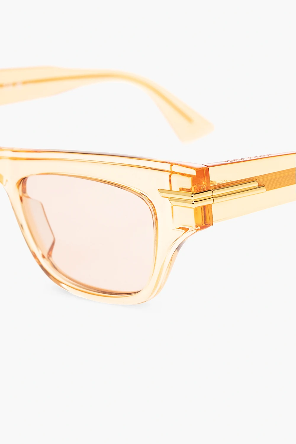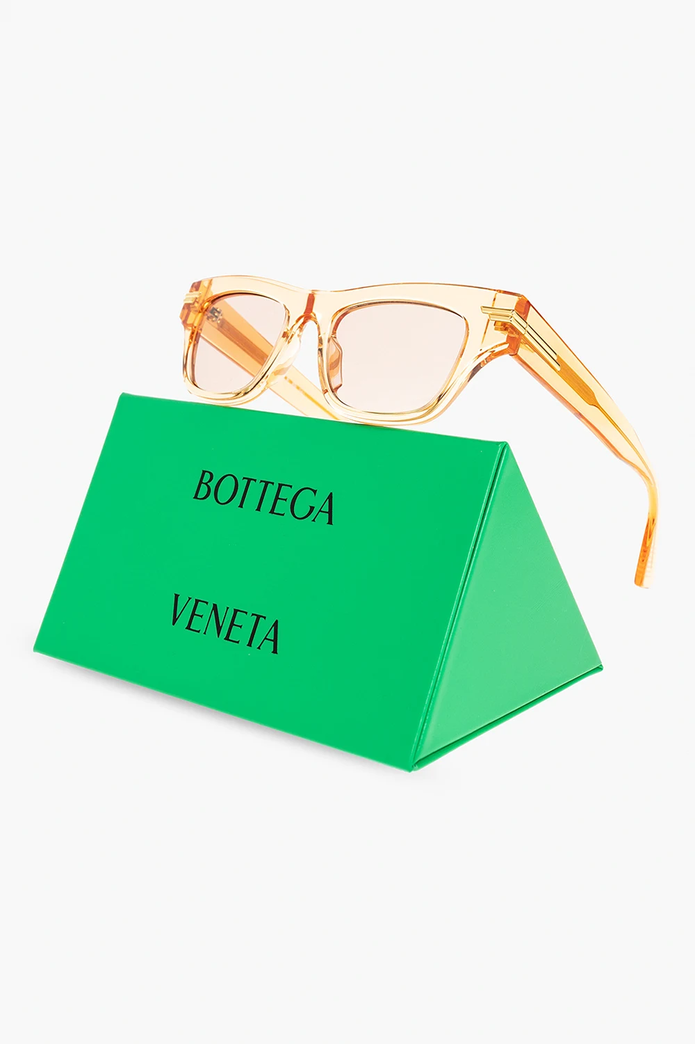 Orange ‘Mitre’ sunglasses from Bottega Veneta. Decorated with a logo detail, this pair features black lenses with 100% with UV protection. Comes with a case.