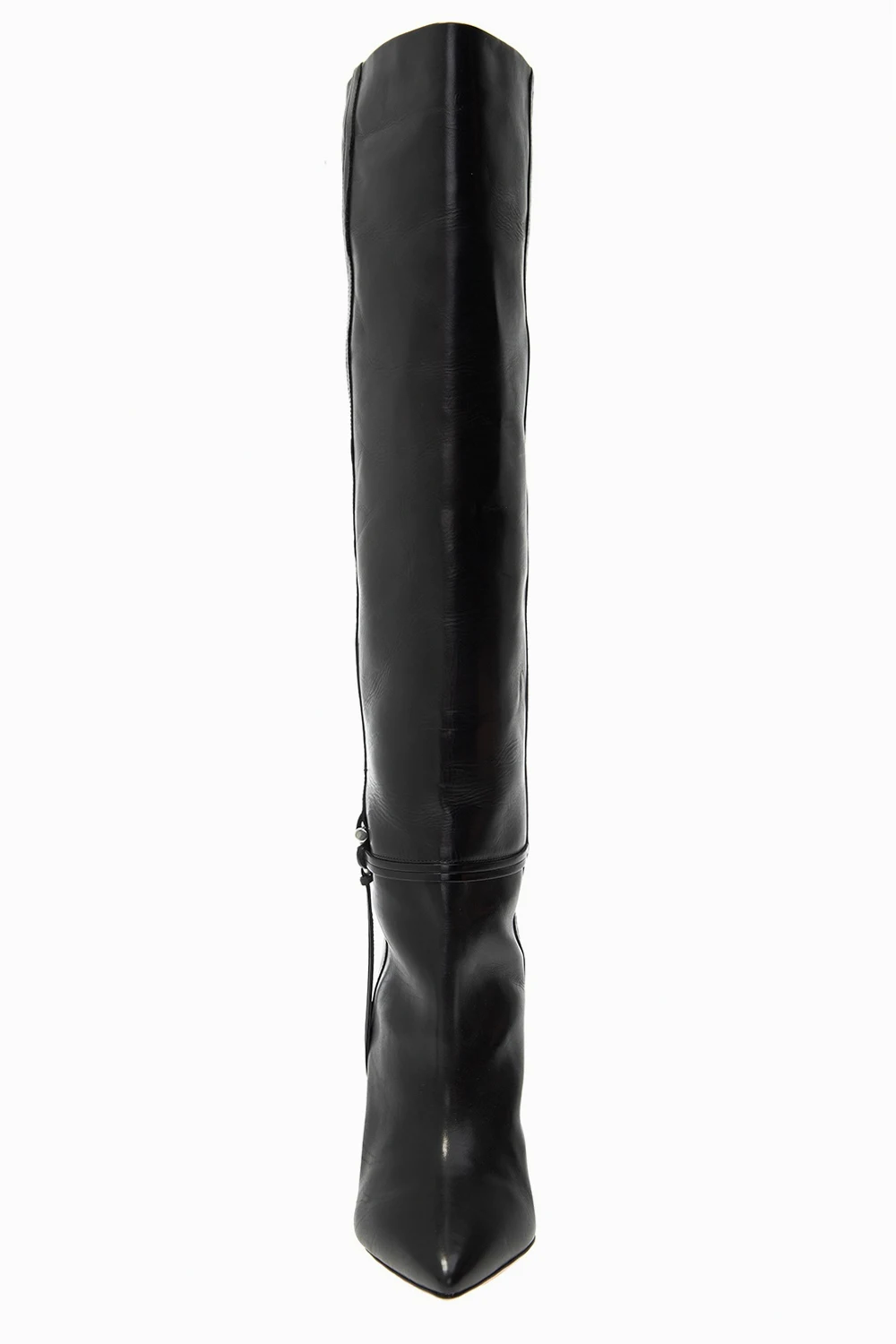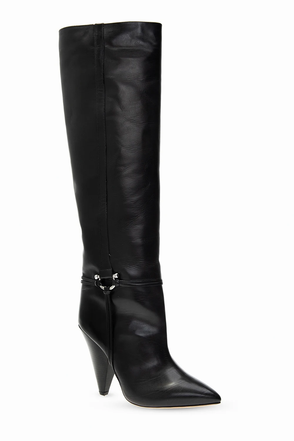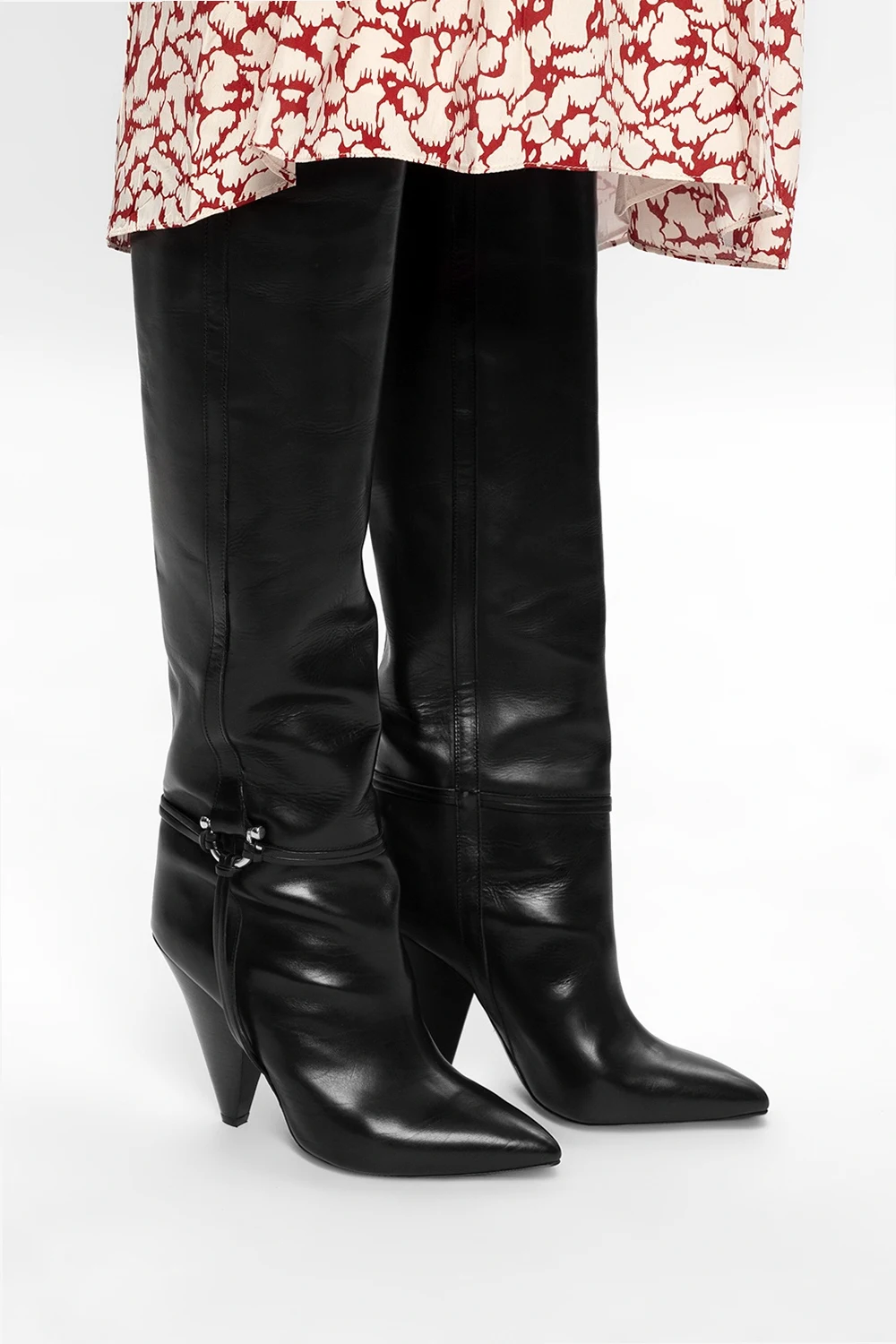 Black ‘Lazu’ boots from Isabel Marant. Set on a brown leather sole, this slip-on design is enriched with straps and a decorative appliqué in silver-tone.