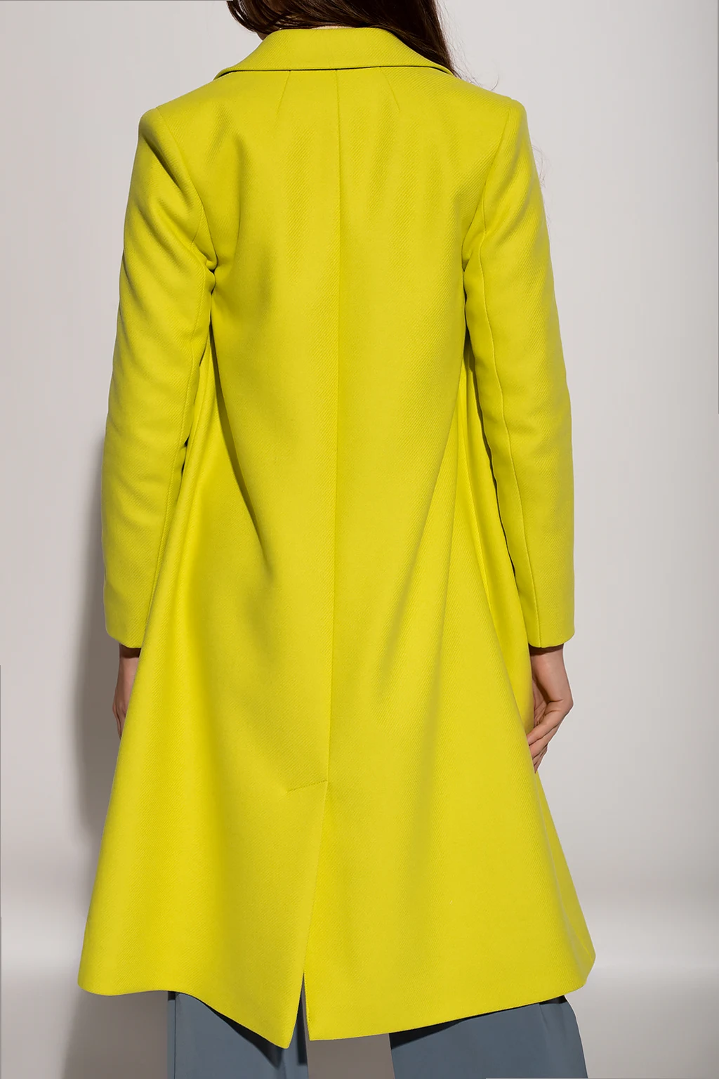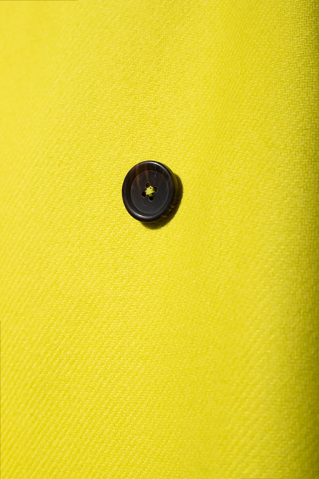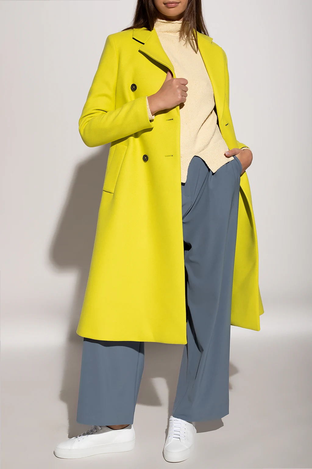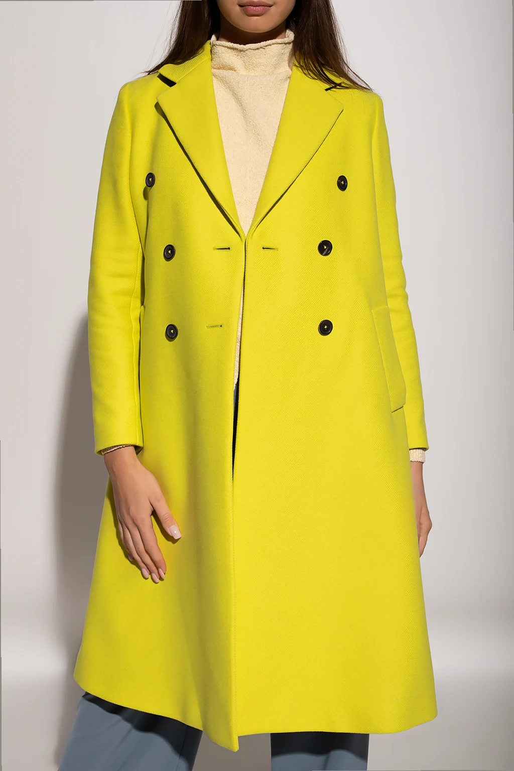 Neon yellow double-breasted coat from Paul Smith. Crafted from a wool and cashmere blend, this garment features button fastenings, notch lapels, two front pockets and a single rear vent
