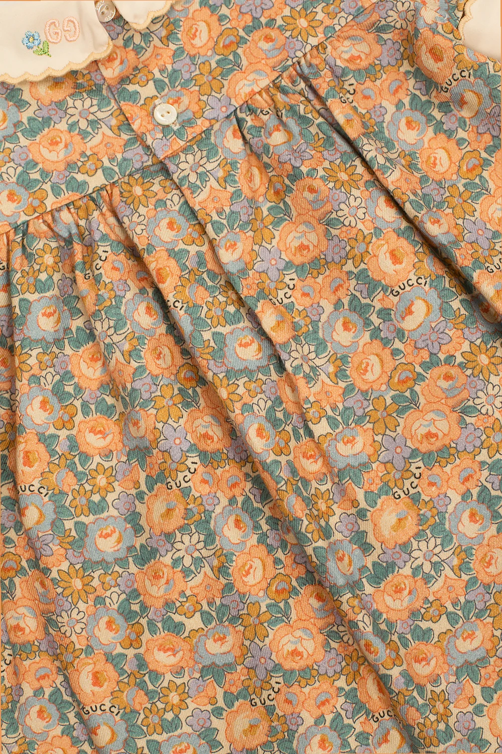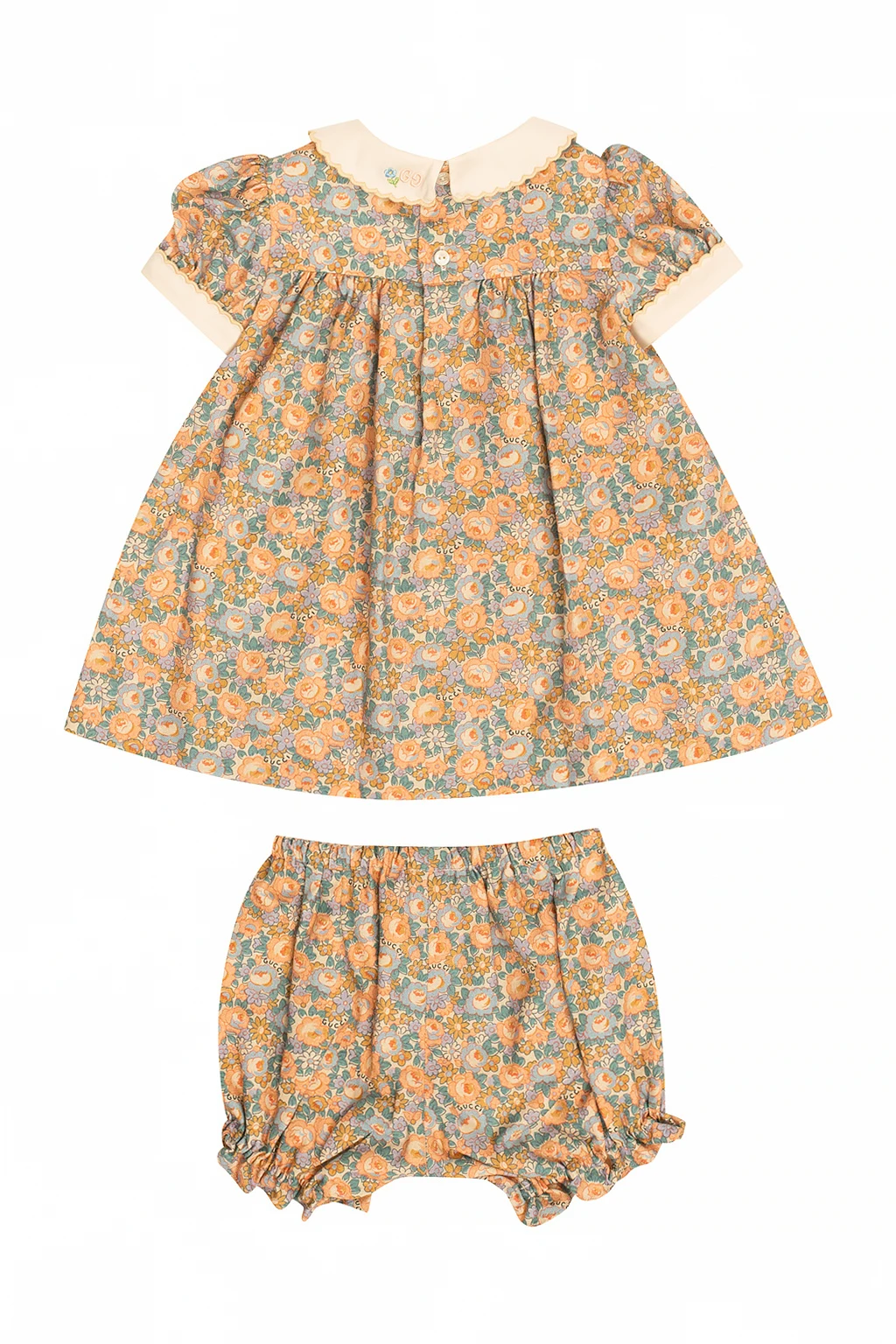 Multicolored dress and shorts set from Gucci Kids. Crafted from a cotton and wool blend, this design features a floral pattern and button fastenings at the back.