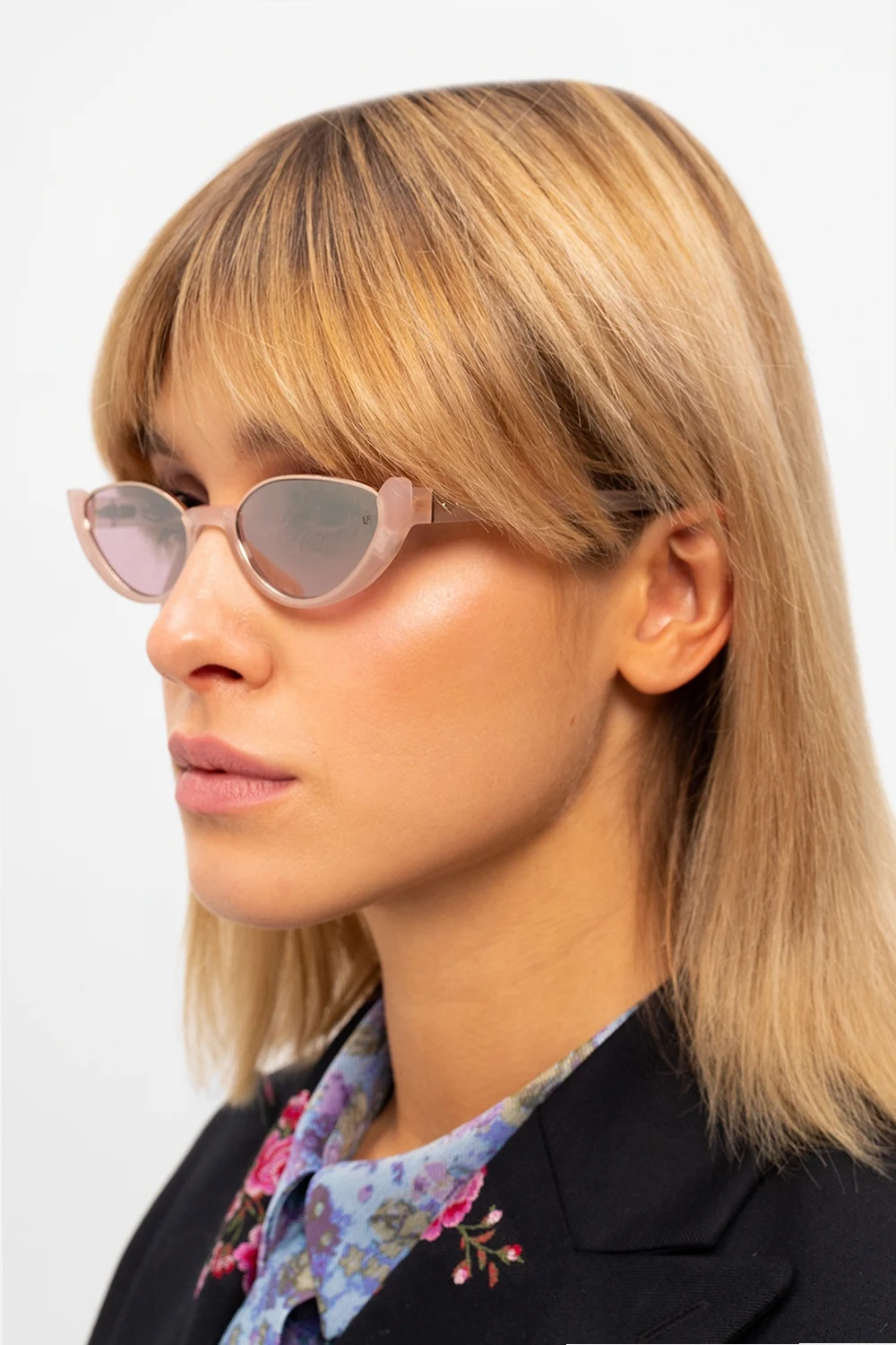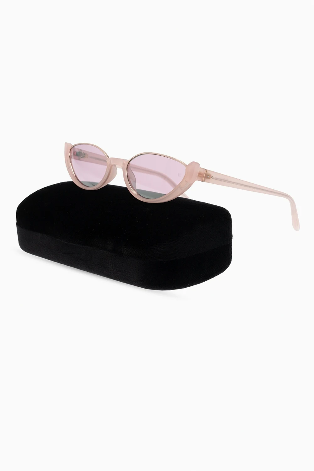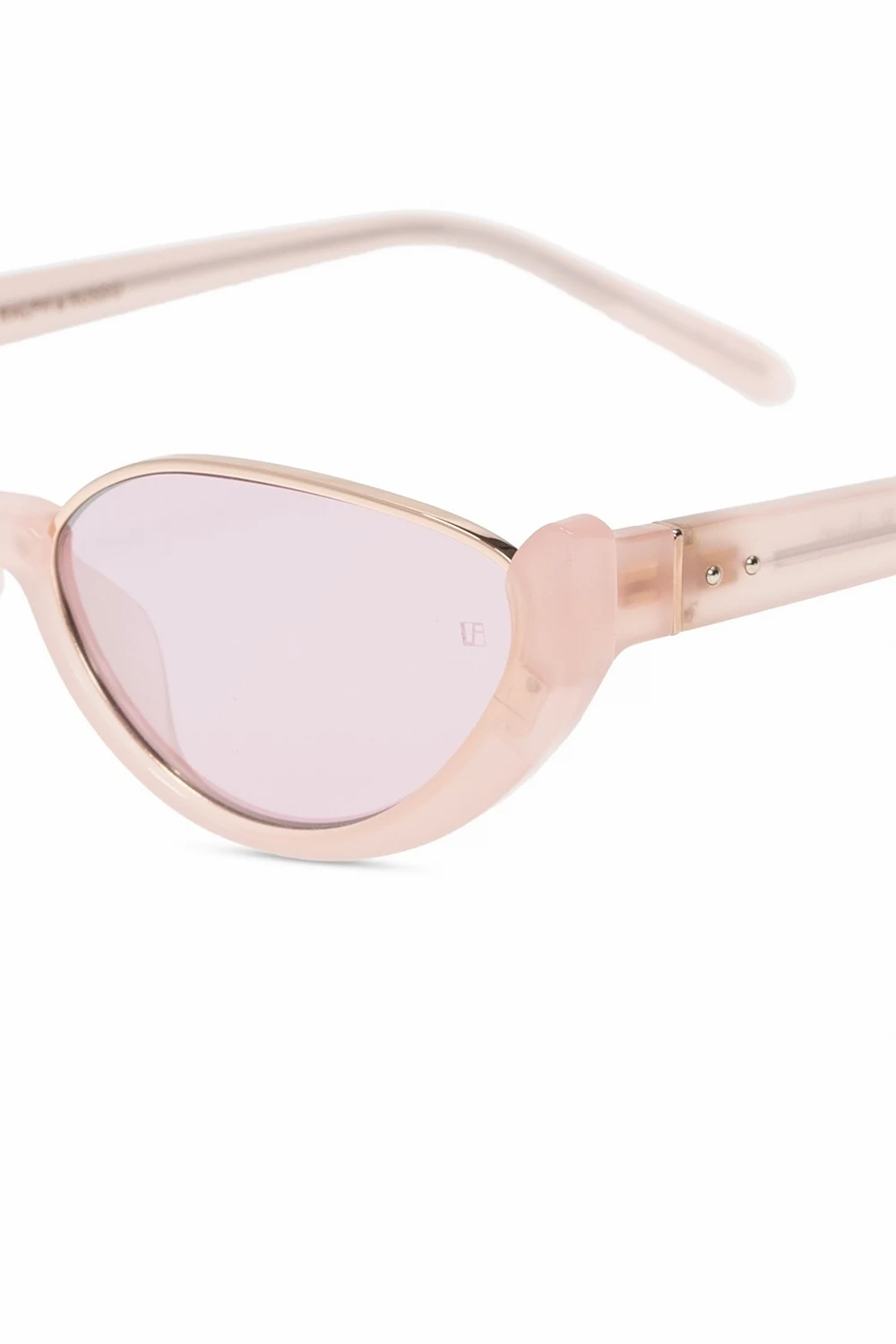 Light pink sunglasses from Linda Farrow x Ralph & Russo. Crafted from metal and acetate, this item comes with an included protective case and features gold-tone metal fittings and certified purple lenses which ensure 100% UVA/UVB protection.