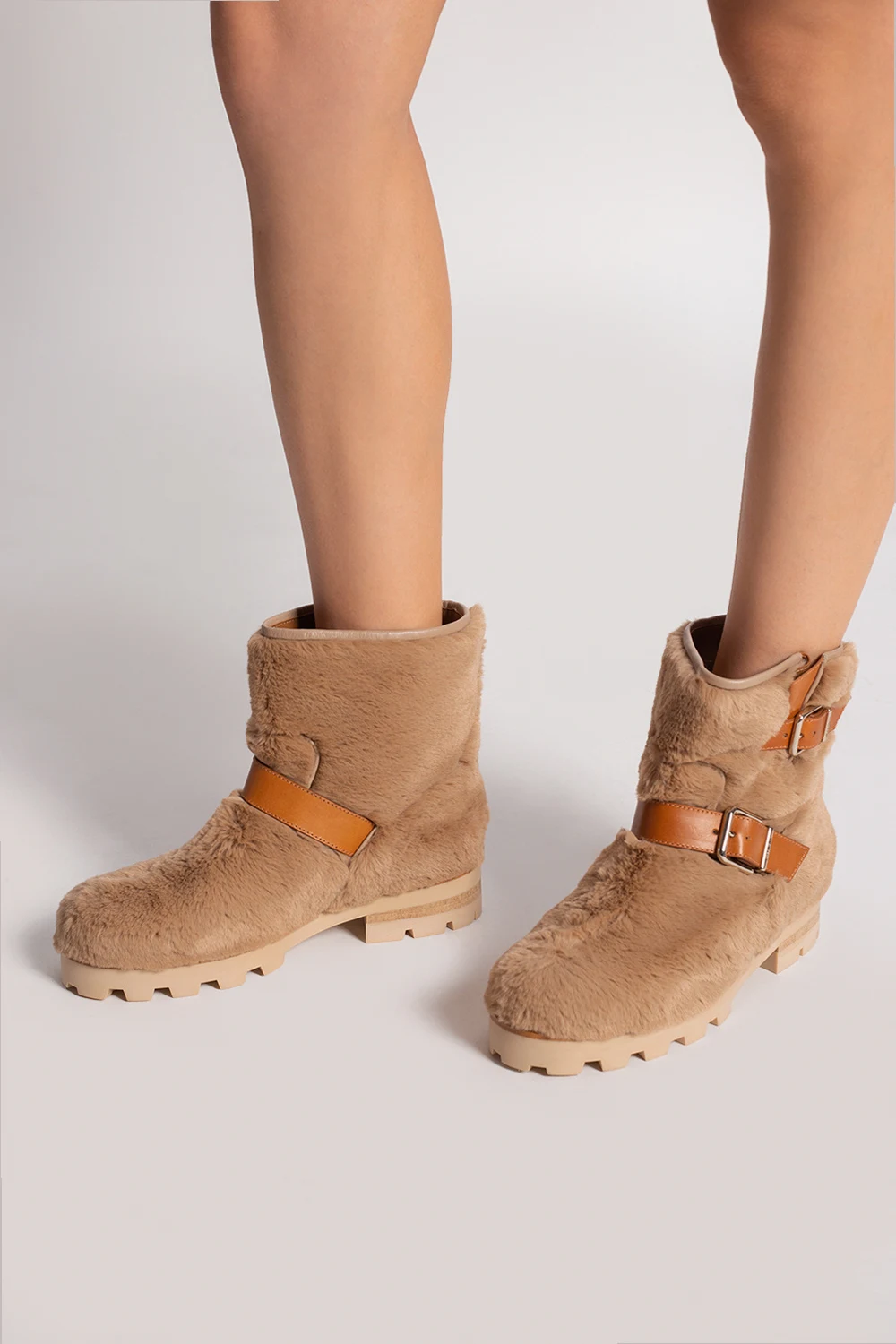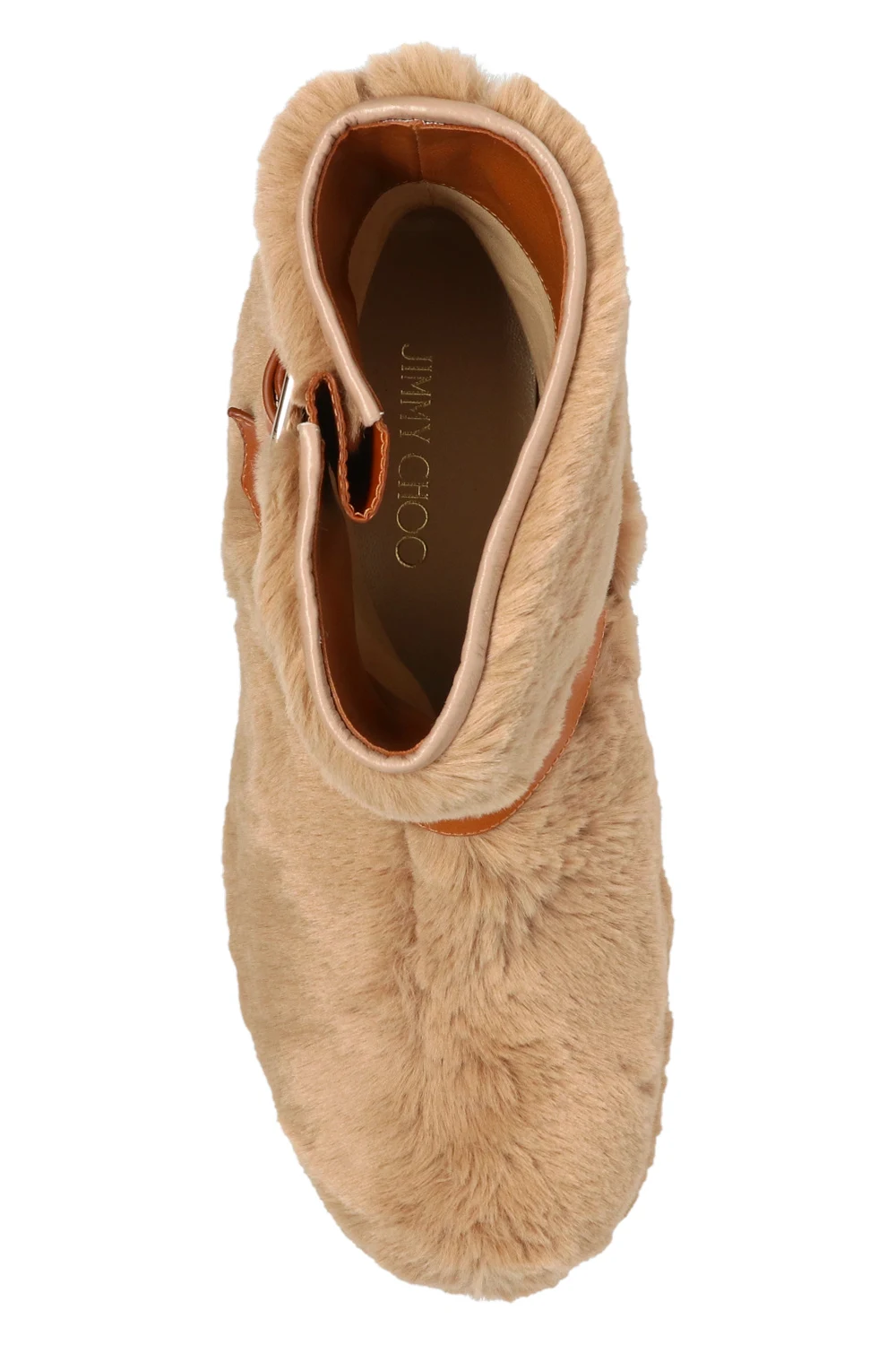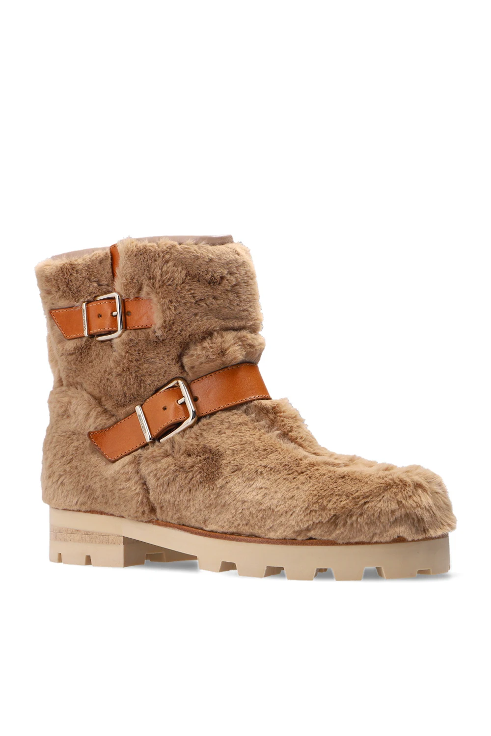 Beige and brown ‘Youth II’ heeled ankle boots from Jimmy Choo. Made of leather, this pair features adjustable buckle straps, metal logo appliqué at the back, beige rubber sole and silver-tone metal hardware.